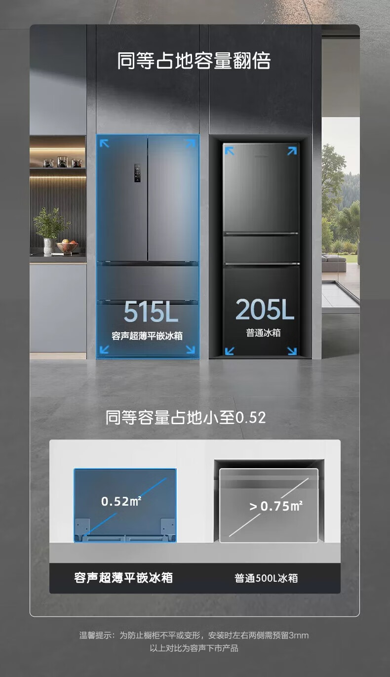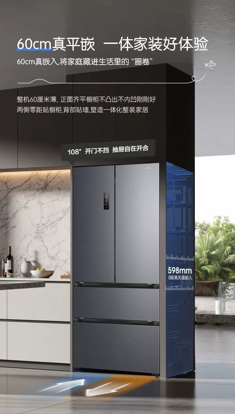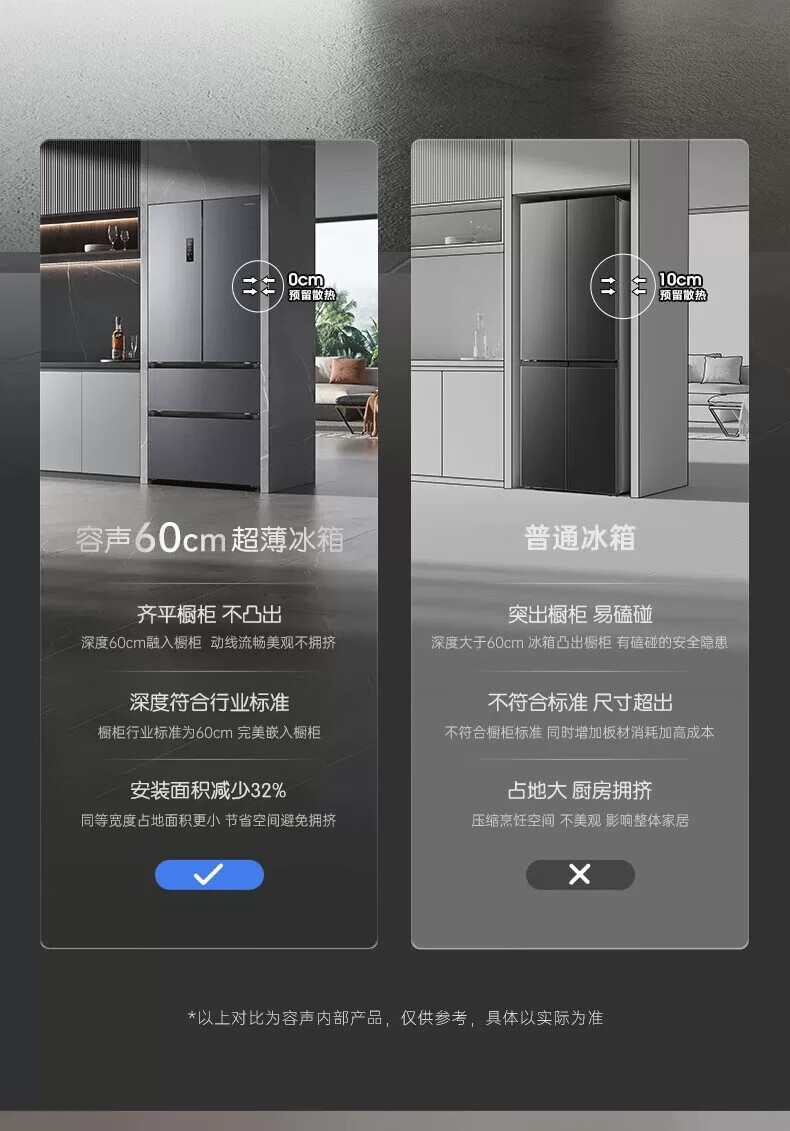Rongsheng 9 new machine with major bumps and defects. Rongsheng 515 liter sugar cube double purification dual system French ice making ultra-thin embedded BCD-515P60FZMAD. Photos taken before shipment with obvious bumps.