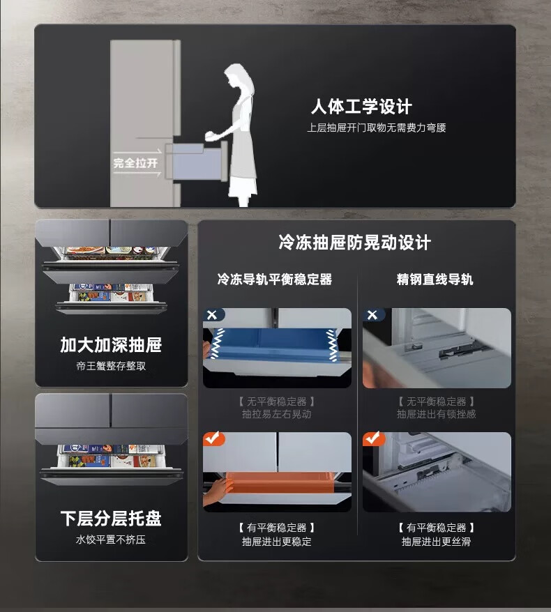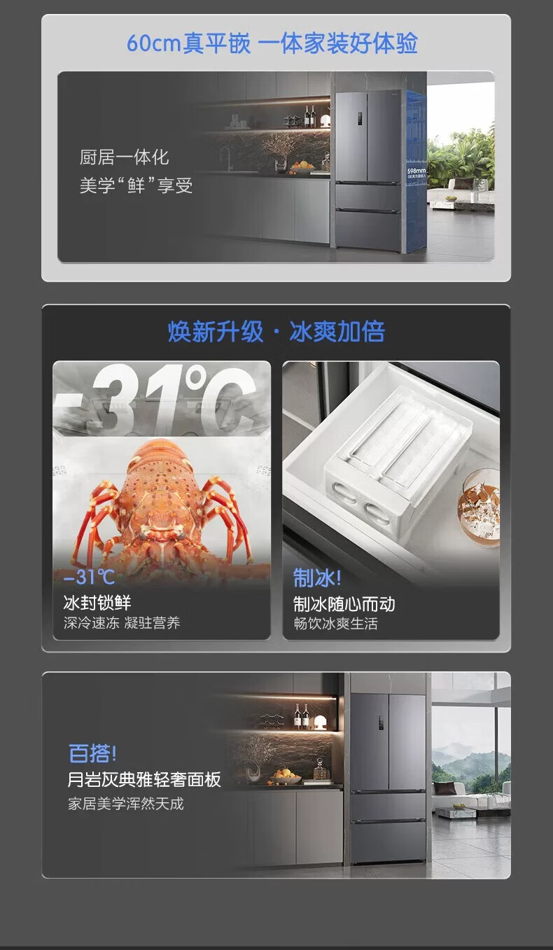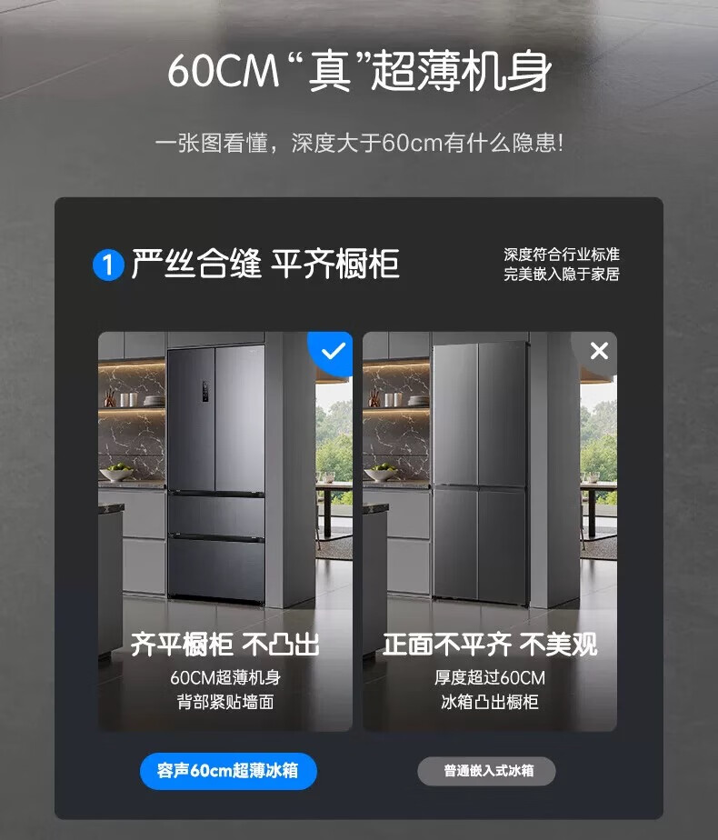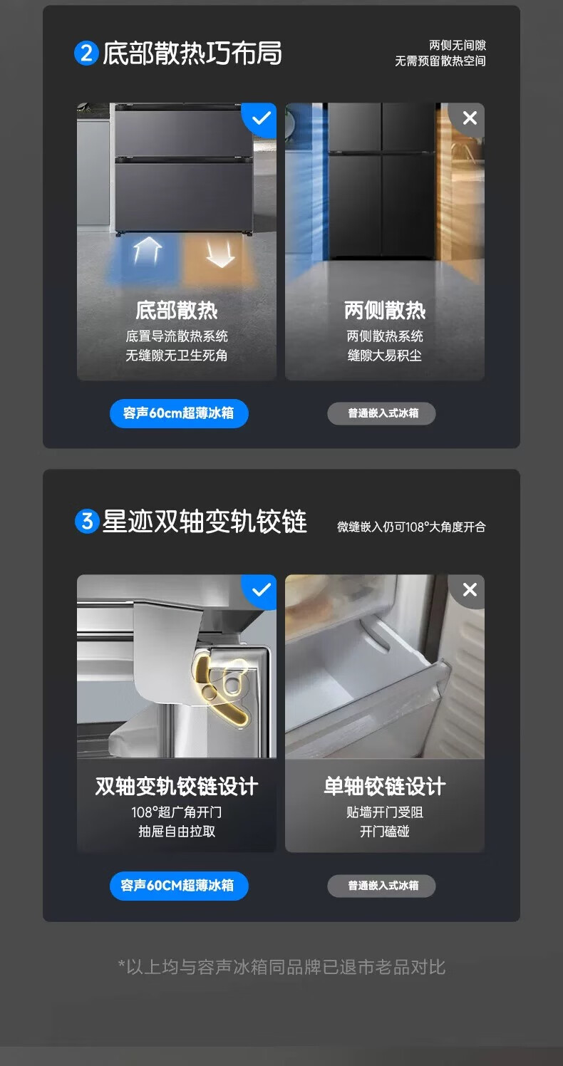 Rongsheng 9 new machine with major bumps and defects. Rongsheng 515 liter sugar cube double purification dual system French ice making ultra-thin embedded BCD-515P60FZMAD. Photos taken before shipment with obvious bumps.