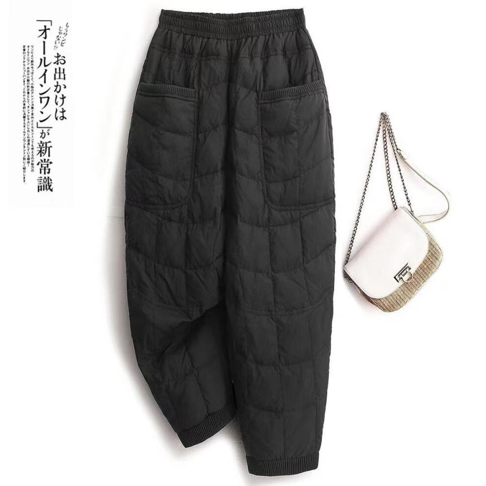 Woodpecker Northeast minus 40 degrees cold-proof down cotton pants for women to wear winter mom pants high waist slim straight harem pants thin black thin S 80Jin Jin is equal to less than 0.5 kg