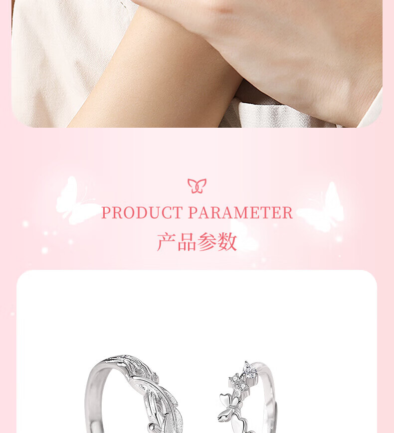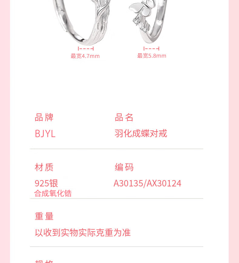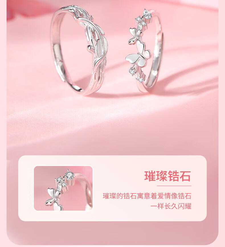 BJYL Become a Butterfly S925 sterling silver couple ring, a pair of rings, light luxury open ring, anniversary gift for girlfriend and wife, Become a Butterfly - Couple Ring (Butterfly Gift Box)