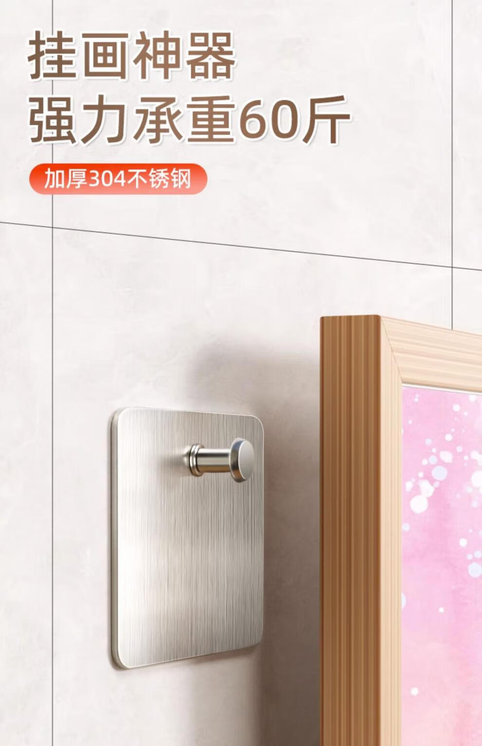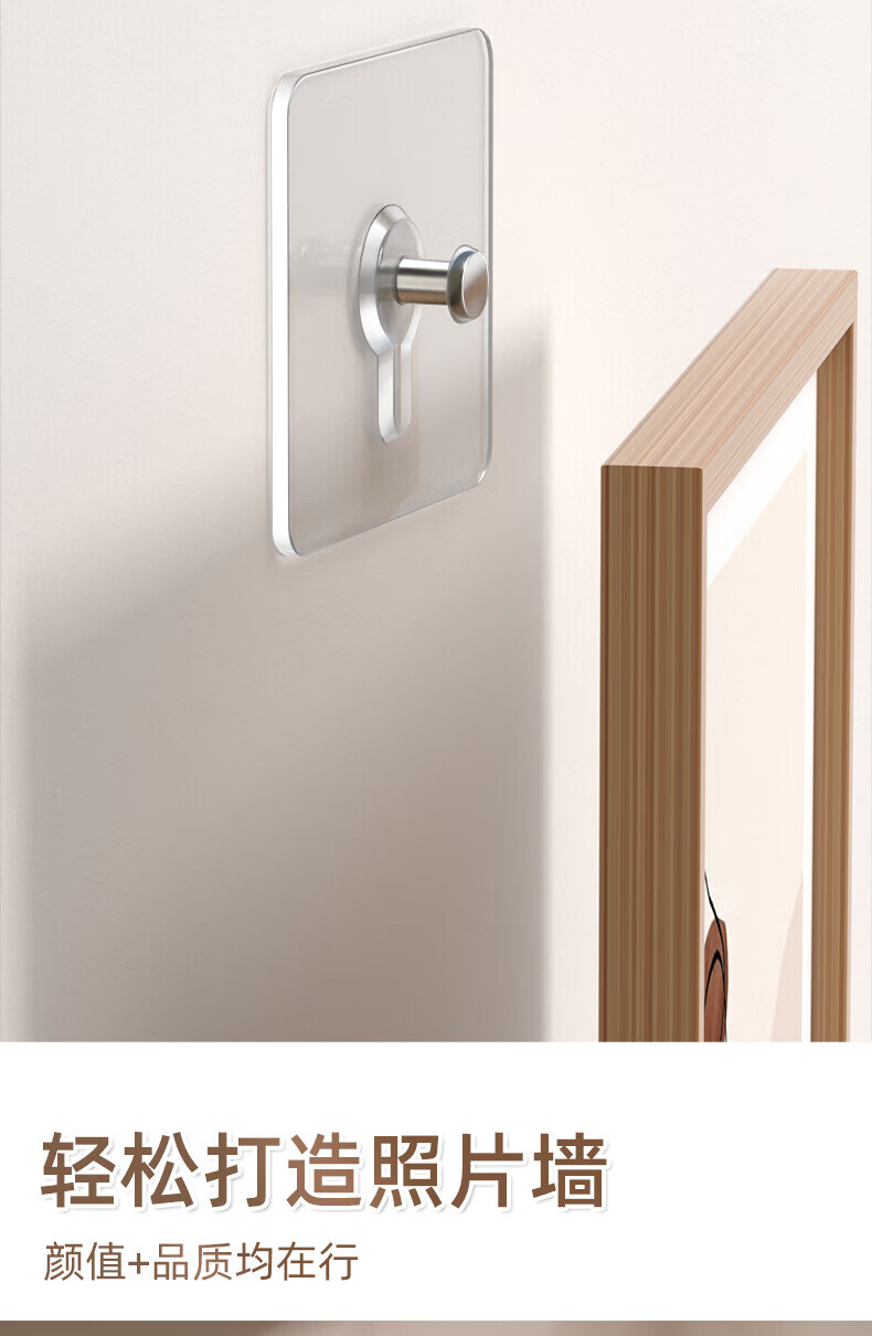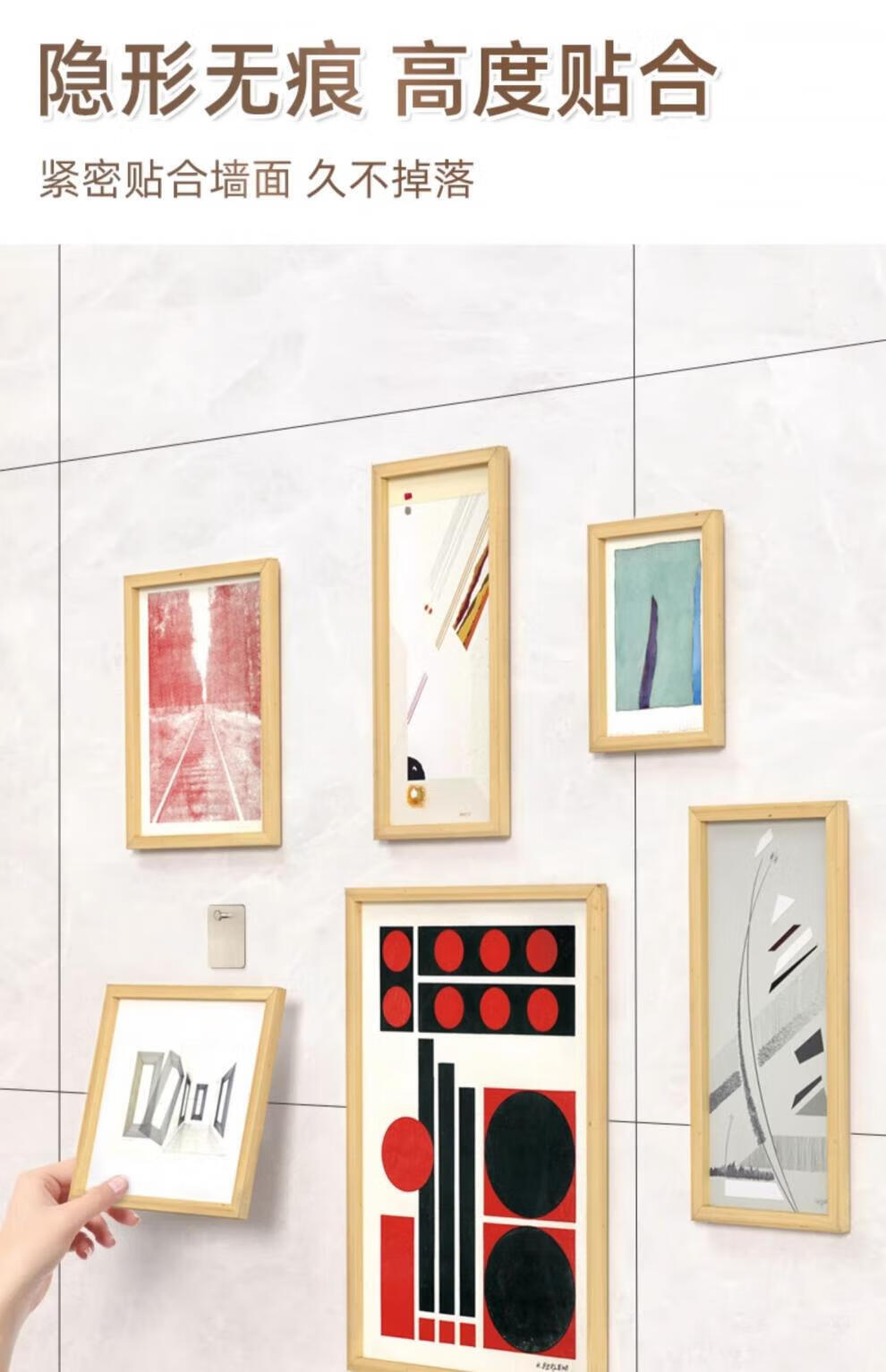Yusenyi Traceless Hook, No Punching, Artifact for Hanging Pictures, Strong Fixer for Photo Frame, Special Hanging Nail for Wedding Photos, No Nail Sticker on Wall, 7x7cm Invisible Style, 4 Pack/Enlarged and Thickened