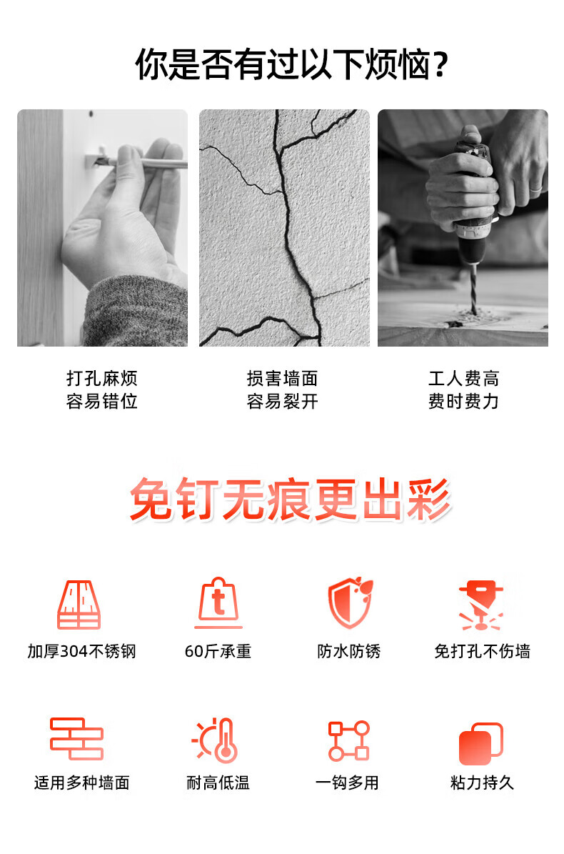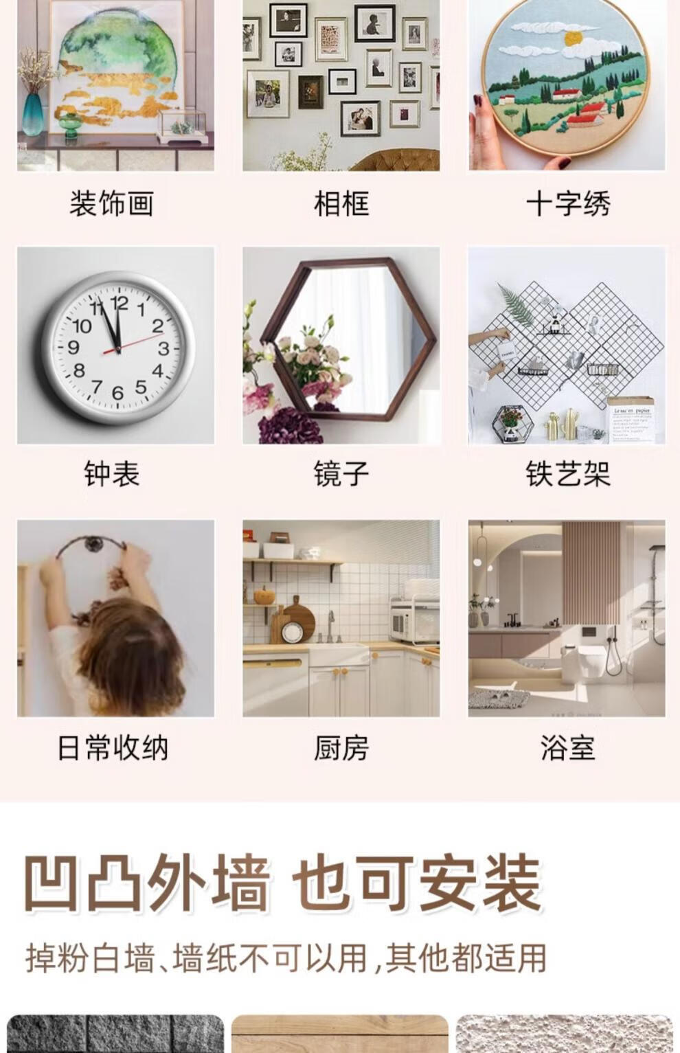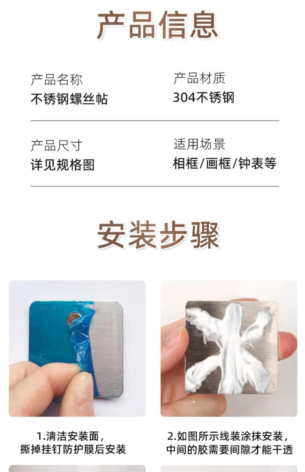 Yusenyi Traceless Hook, No Punching, Artifact for Hanging Pictures, Strong Fixer for Photo Frame, Special Hanging Nail for Wedding Photos, No Nail Sticker on Wall, 7x7cm Invisible Style, 4 Pack/Enlarged and Thickened