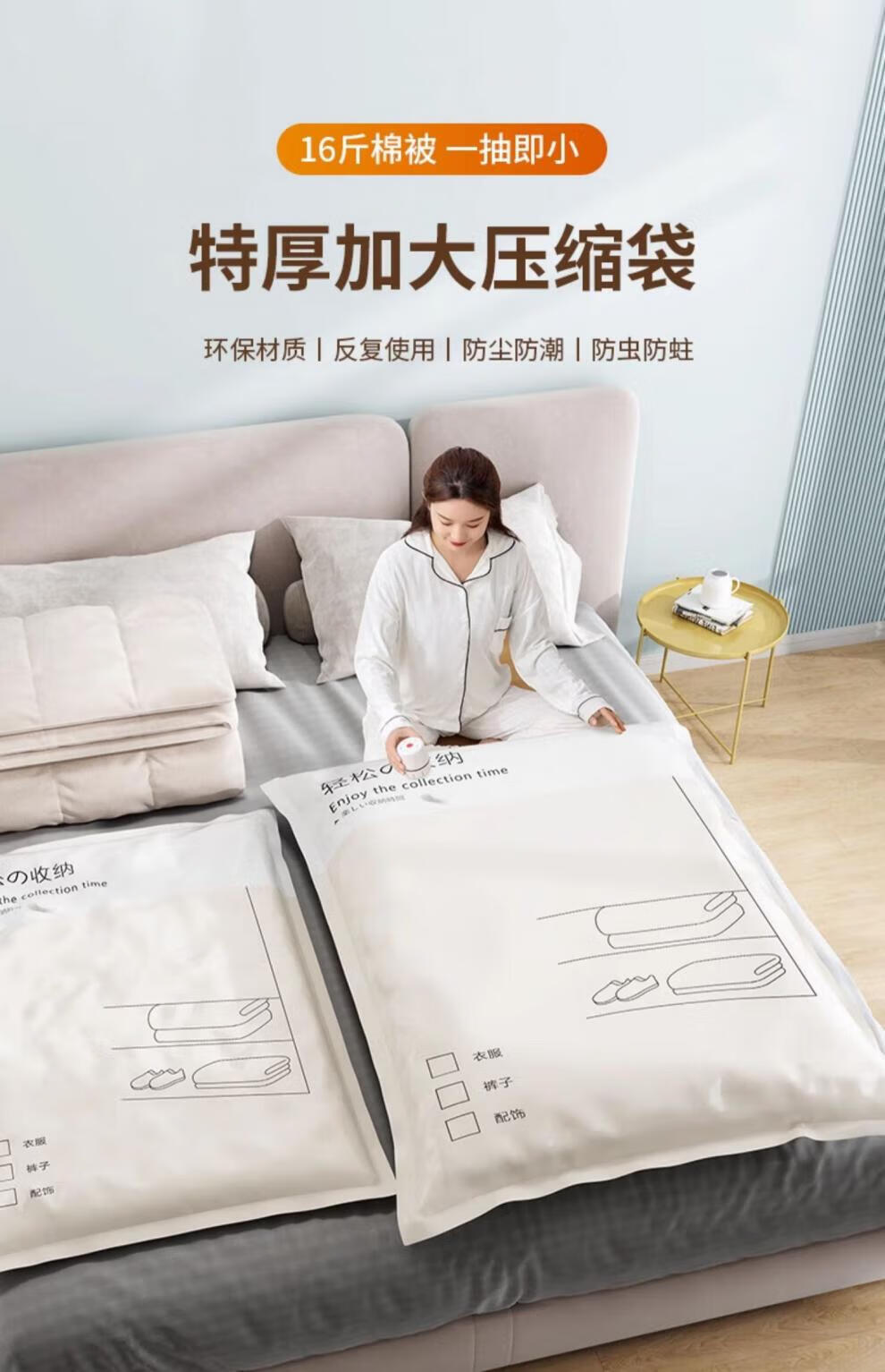 Jidaocook vacuum compression storage bag for clothes and quilts, special air-extracting waterproof and moisture-proof clothes and quilt bags, 7-piece set, 2 extra large + 2 large + 2 medium + electric pump