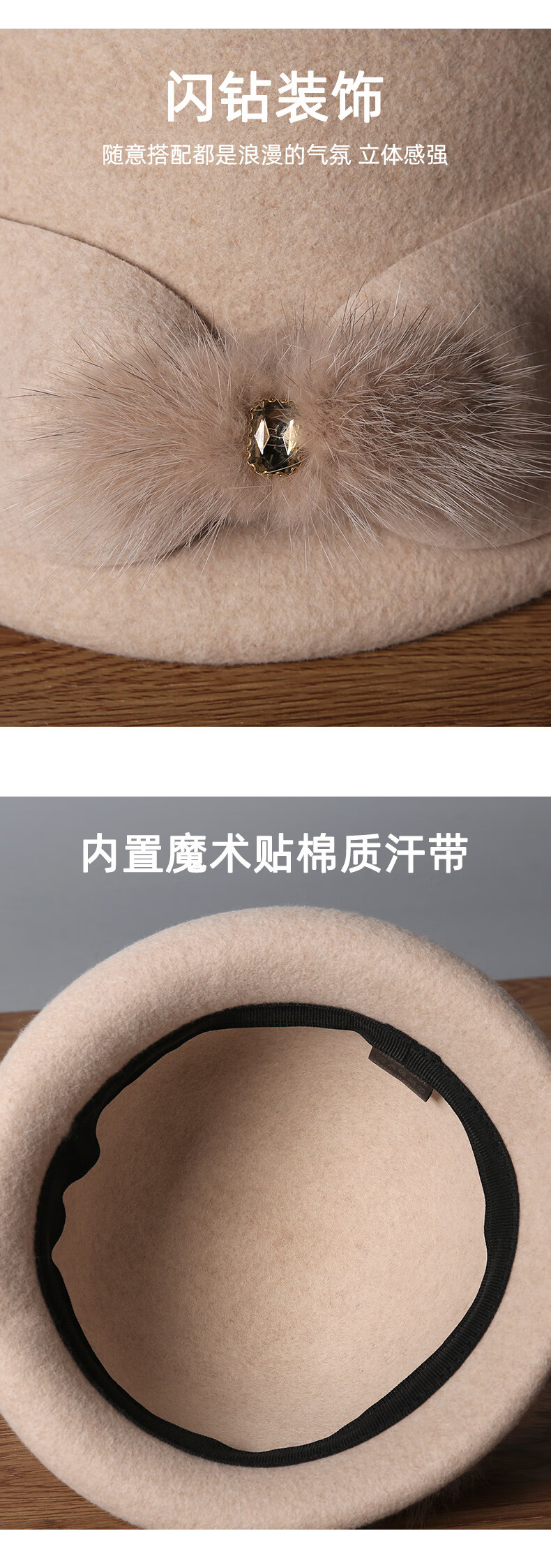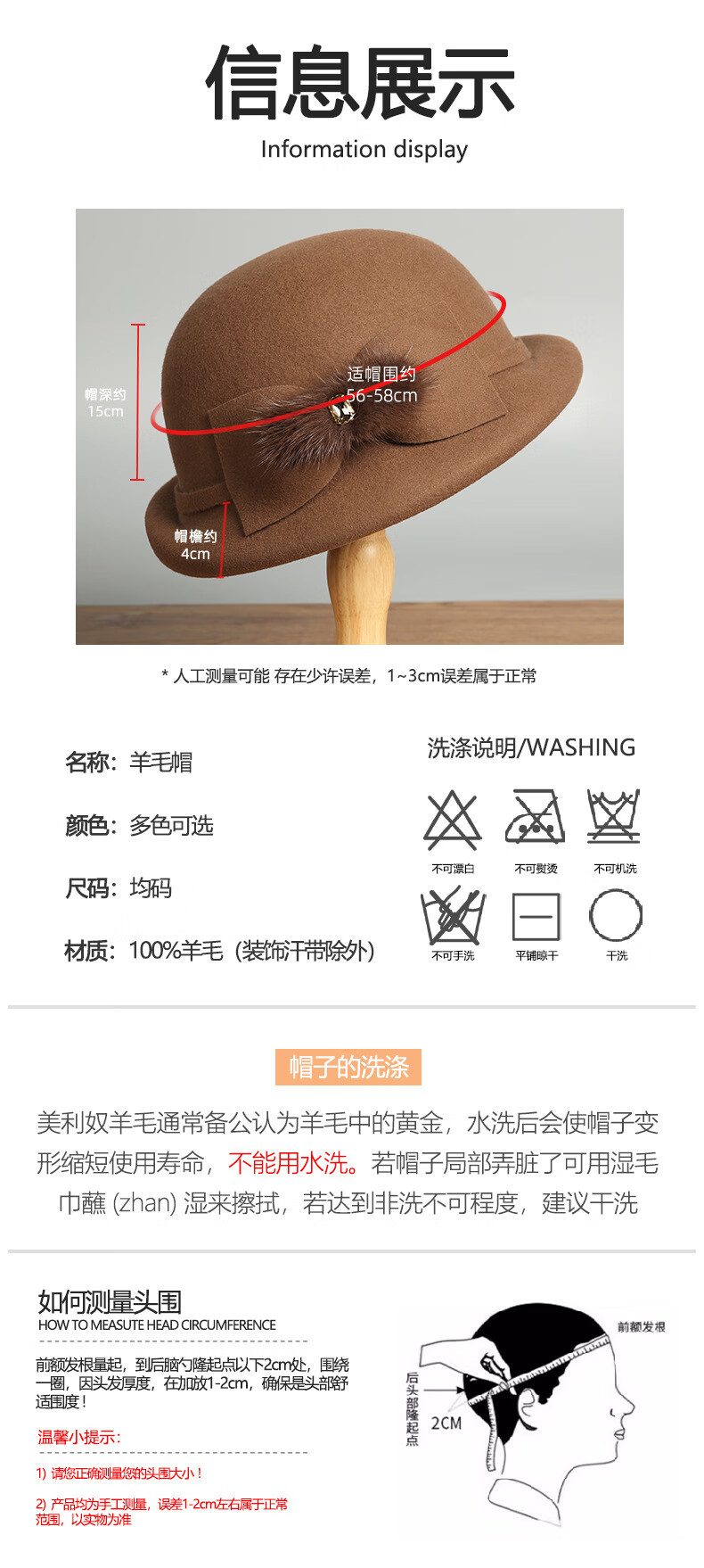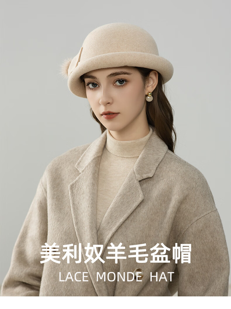 GEFWEIMKL Merino Wool Bucket Hat Women's Autumn and Winter New French Furry Bow Fashion Elegant Top Hat Women Black Adjustable (56-58cm)