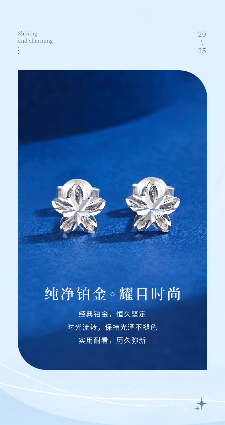 CHINA GOLD PT950 platinum flower earrings for women, new sparkling eye-catching earrings, Valentine's Day gift for girlfriend, platinum flower earrings, about 1.6g, exciting gift box