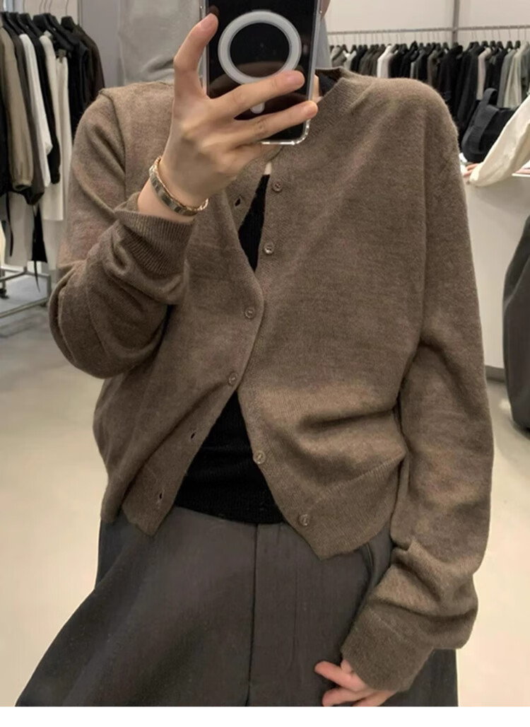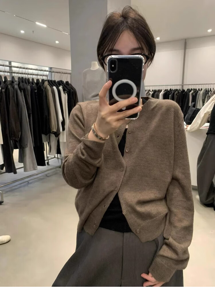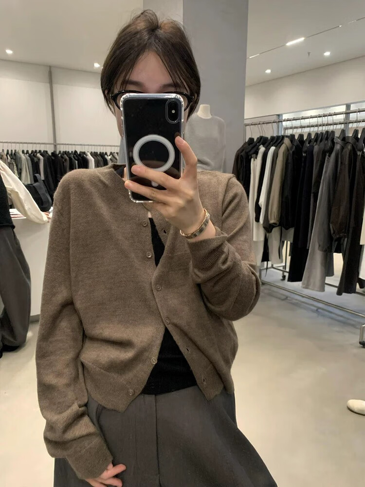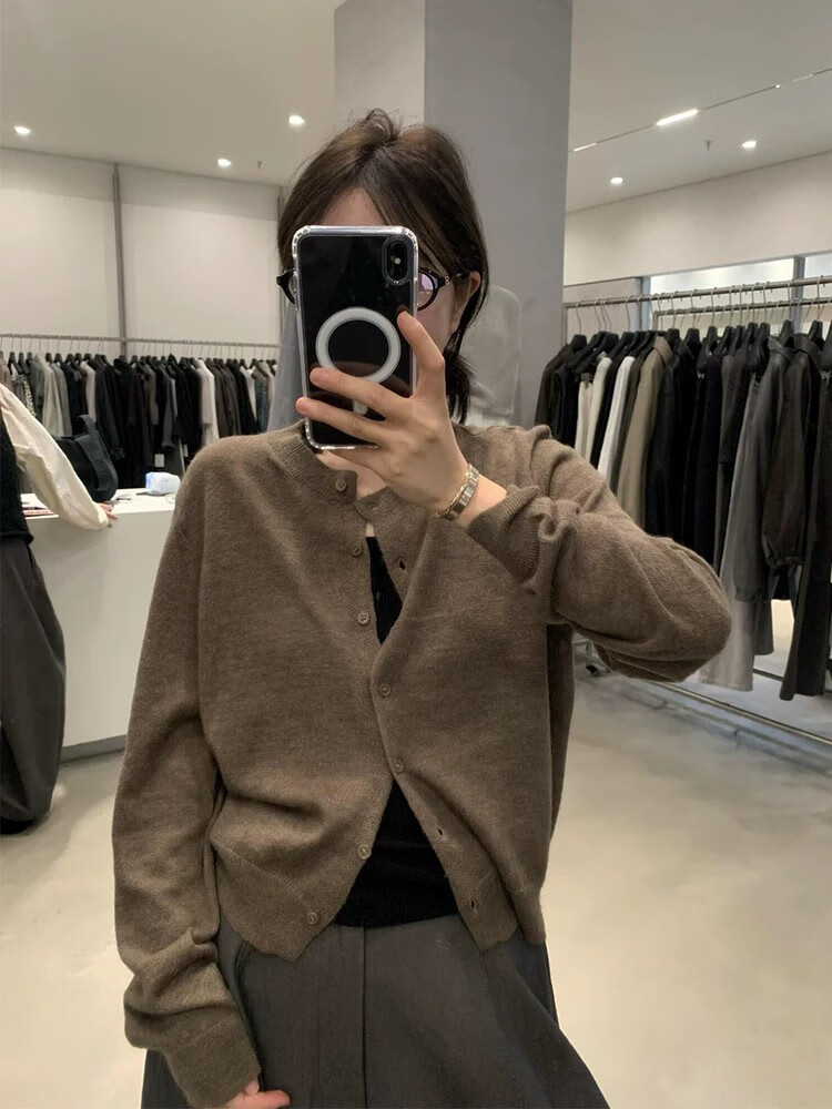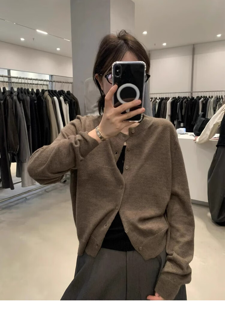 Su Yuwei Maillard coffee color small fragrance style short knitted cardigan for women autumn and winter high-end waist slimming sweater inner top coffee color Follow the store - free shipping insurance S (80-95Jin Jin is equal to 0.5 kg)