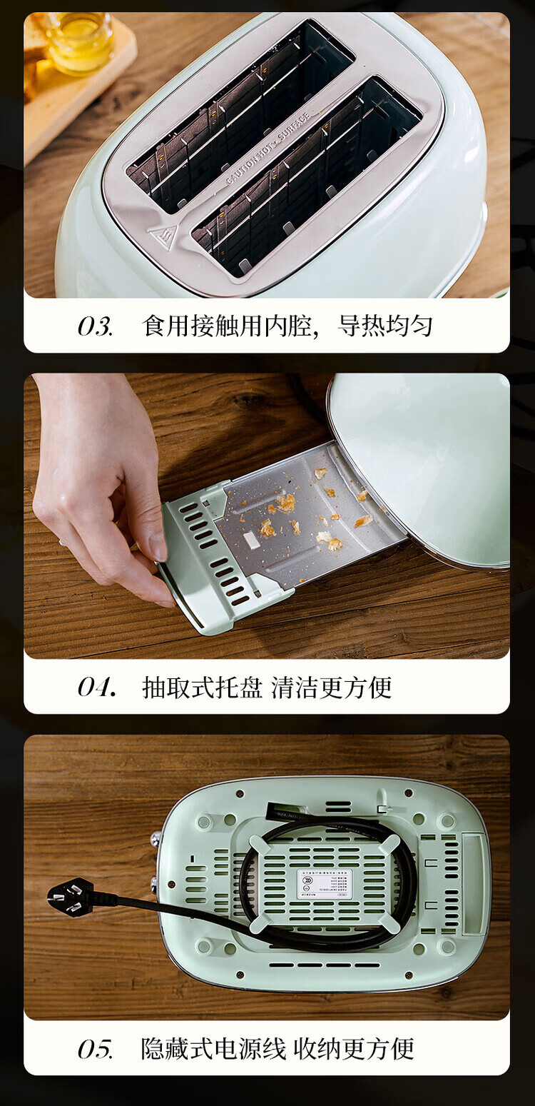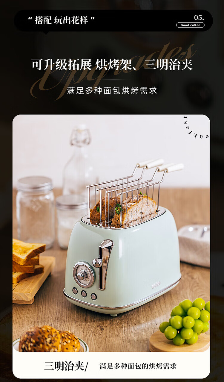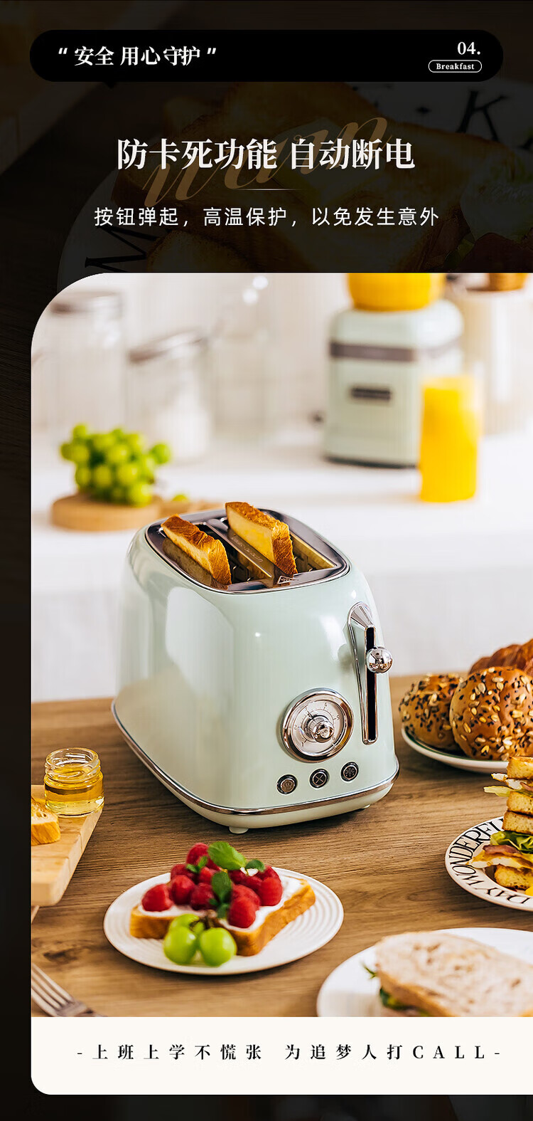 Beijing Yanxuan KUSECT German quality bread machine for home use fully automatic 2024 new large capacity retro toaster Dream Green standard + sandwich clip