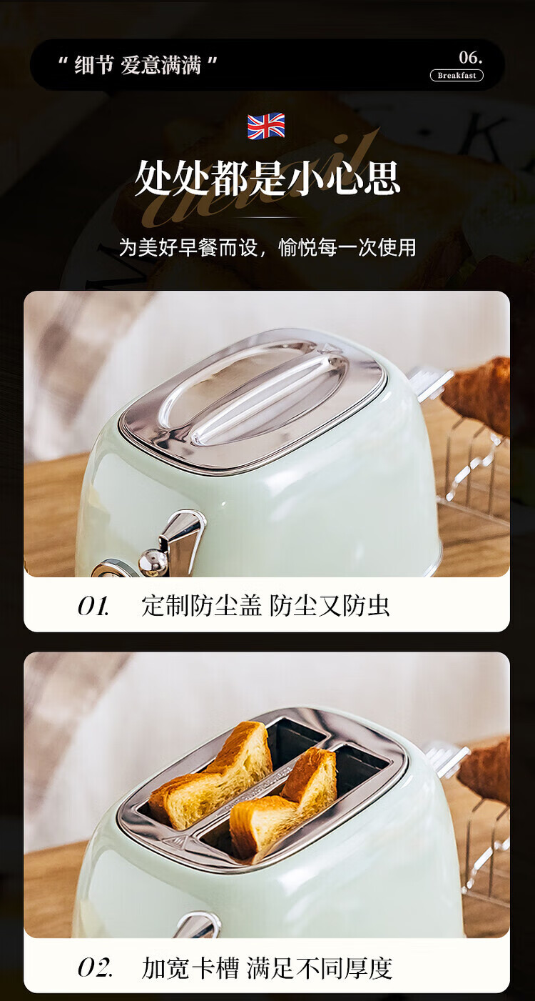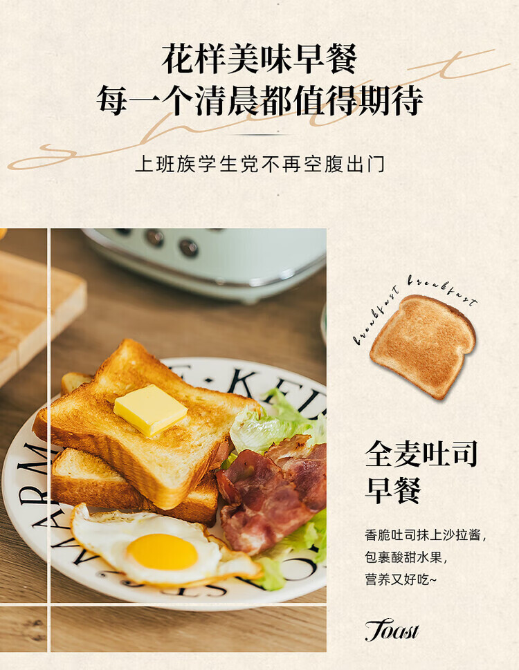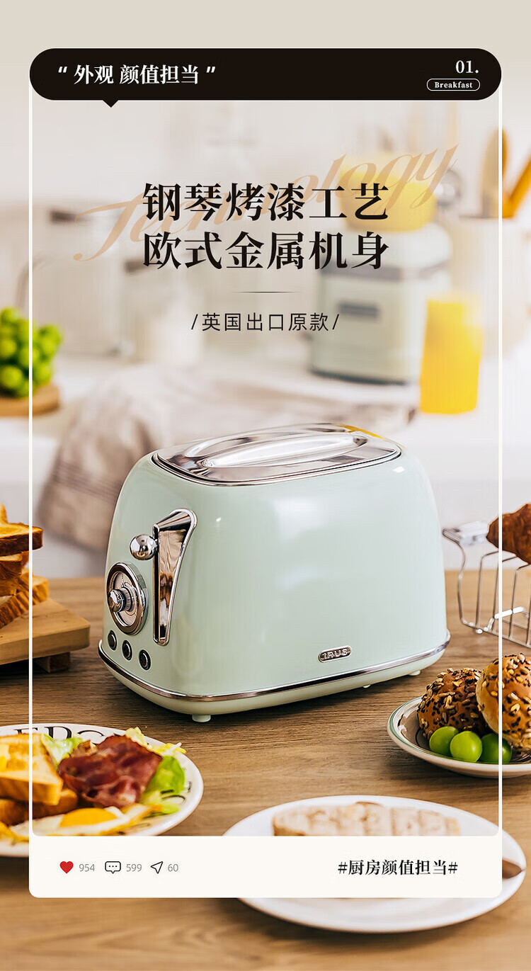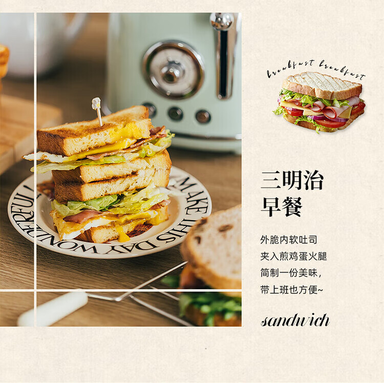 Beijing Yanxuan KUSECT German quality bread machine for home use fully automatic 2024 new large capacity retro toaster Dream Green standard + sandwich clip