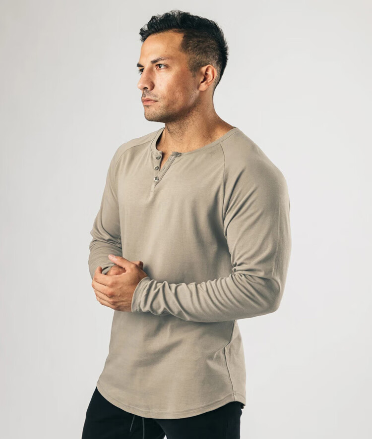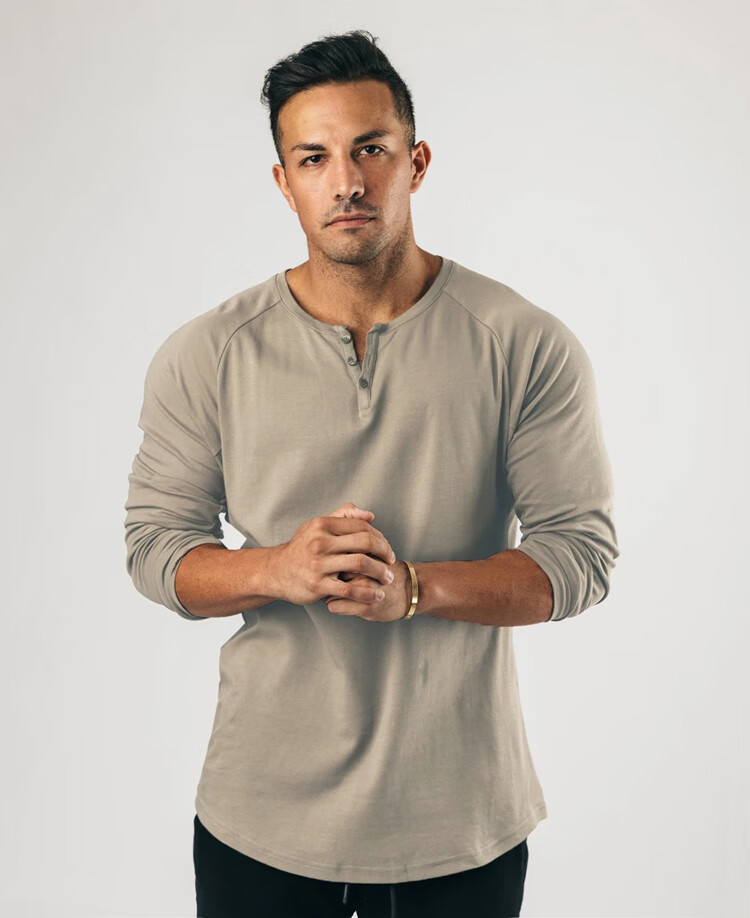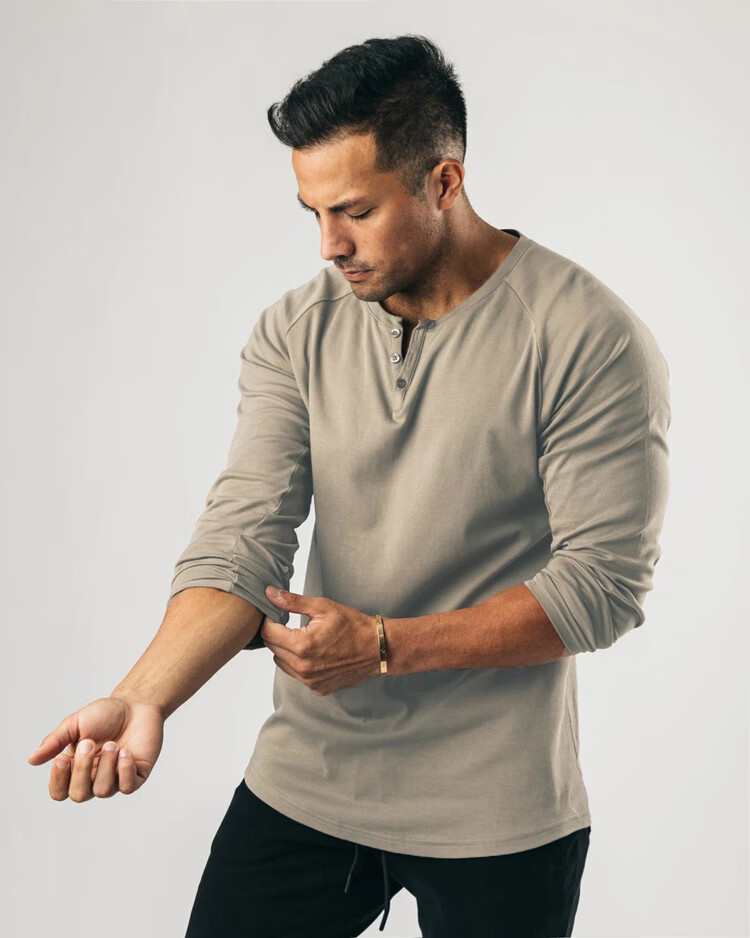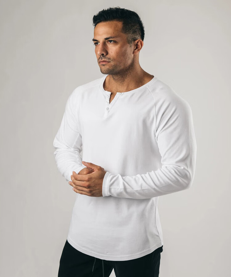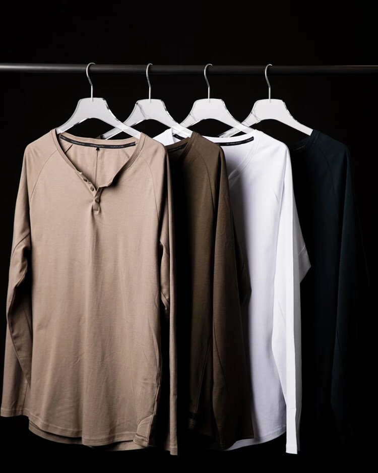 Kuraishi Kazuki trendy brand retro heavyweight long-sleeved T-shirt men's spring and autumn new slim fit versatile casual V-neck solid color bottoming Henry shirt off-white XL