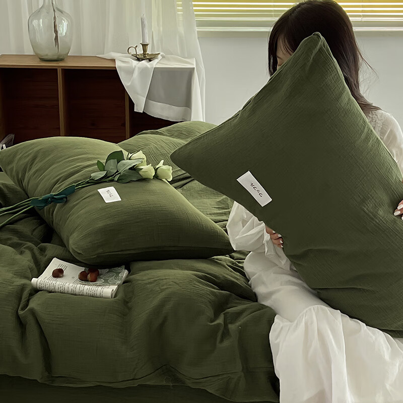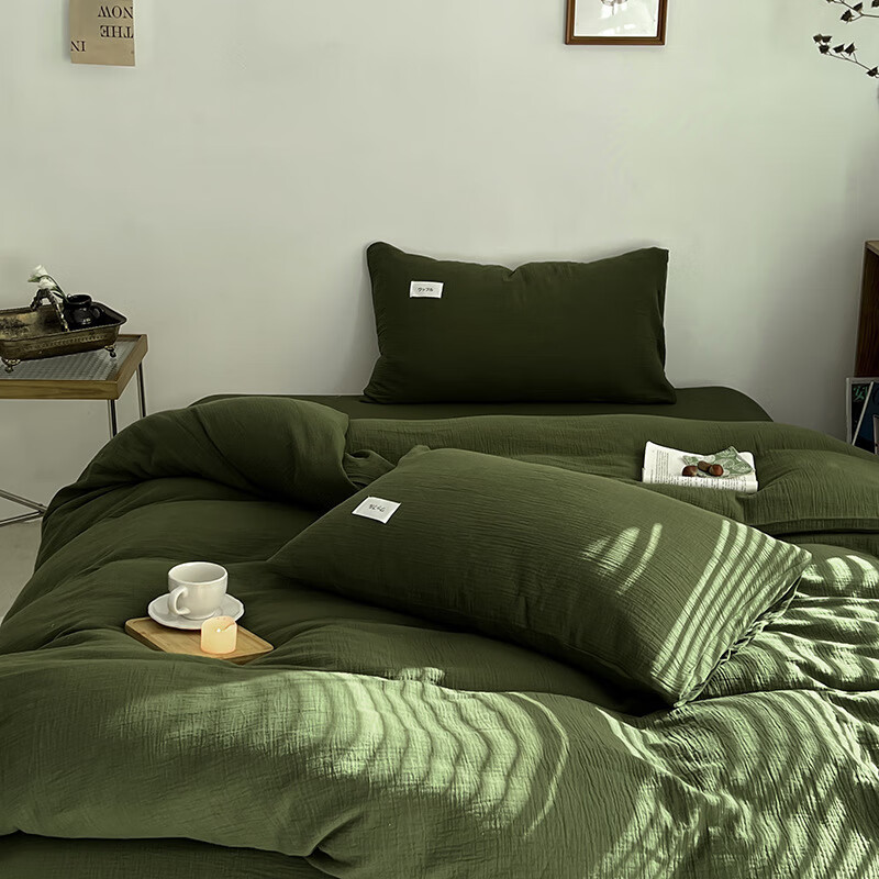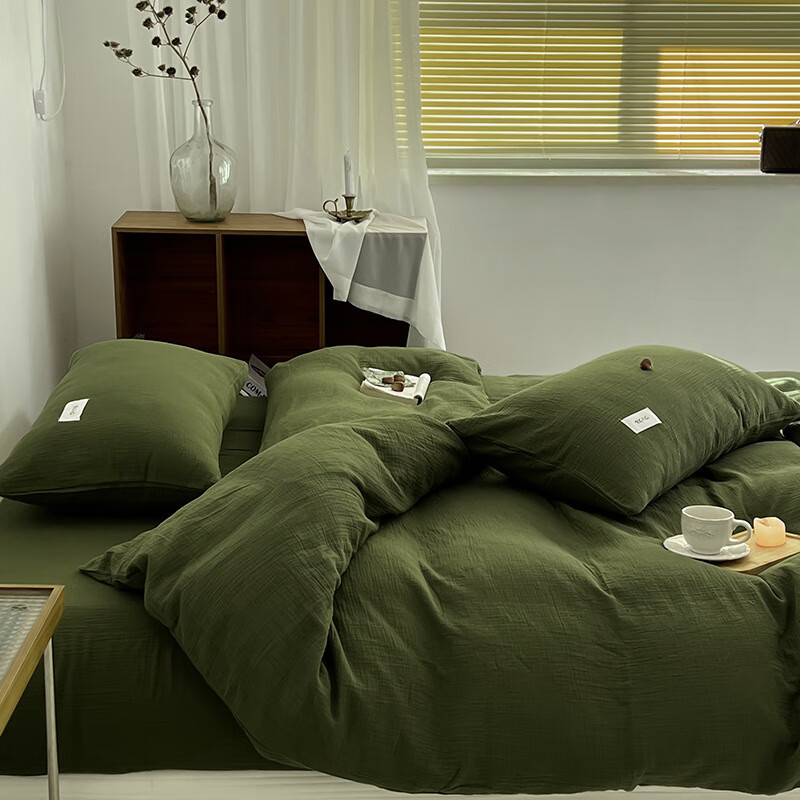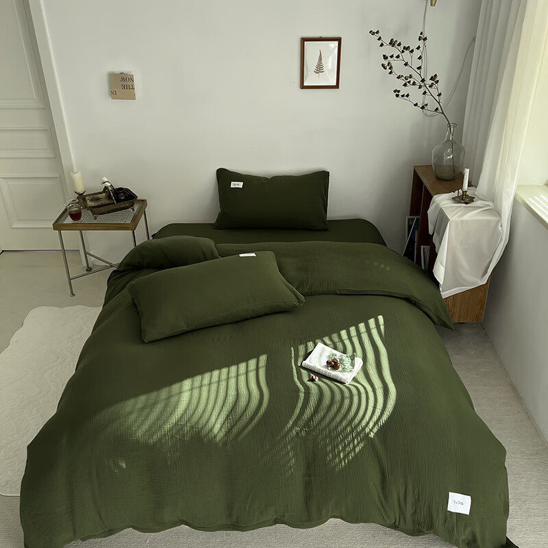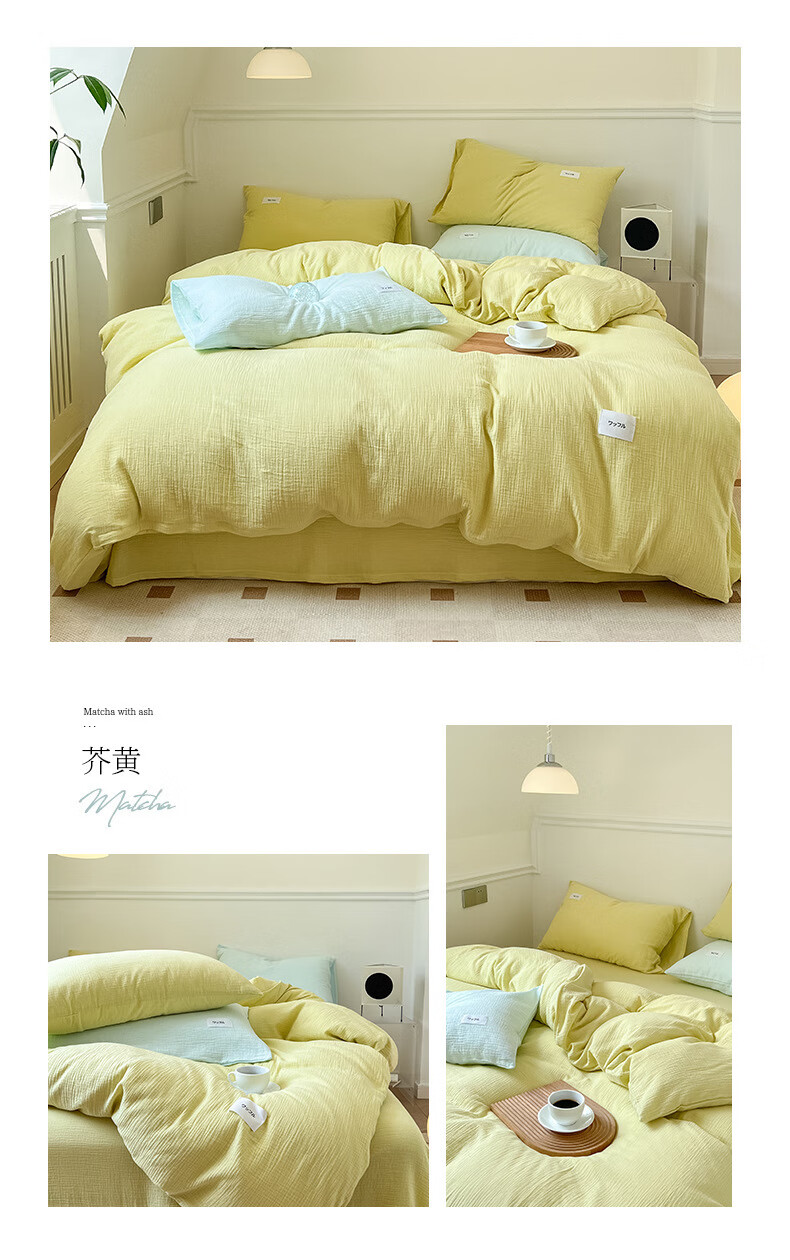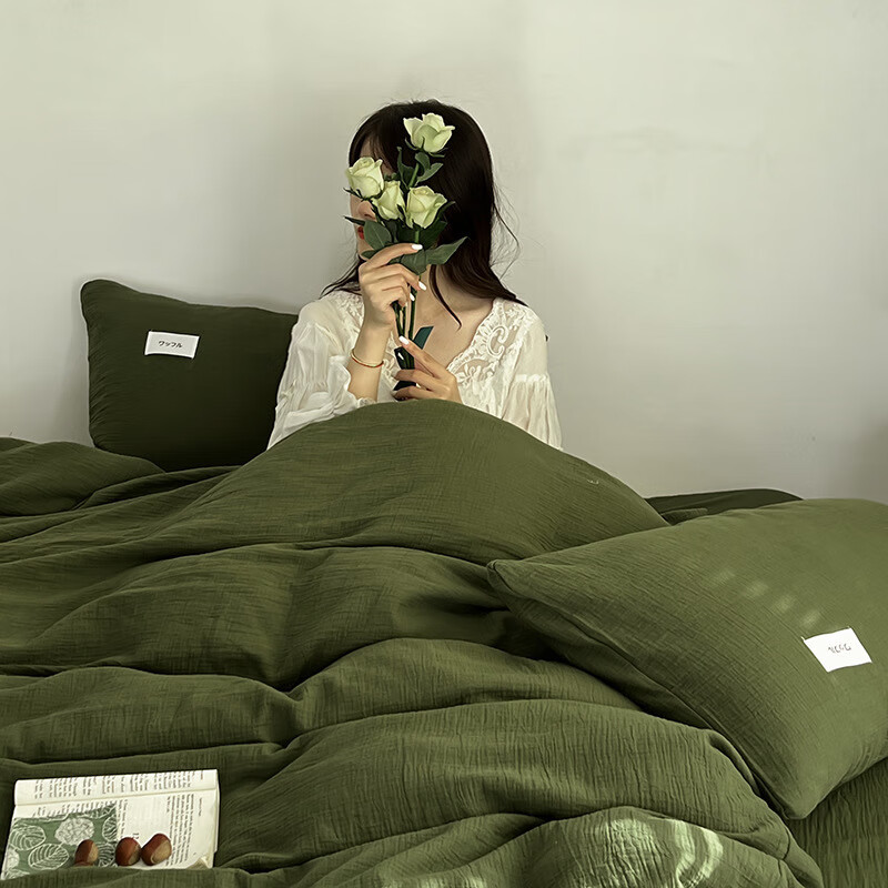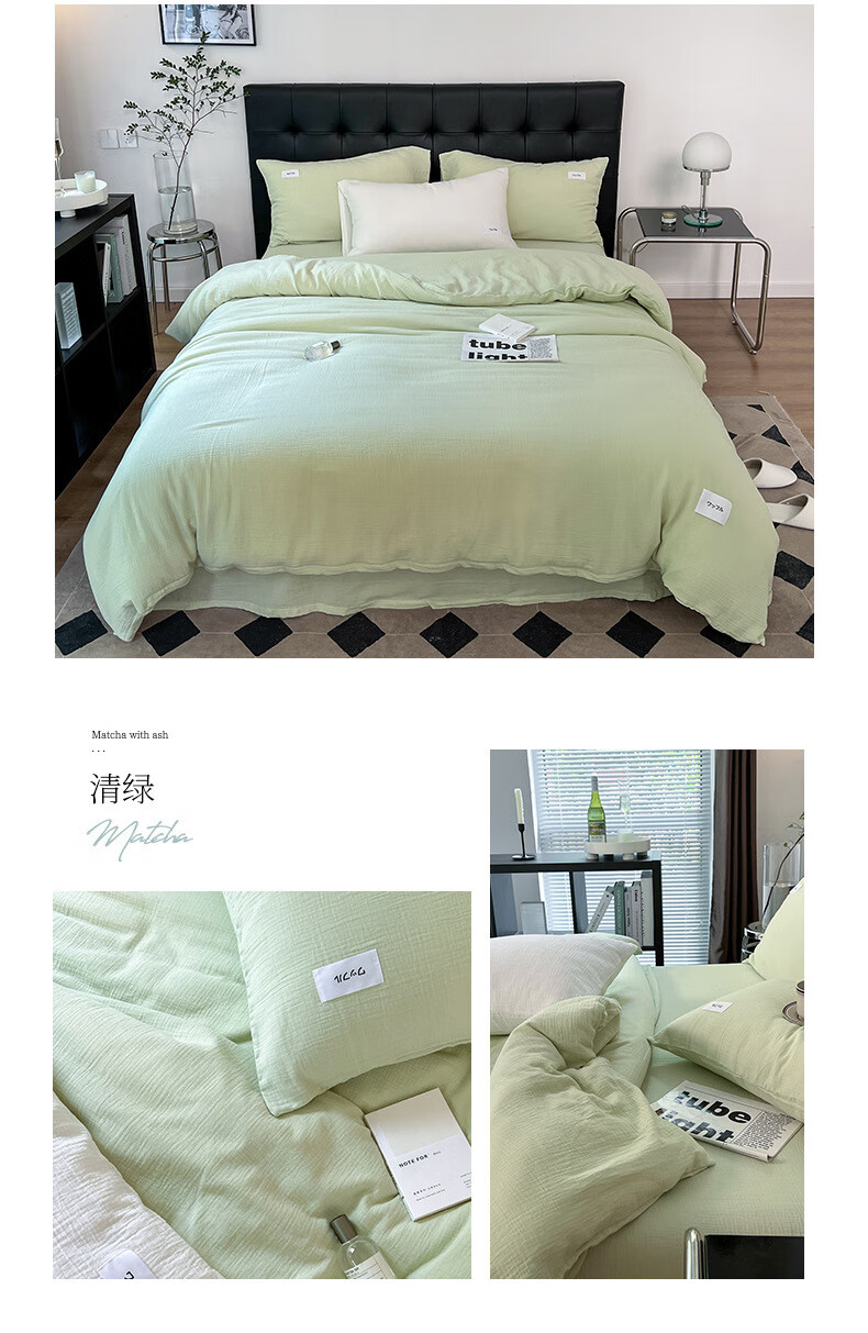Belles Mercury Home Textiles produces Class A baby-grade cotton double-layer gauze four-piece set of pure cotton naked sleeping sheets three-layer gauze day green 1.5-1.8 meters bed quilt cover 200*230cm, sheet 2