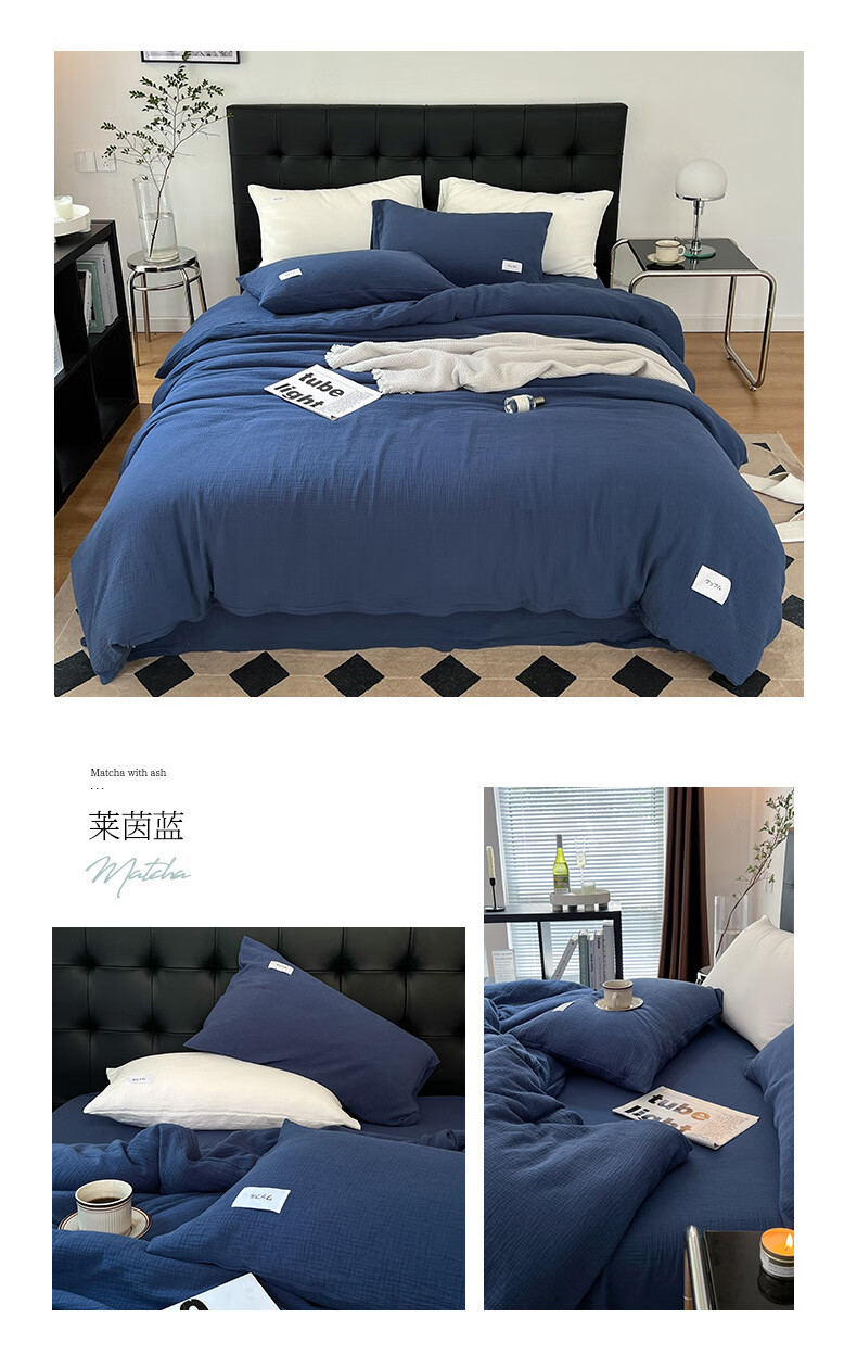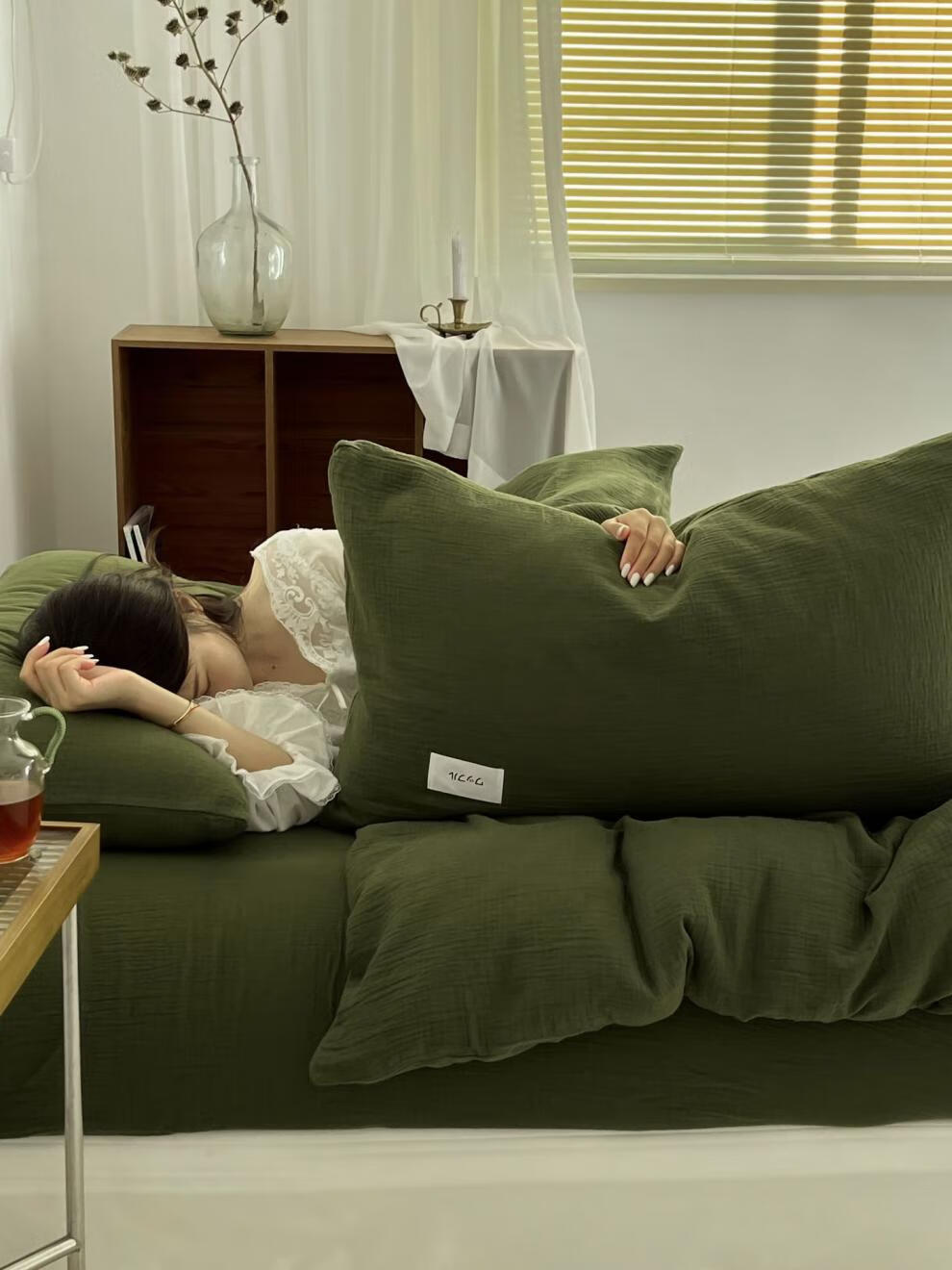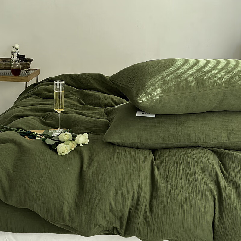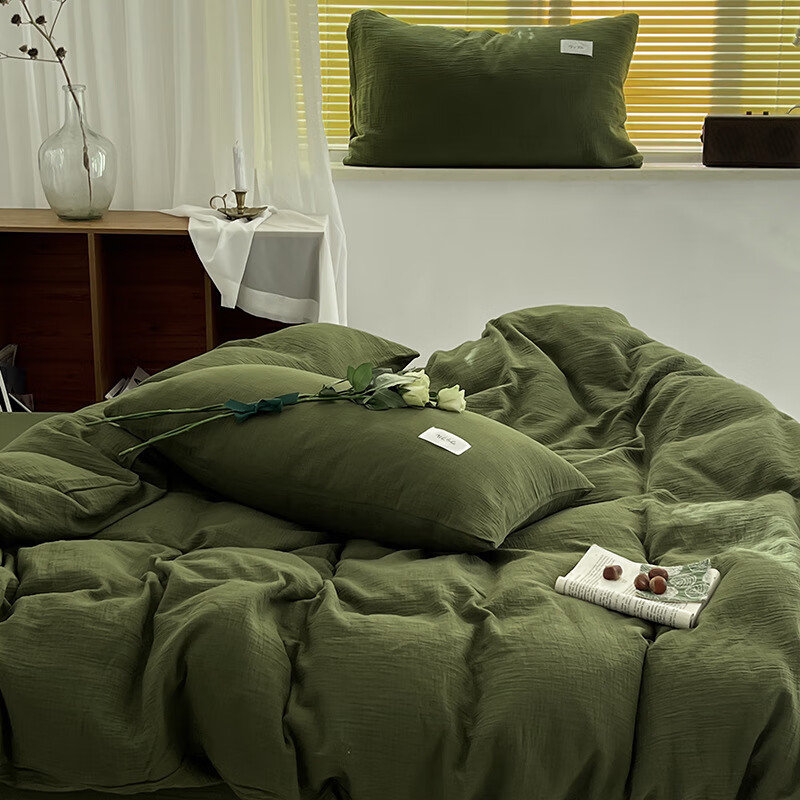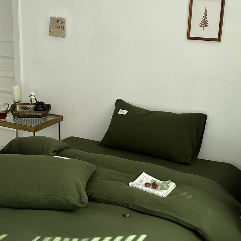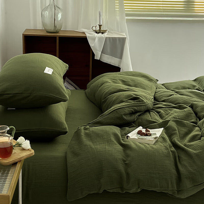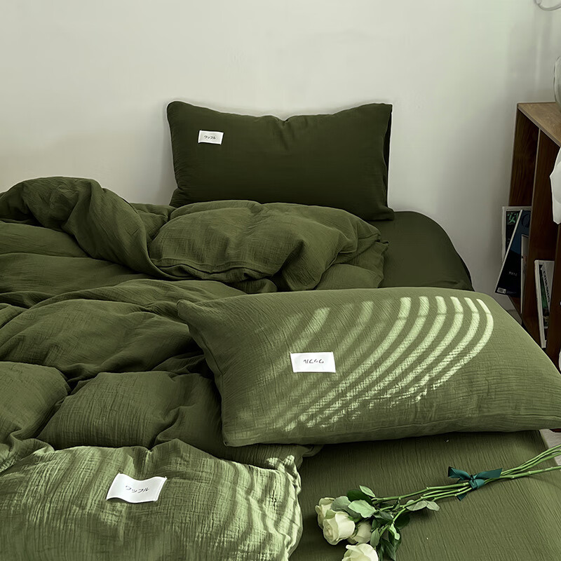 Belles Mercury Home Textiles produces Class A baby-grade cotton double-layer gauze four-piece set of pure cotton naked sleeping sheets three-layer gauze day green 1.5-1.8 meters bed quilt cover 200*230cm, sheet 2
