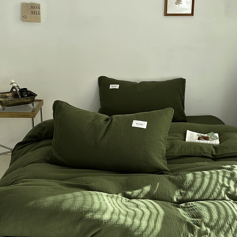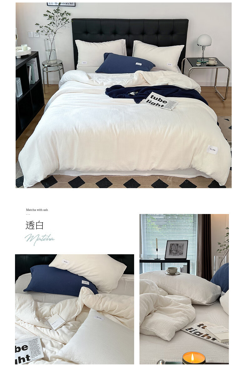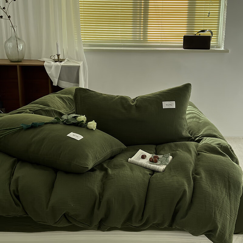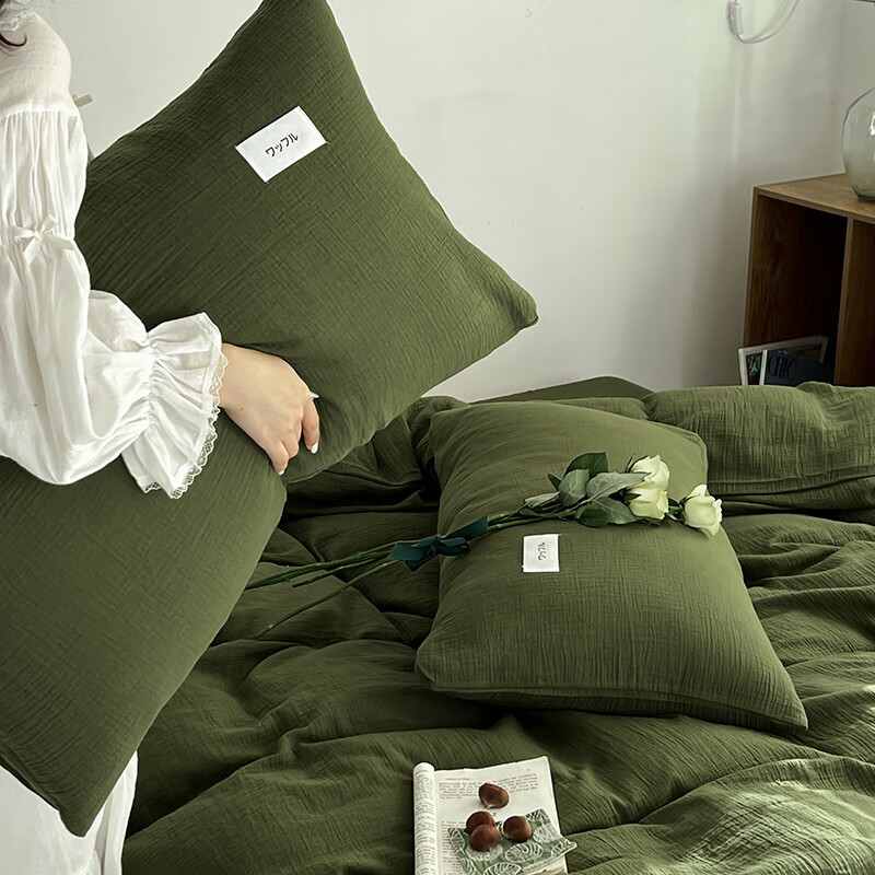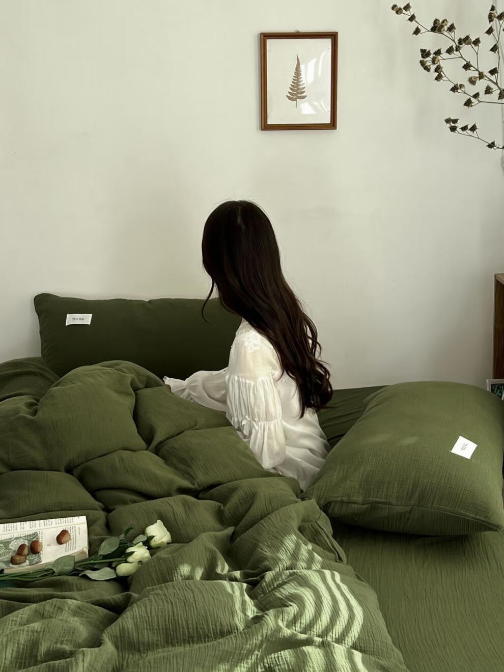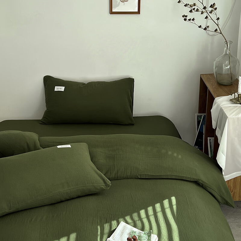 Belles Mercury Home Textiles produces Class A baby-grade cotton double-layer gauze four-piece set of pure cotton naked sleeping sheets three-layer gauze day green 1.5-1.8 meters bed quilt cover 200*230cm, sheet 2
