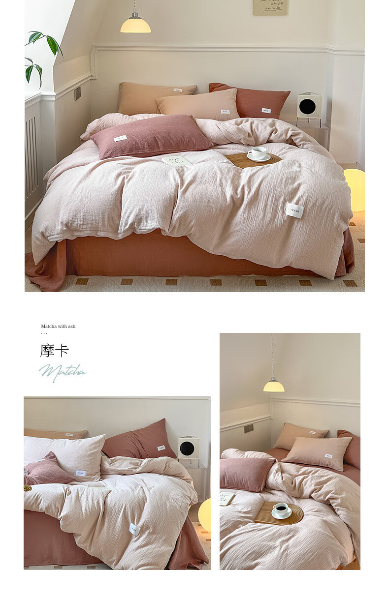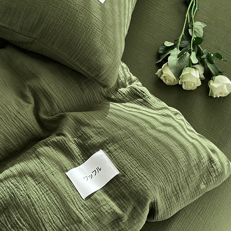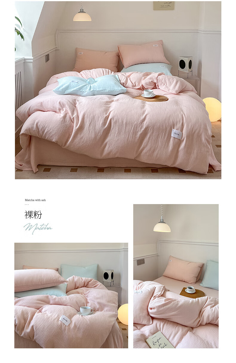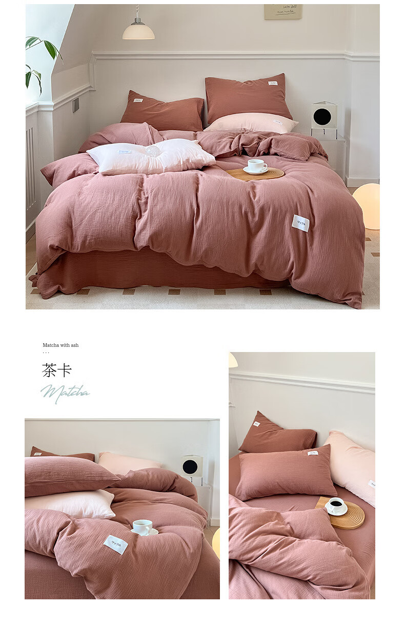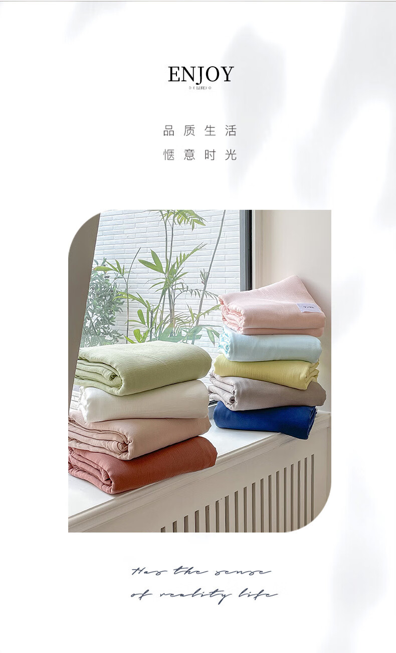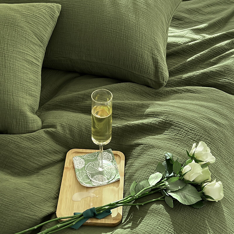 Belles Mercury Home Textiles produces Class A baby-grade cotton double-layer gauze four-piece set of pure cotton naked sleeping sheets three-layer gauze day green 1.5-1.8 meters bed quilt cover 200*230cm, sheet 2