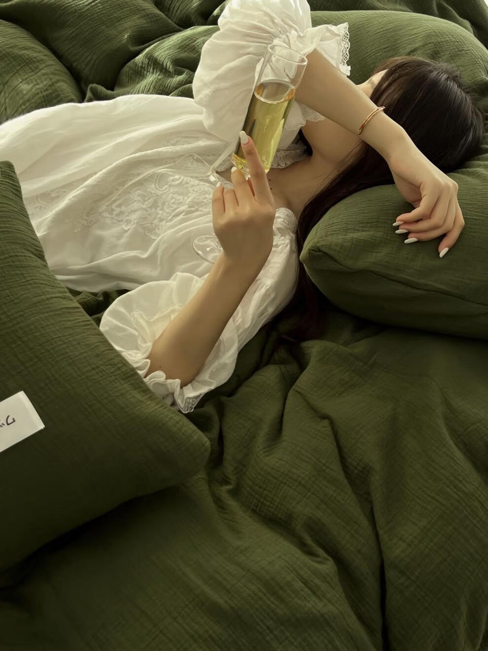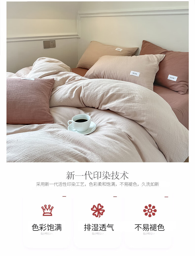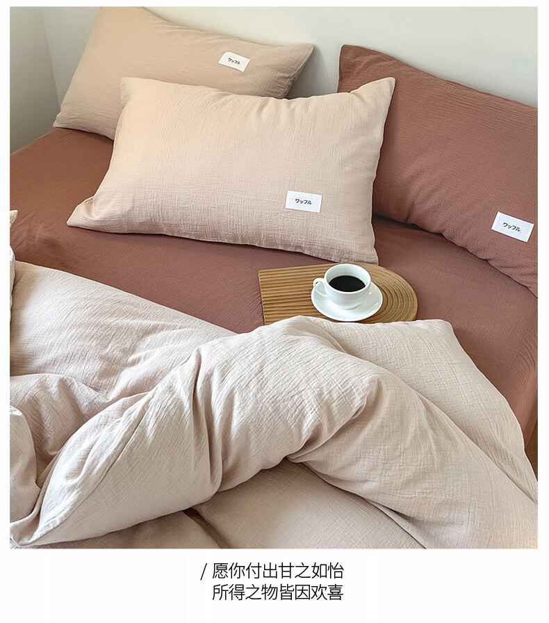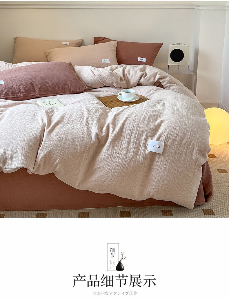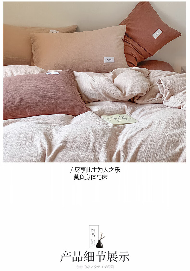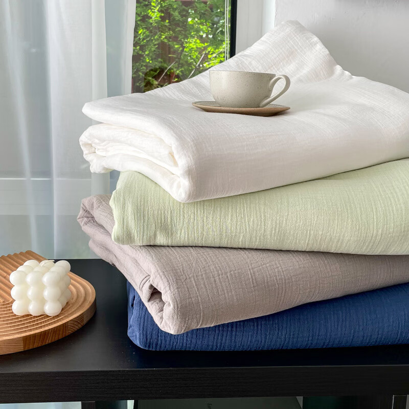 Belles Mercury Home Textiles produces Class A baby-grade cotton double-layer gauze four-piece set of pure cotton naked sleeping sheets three-layer gauze day green 1.5-1.8 meters bed quilt cover 200*230cm, sheet 2