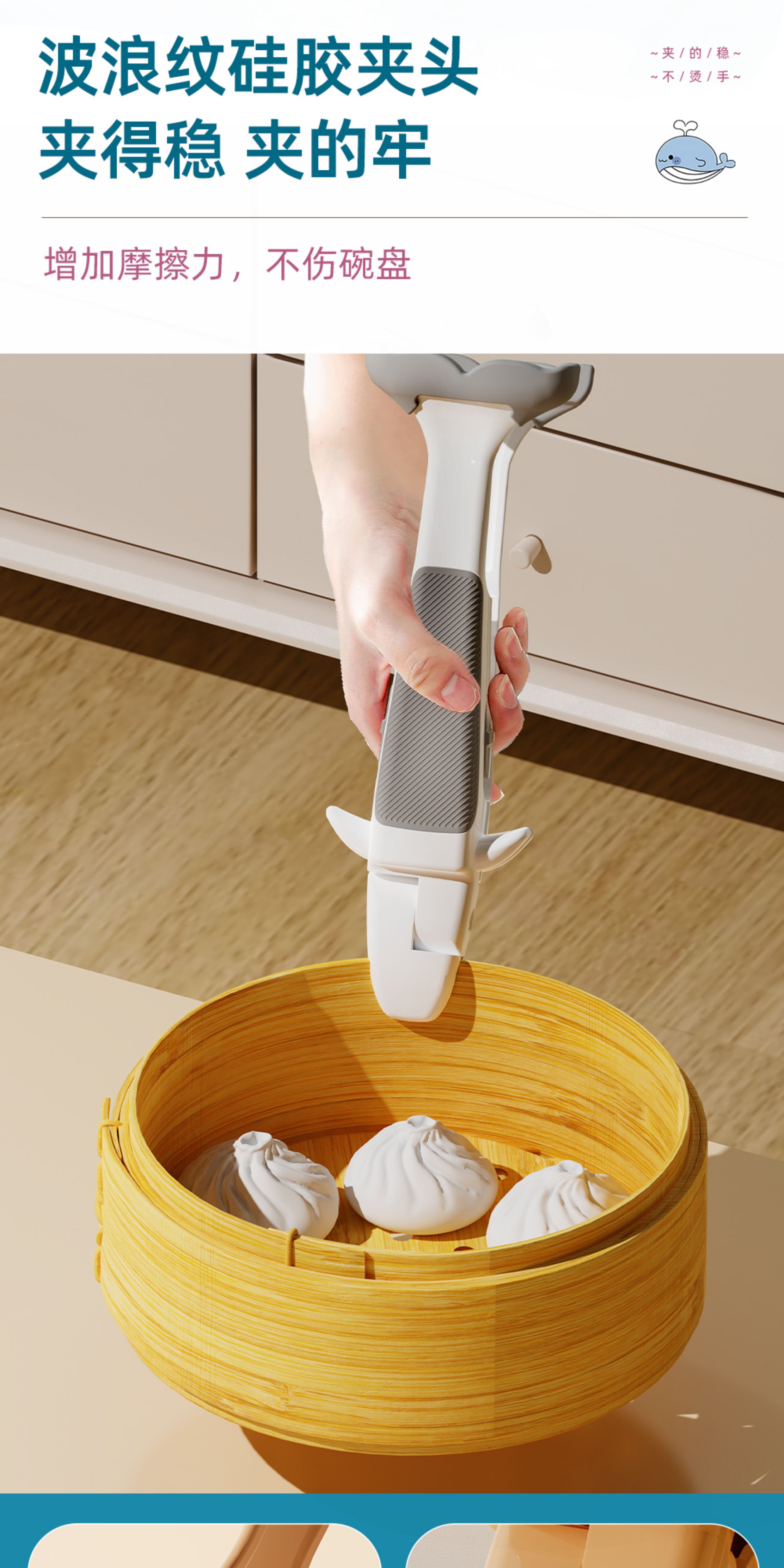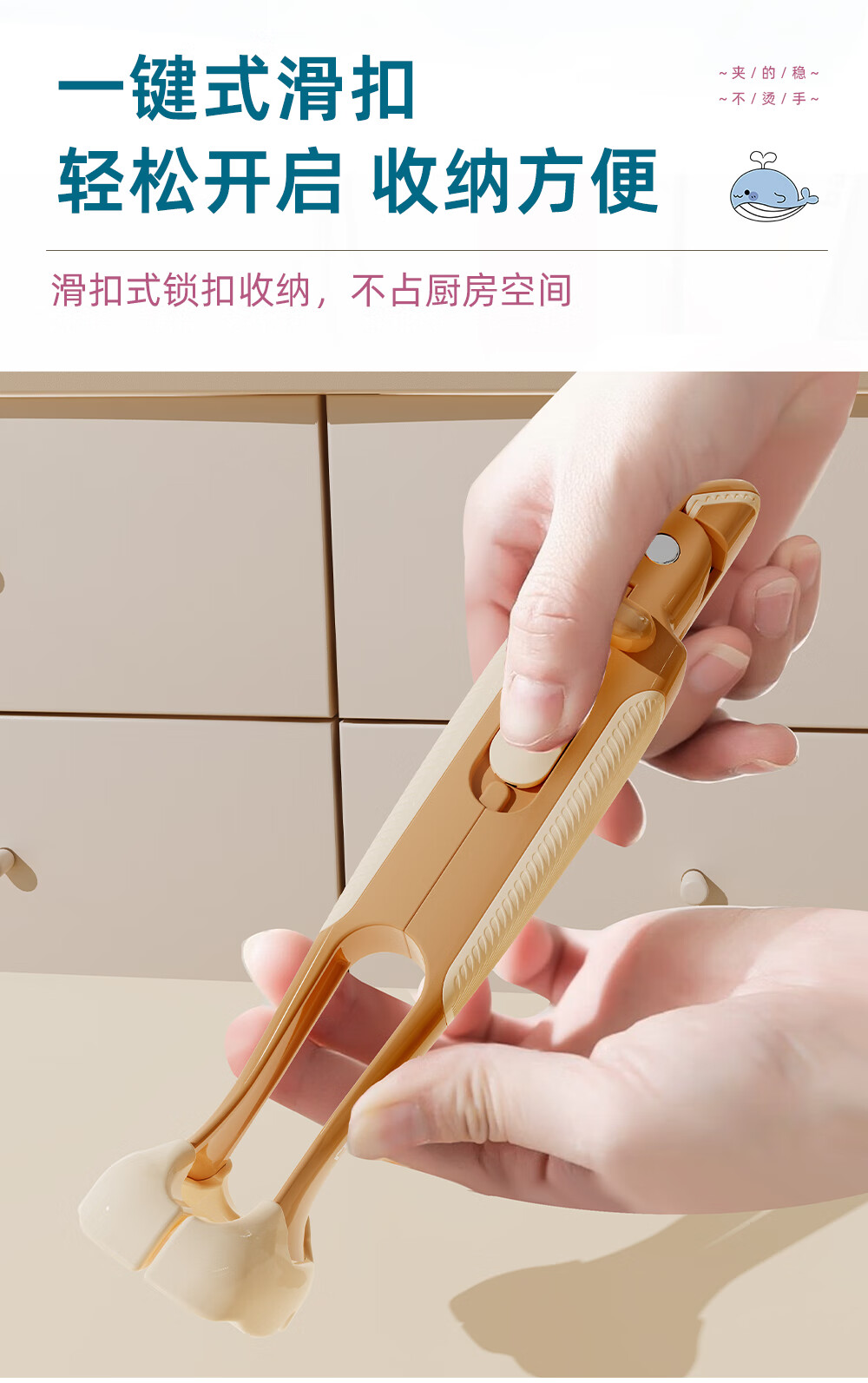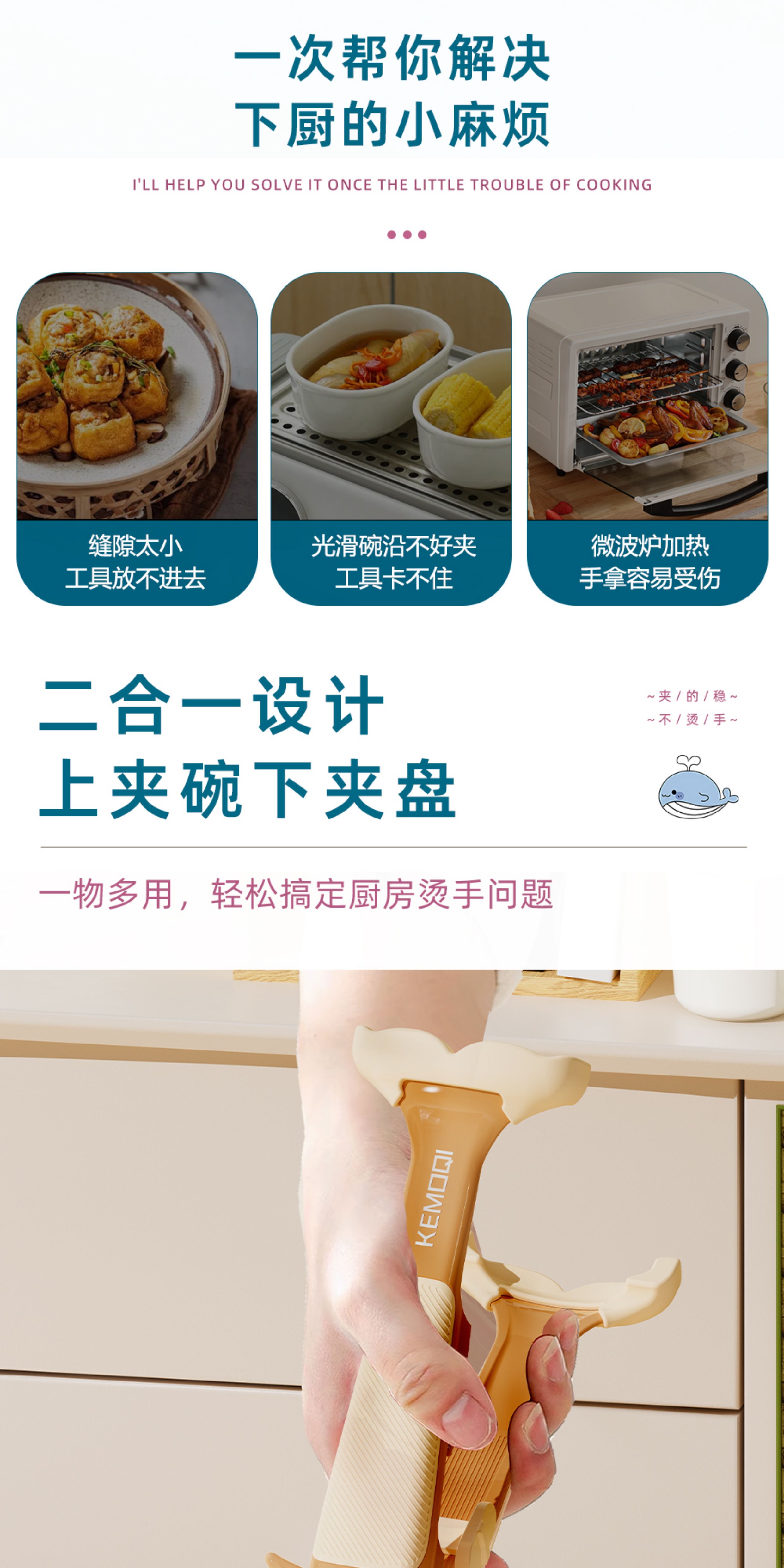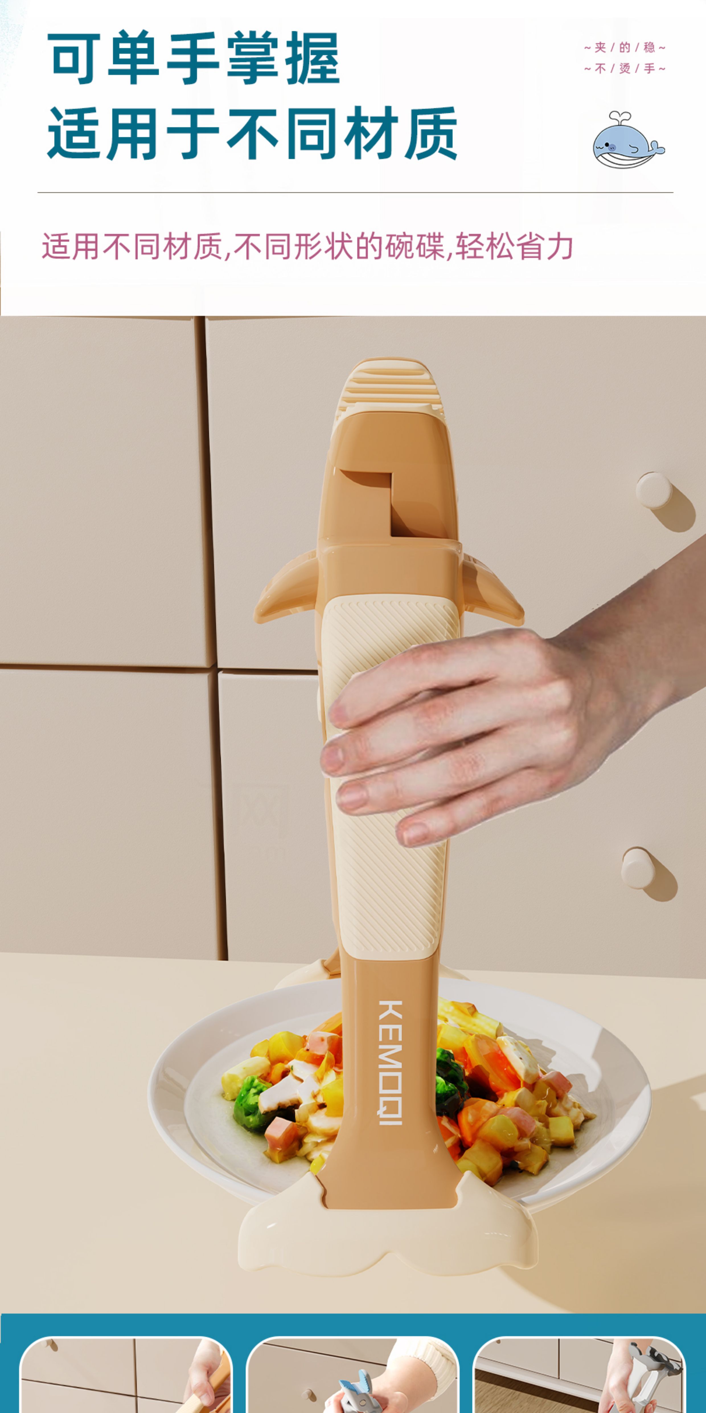 Qumuye kitchen special whale two-in-one anti-scalding clip silicone non-slip plate lifter steamer steamer dish remover bowl clip plate artifact coffee color 1 pack anti-slip chuck does not damage the bowl and plate