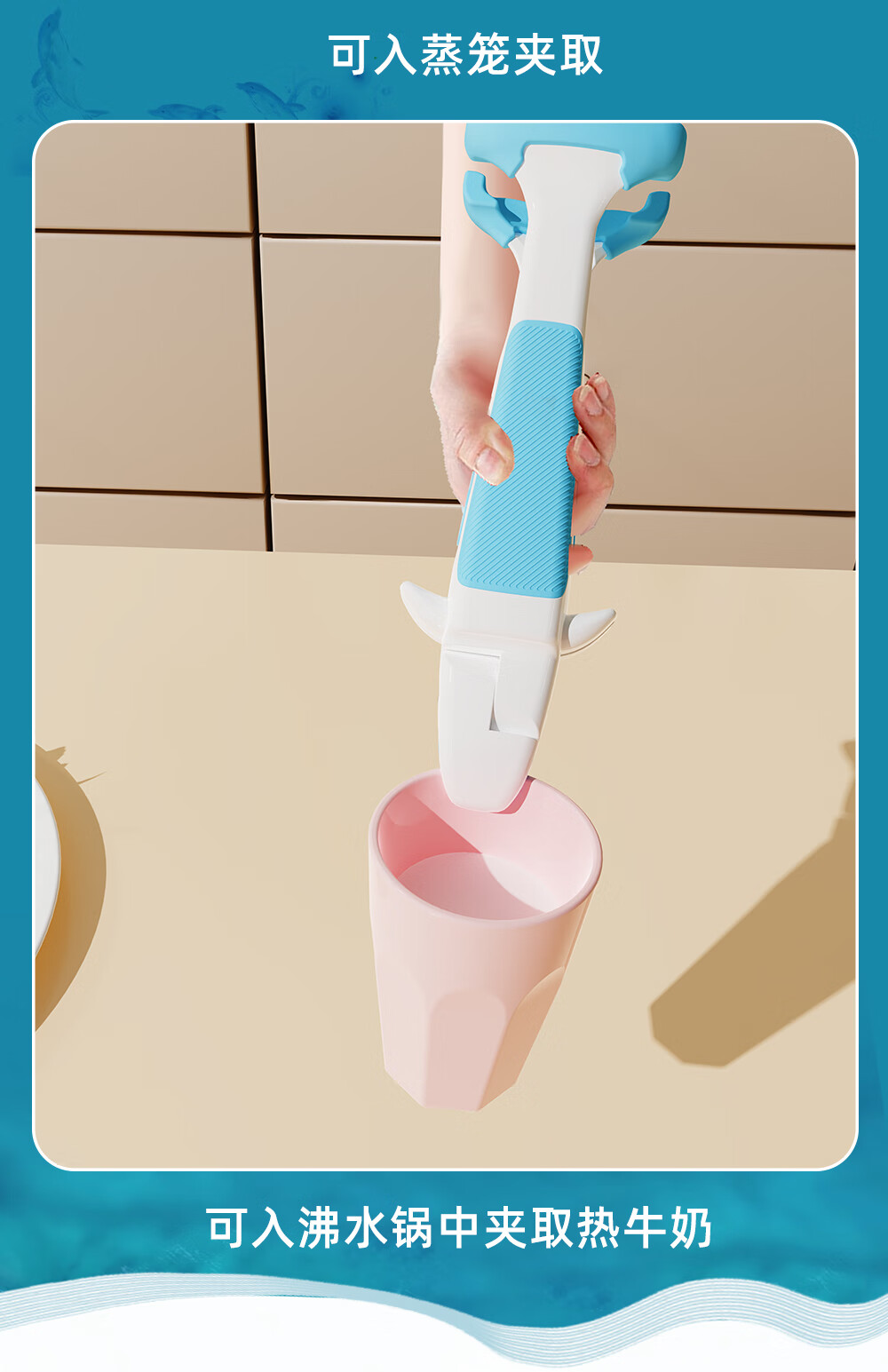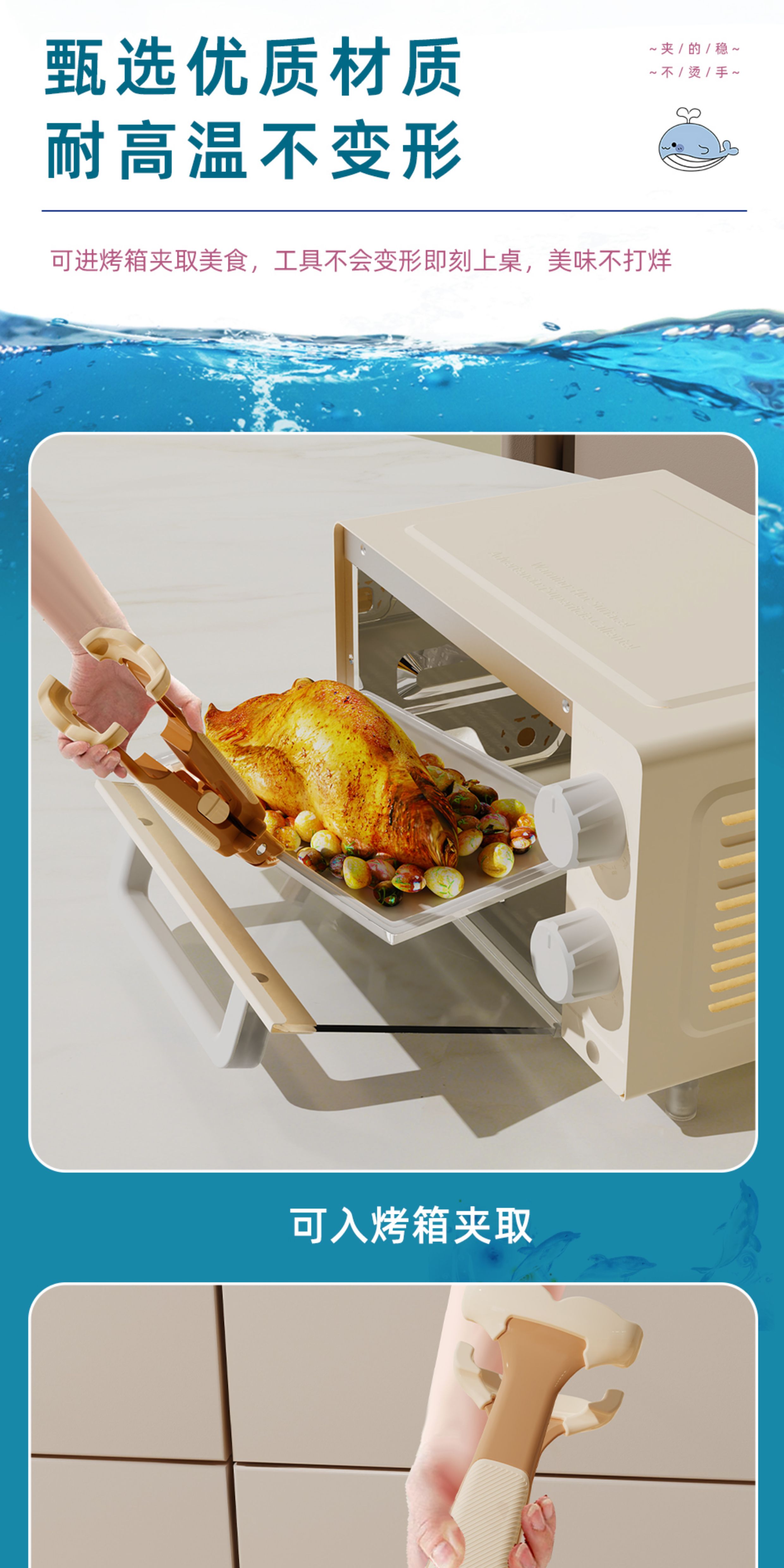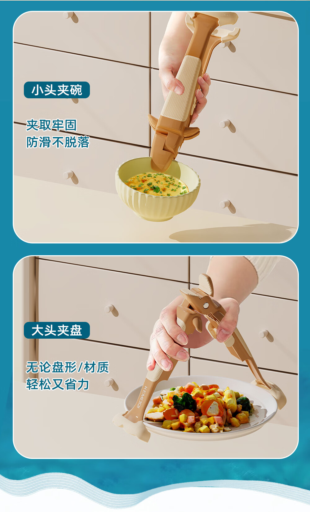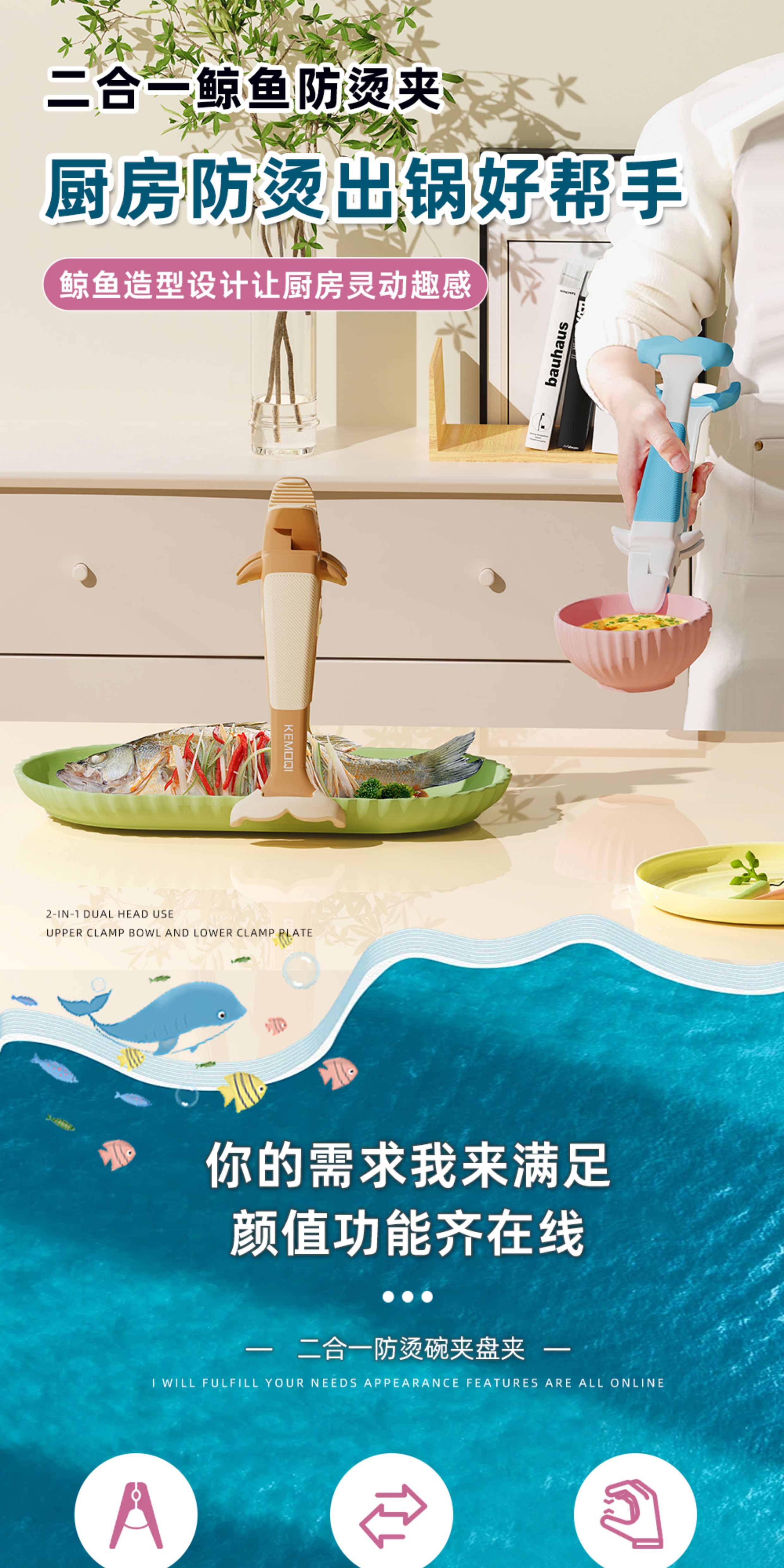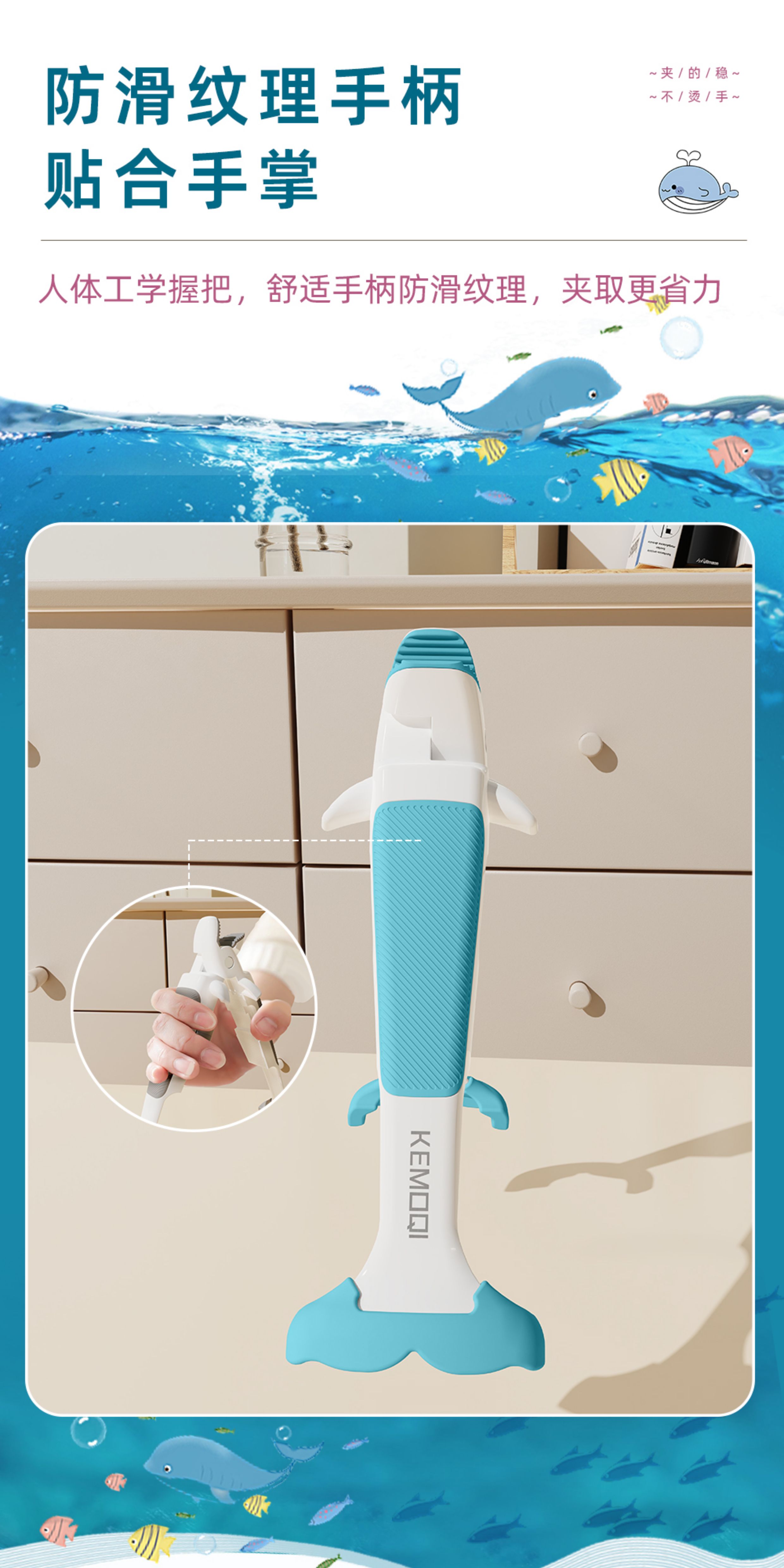 Qumuye kitchen special whale two-in-one anti-scalding clip silicone non-slip plate lifter steamer steamer dish remover bowl clip plate artifact coffee color 1 pack anti-slip chuck does not damage the bowl and plate