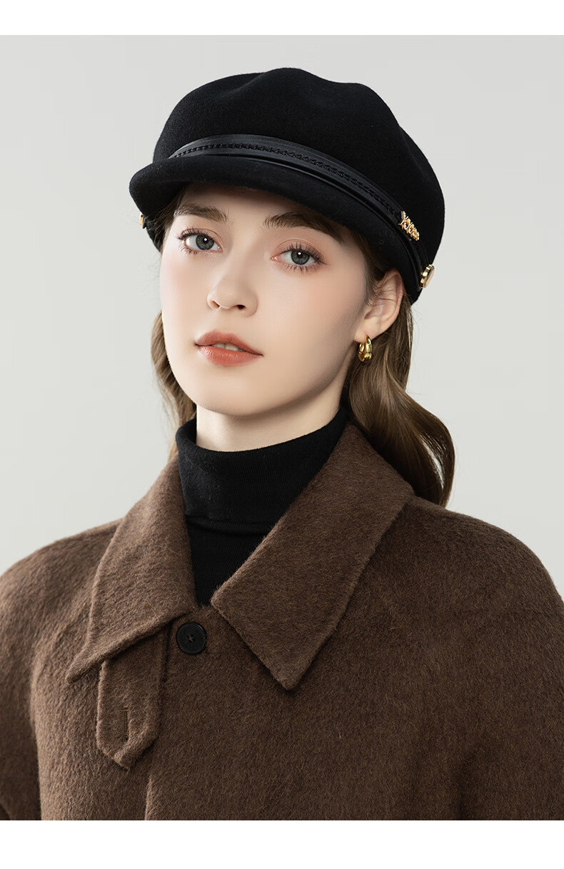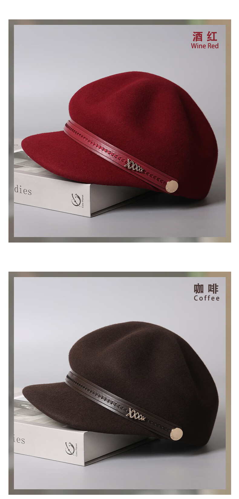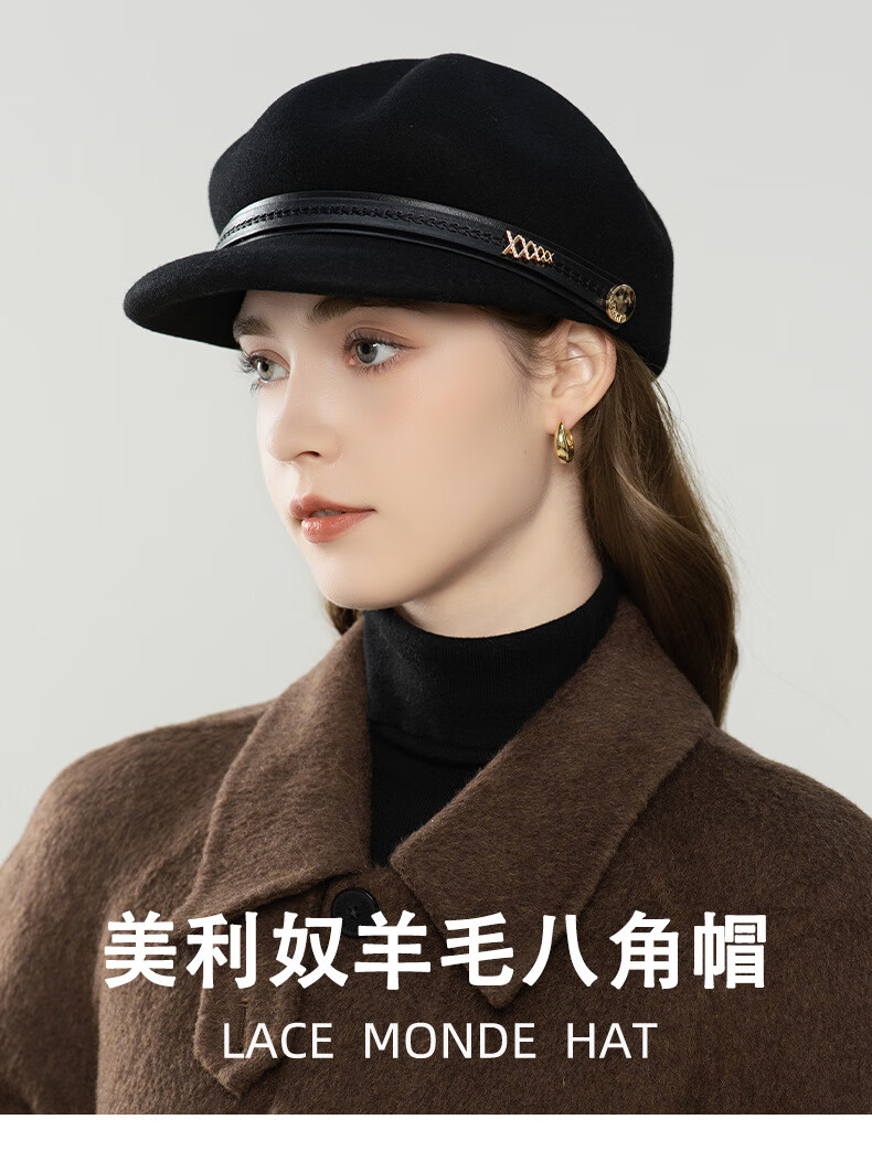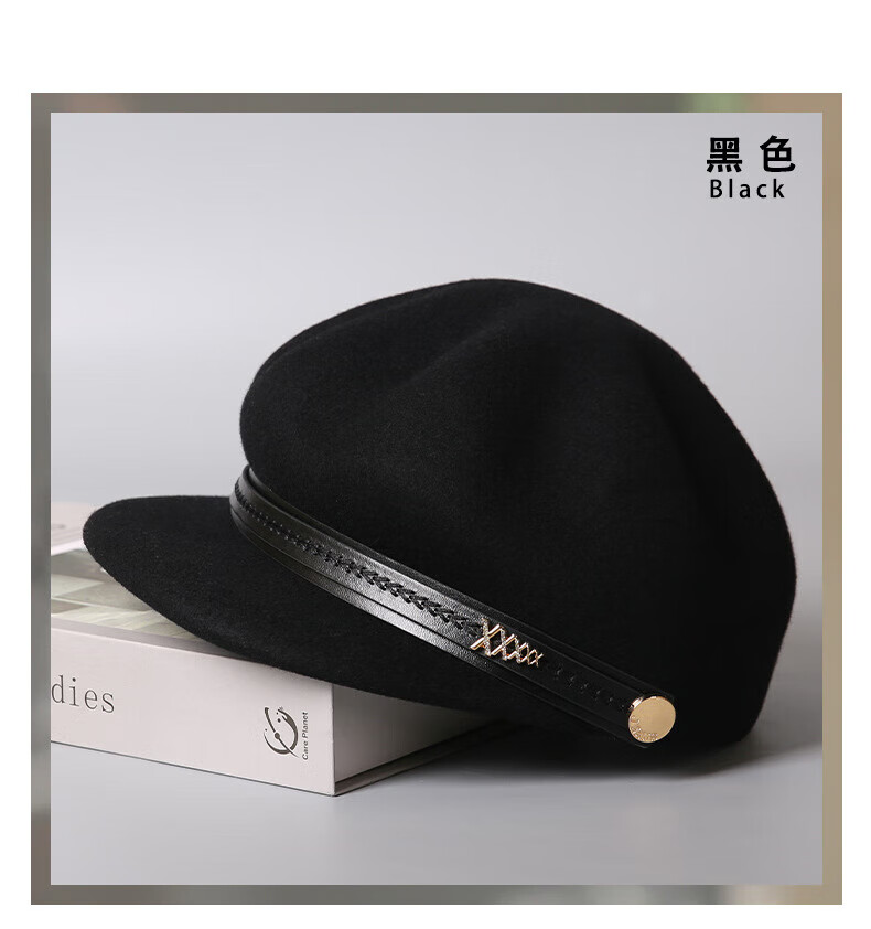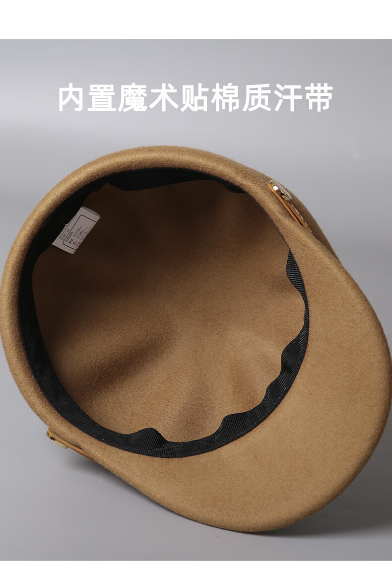GEFWEIMKL retro pu belt equestrian hat women's autumn and winter merino wool felt hat versatile octagonal hat temperament peaked hat khaki adjustable (56-58cm)