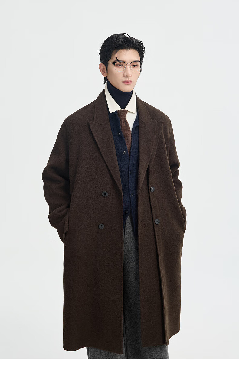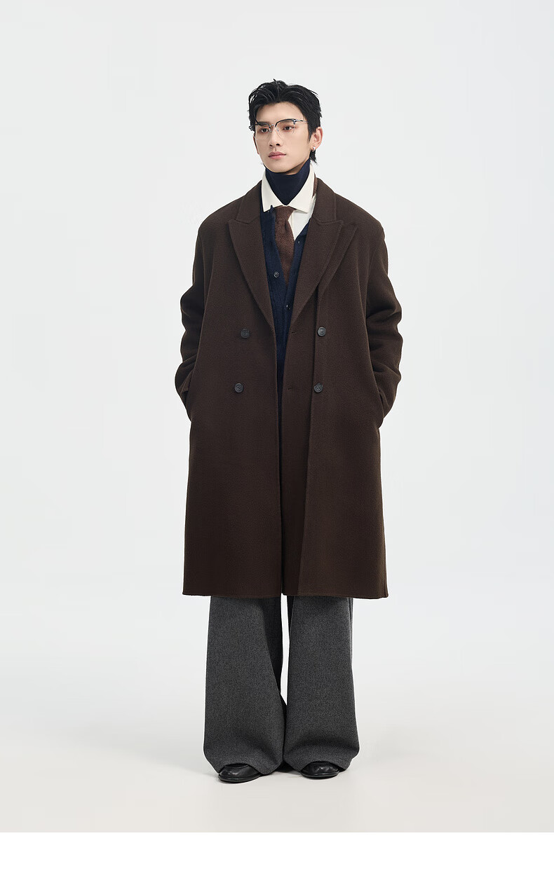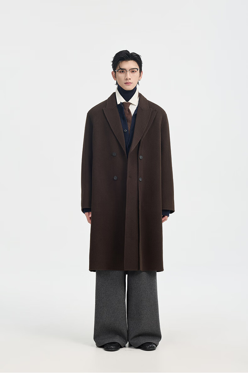 Piaget Zall Fake Two-Piece Full Wool Wool Coat Men's Medium Long Style 2025 Autumn and Winter New P541613 Chocolate Fudge M (170)