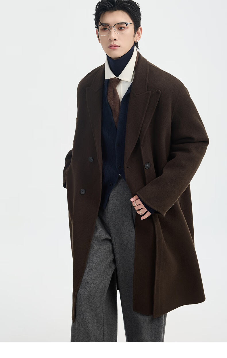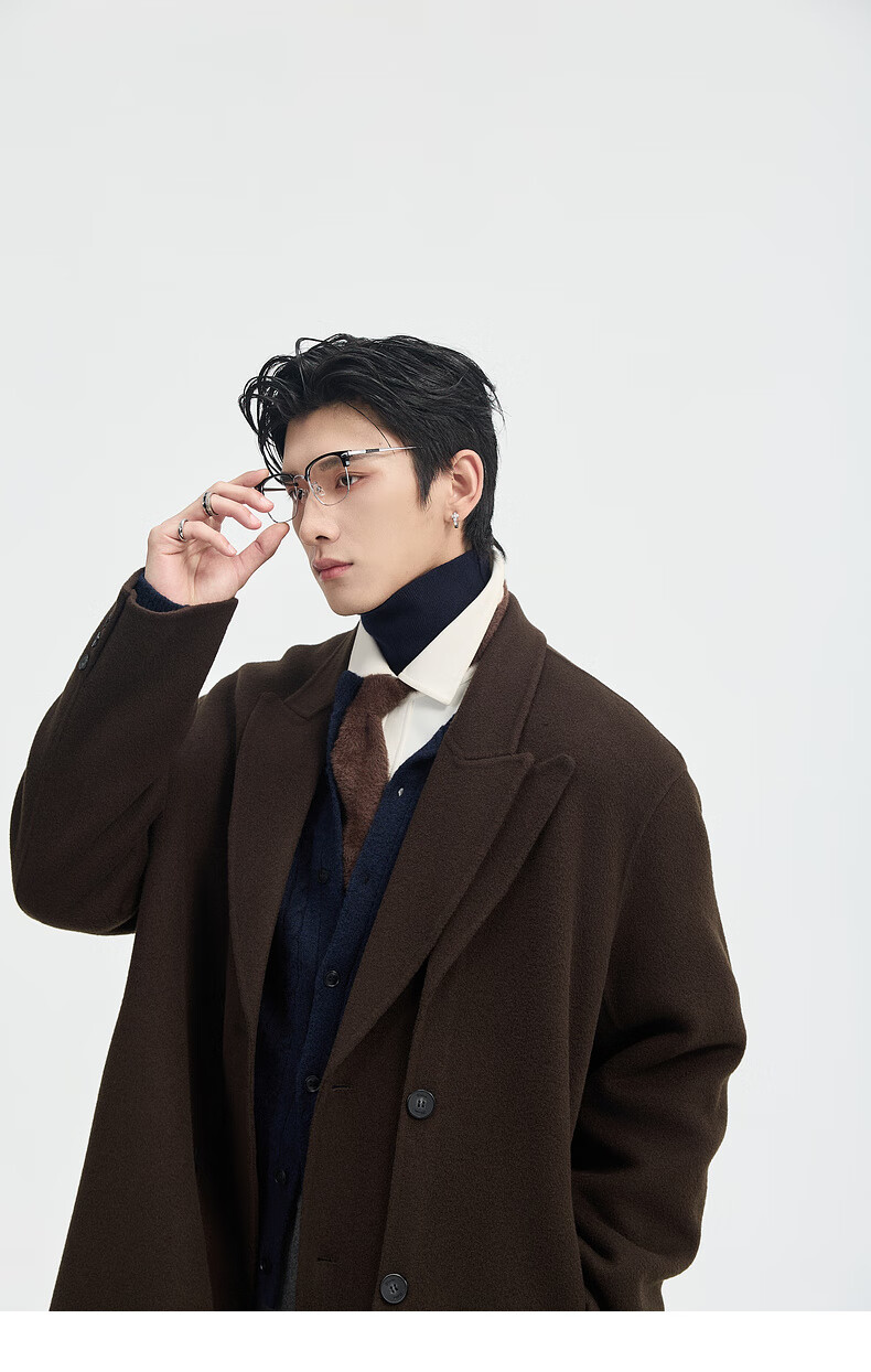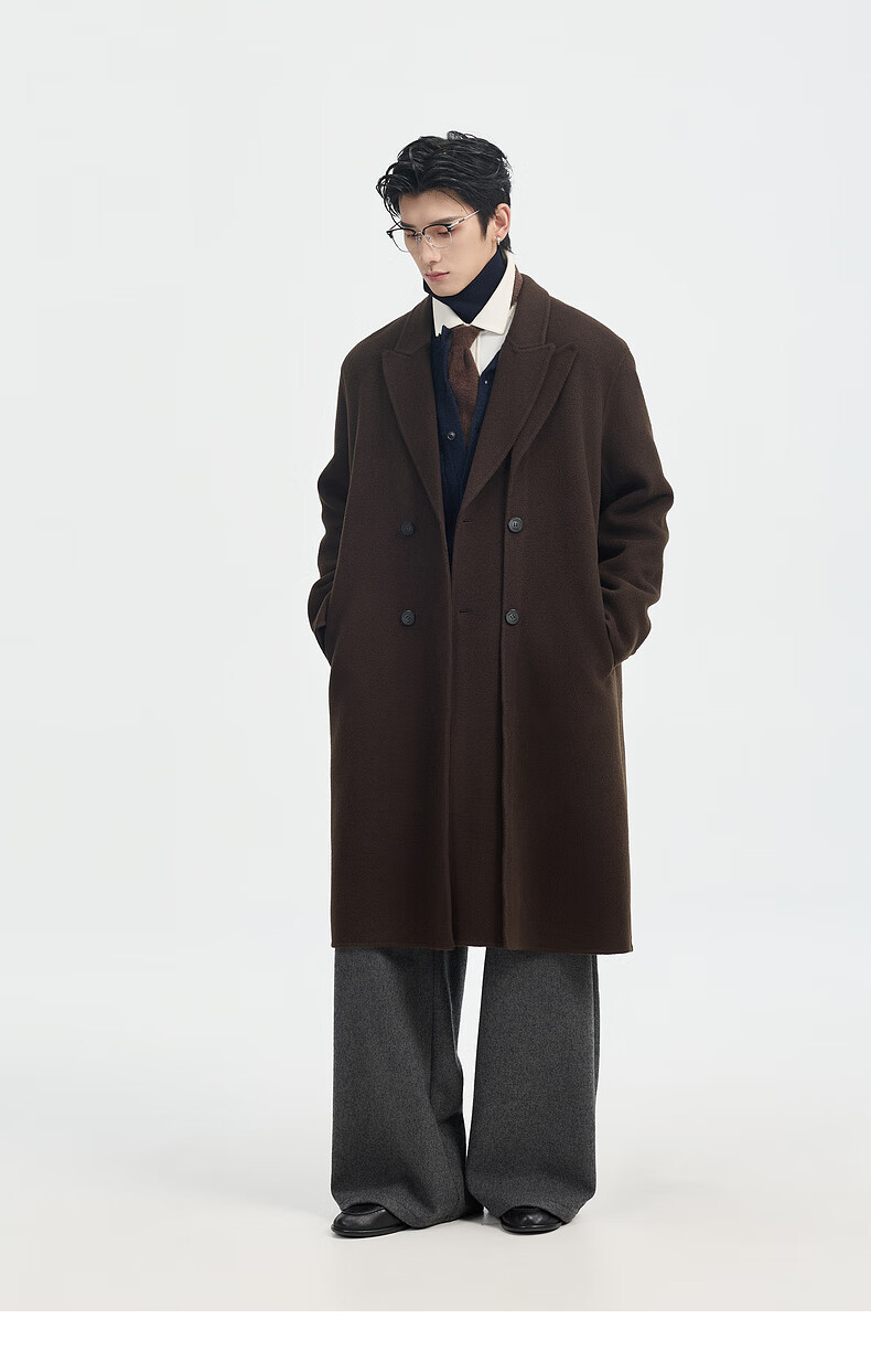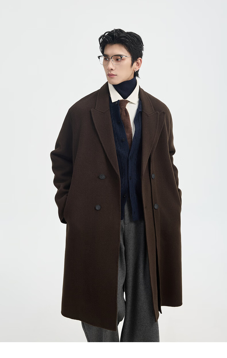 Piaget Zall Fake Two-Piece Full Wool Wool Coat Men's Medium Long Style 2025 Autumn and Winter New P541613 Chocolate Fudge M (170)