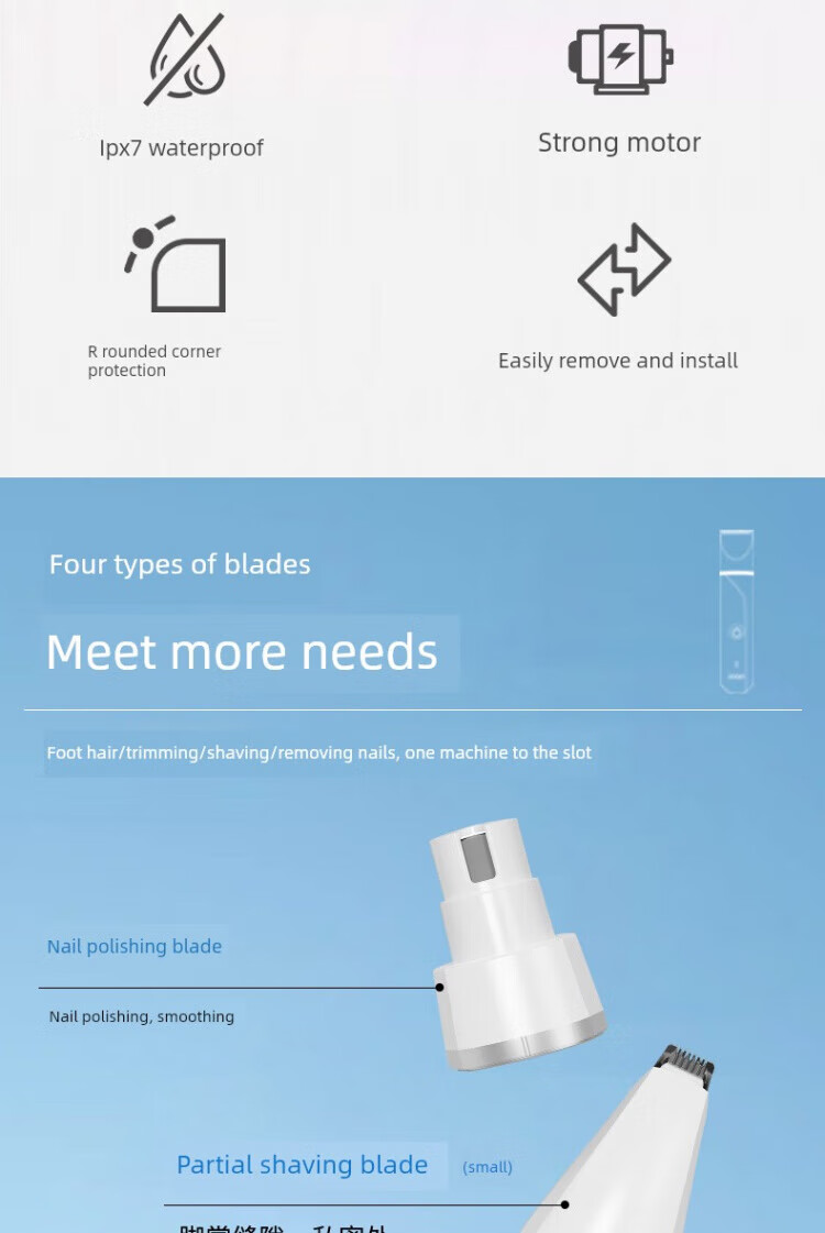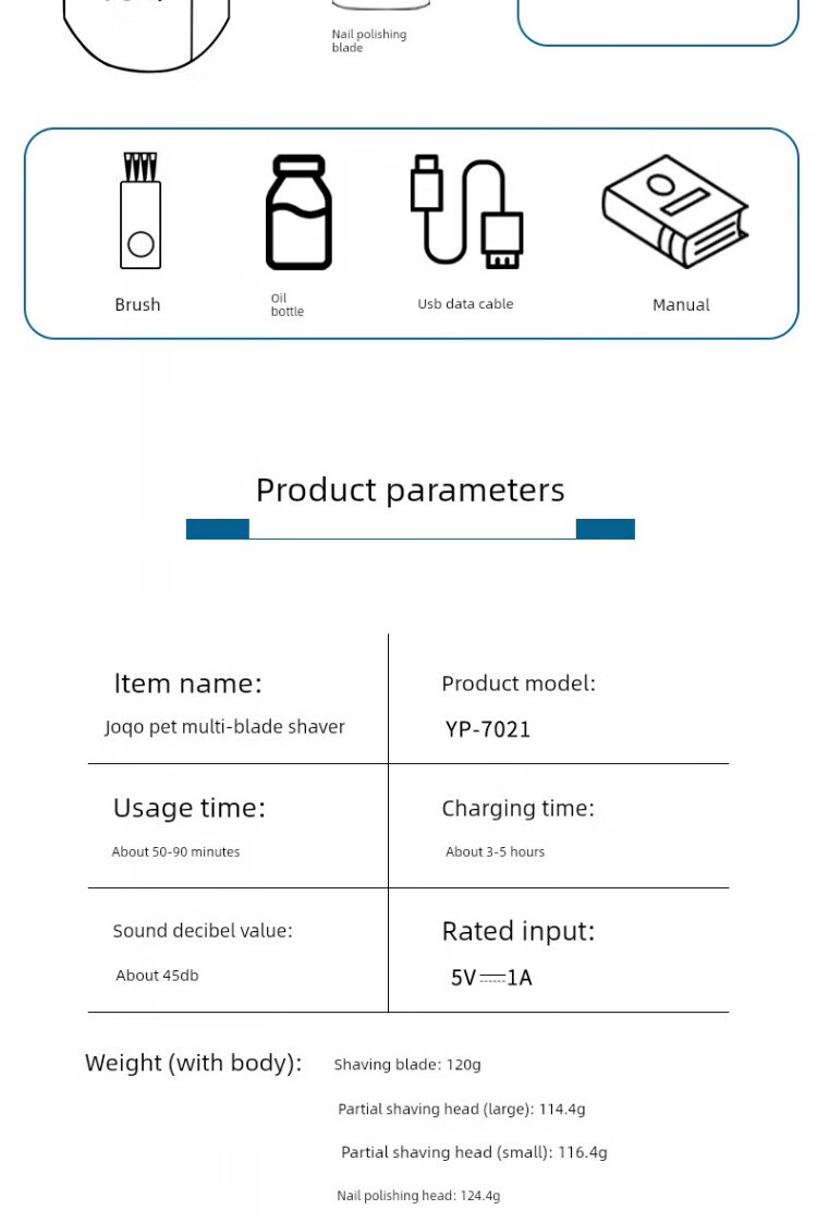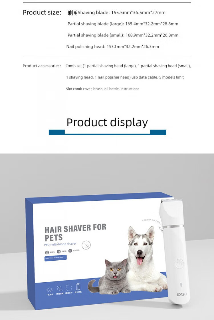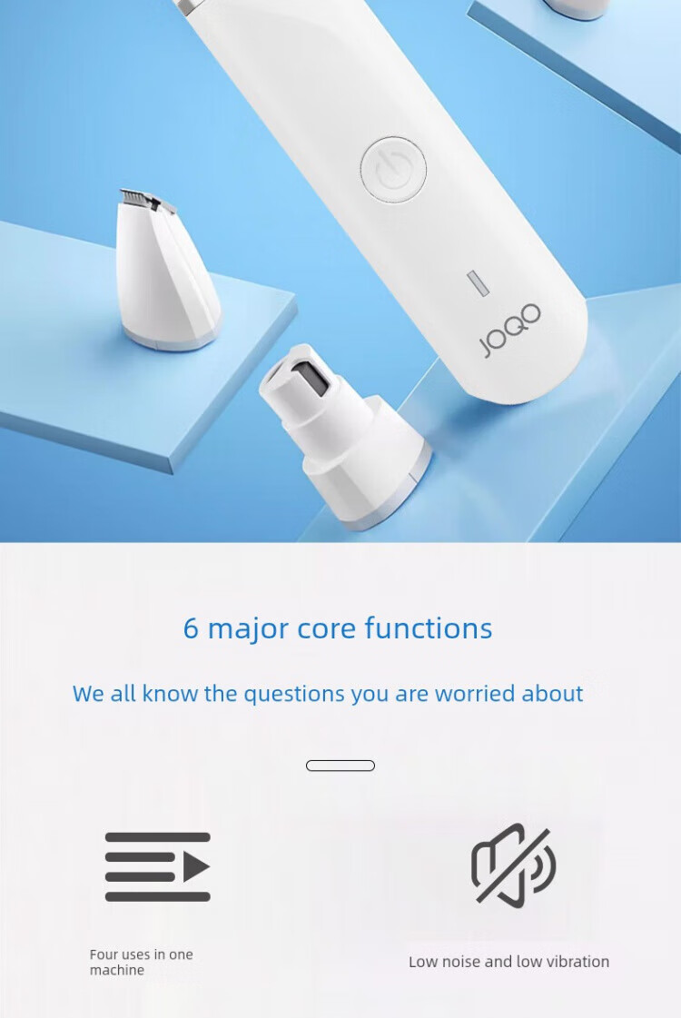Joqo pet multi-head shaver, universal 4-in-1 silent toe shaving scissors for cats and dogs, 4-in-1 electric hair clipper, body hair + foot hair + nail grinder + machete, buy one and get 11% off