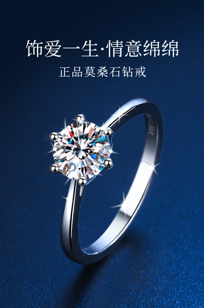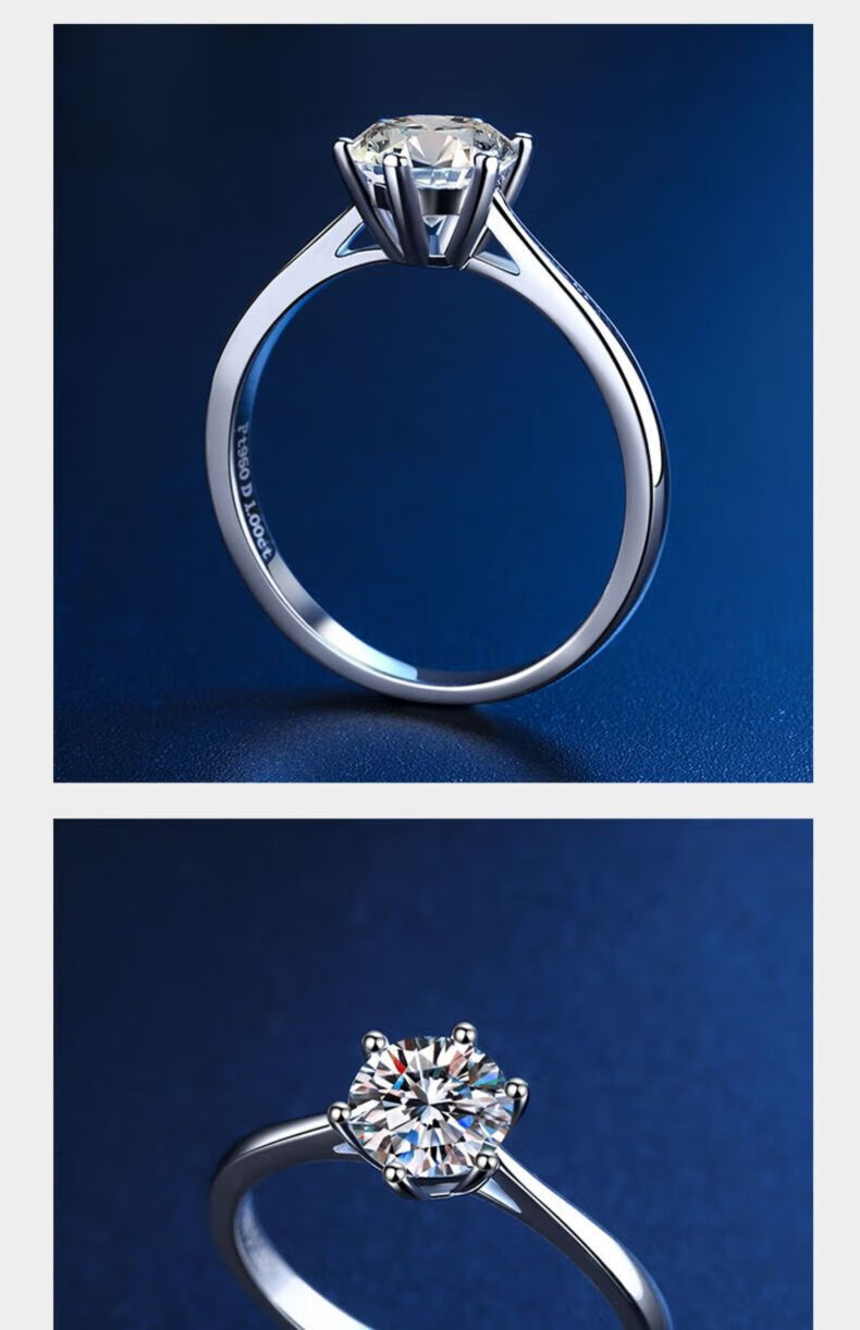 Pt950 platinum D color moissanite diamond ring 1 carat classic couple ring male and female pair proposal wedding ring light luxury 50 points classic female ring - closed mouth