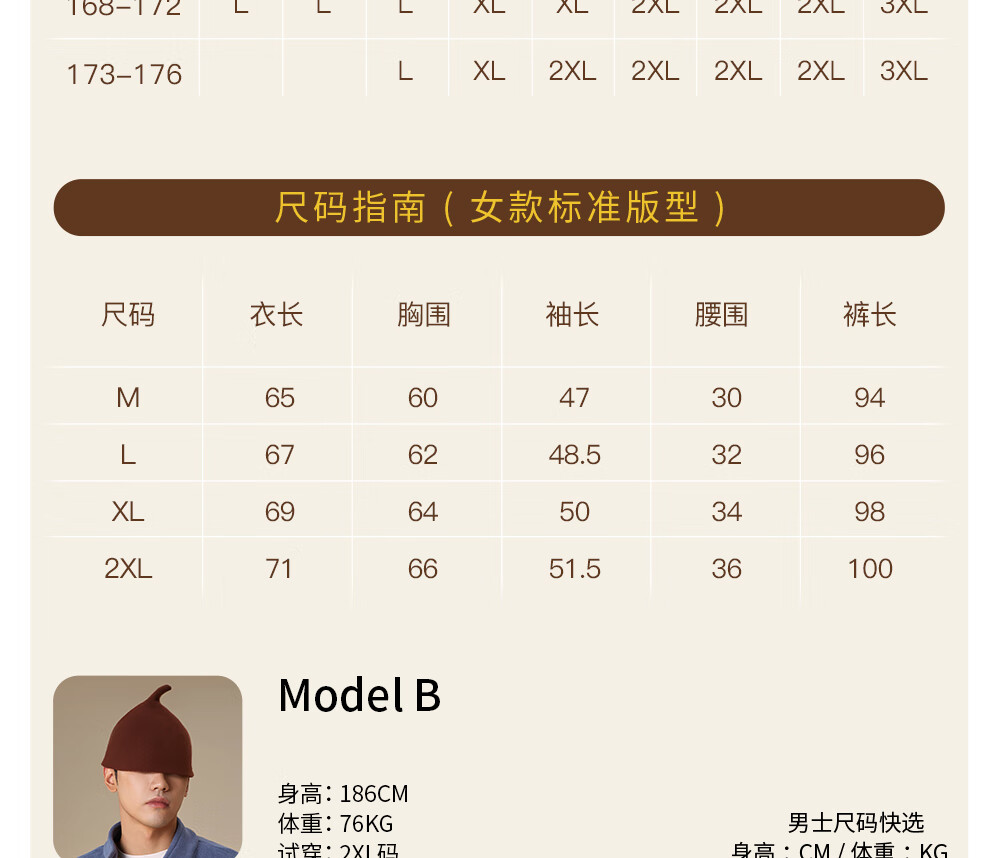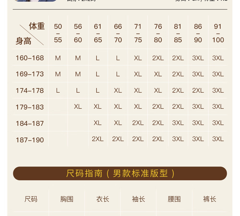 China (cm) 160-165/84-86 165-170 / 88-90 167-172 / 92-96 168-173 / 98-102 170-176 / 106-110