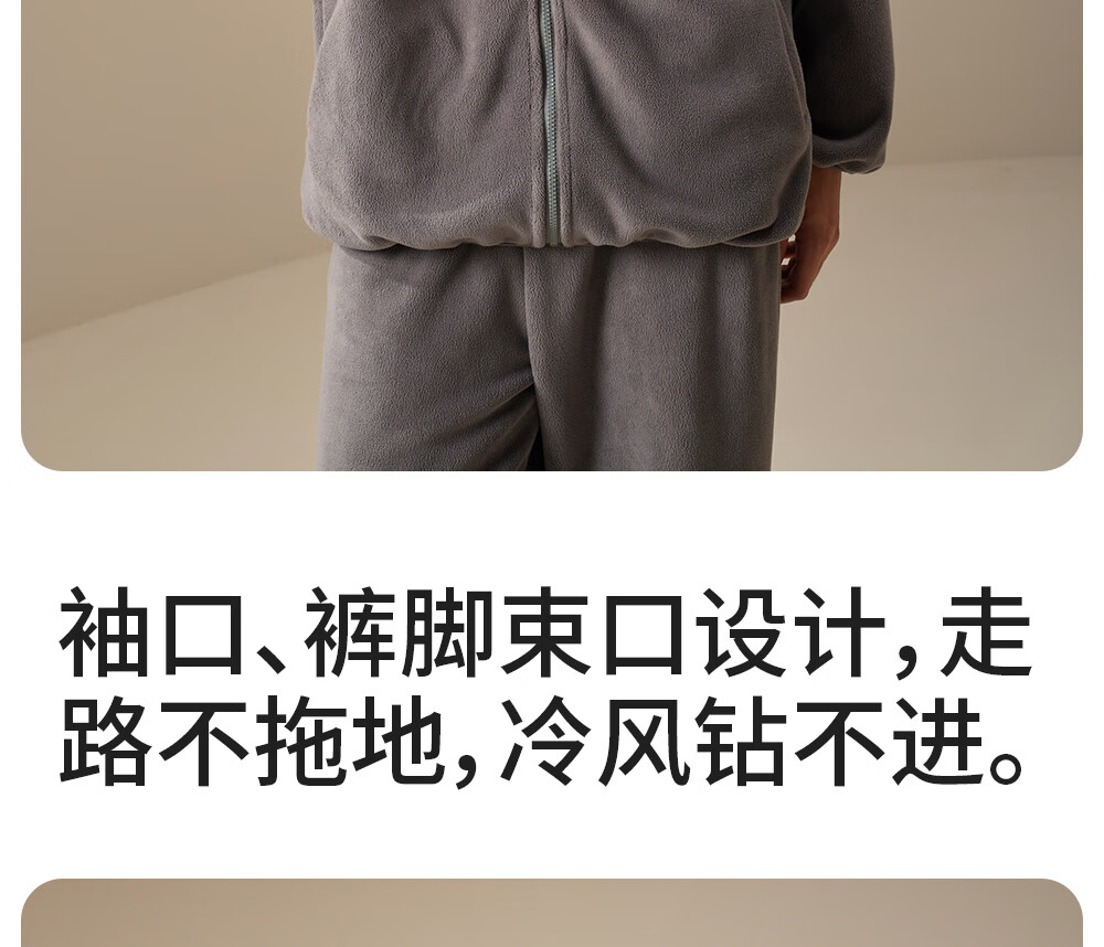 Yifen Polar Fleece Couple Pajamas Can be Weared Outside with Thickened Velvet Women's Coral Plush Zipper Winter Men's Home Clothing Set Male - Graphite Gray 360g Weight - Double-sided Polar Fleece 2XL