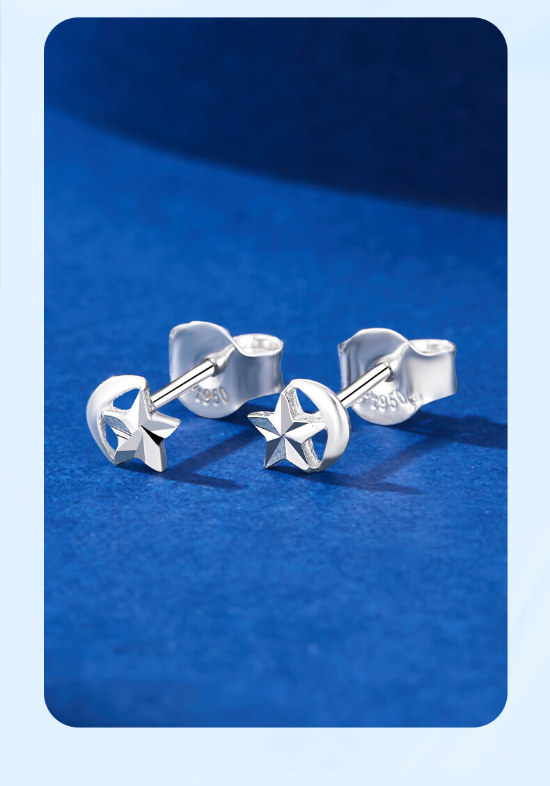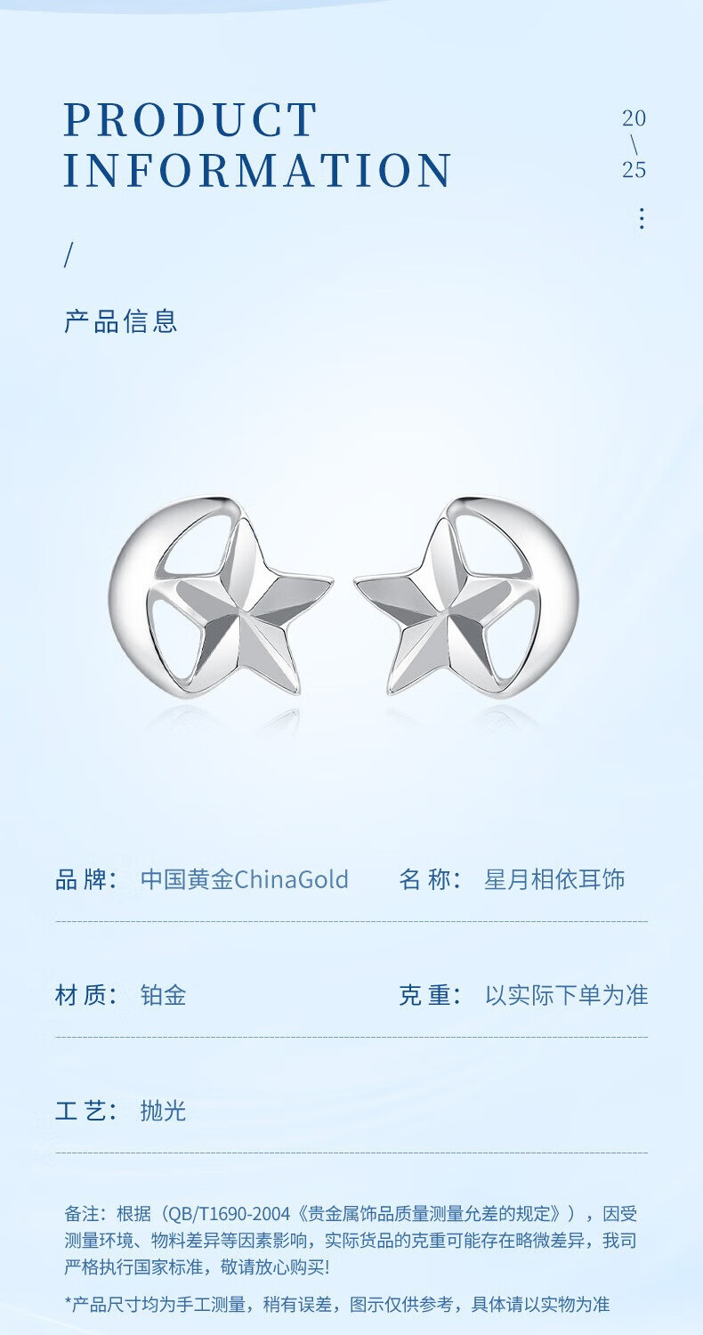China Gold (CHINA GOLD) PT950 Platinum Star and Moon Phase Earrings for Women New Platinum High-Quality Earrings Valentine's Day Gift for Girlfriend Platinum Star and Moon Phase Earrings About 1.1g Heart-beating Gift Box