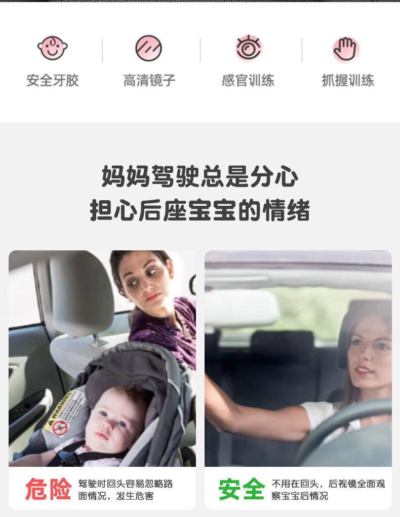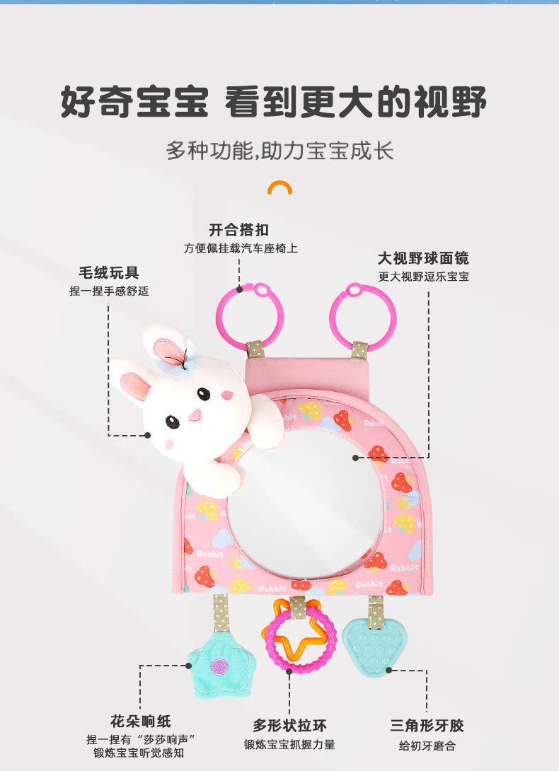 Baby safety seat viewing mirror, car rearview mirror, baby car mirror pendant, baby car reflector, Carrot Rabbit high-definition curved mirror-wider field of vision