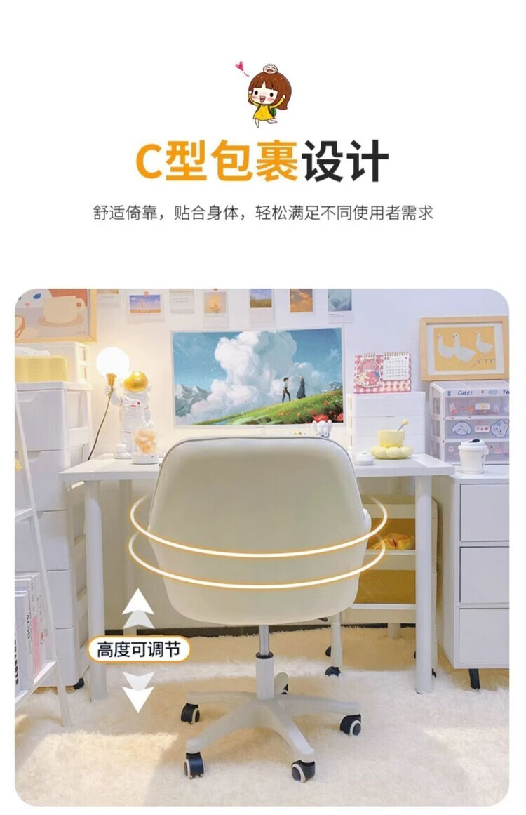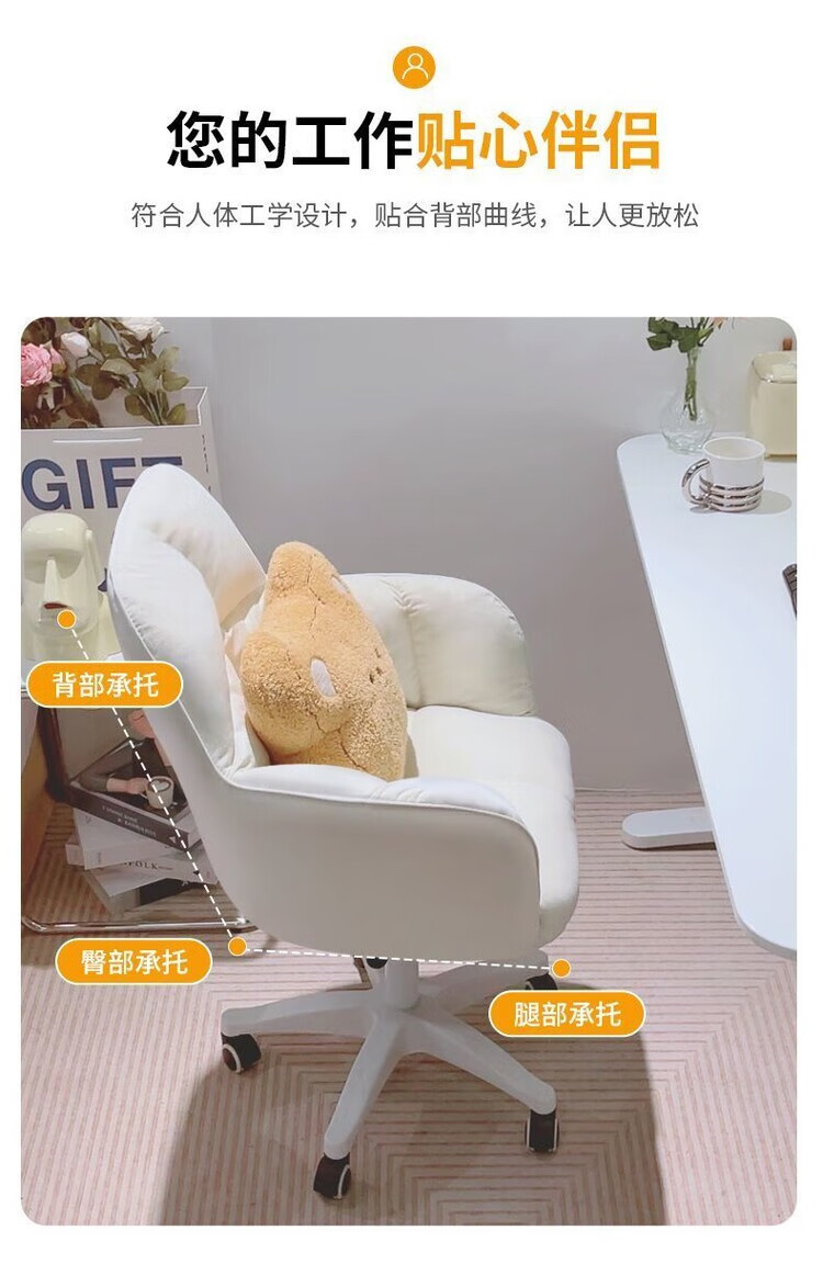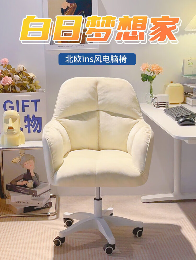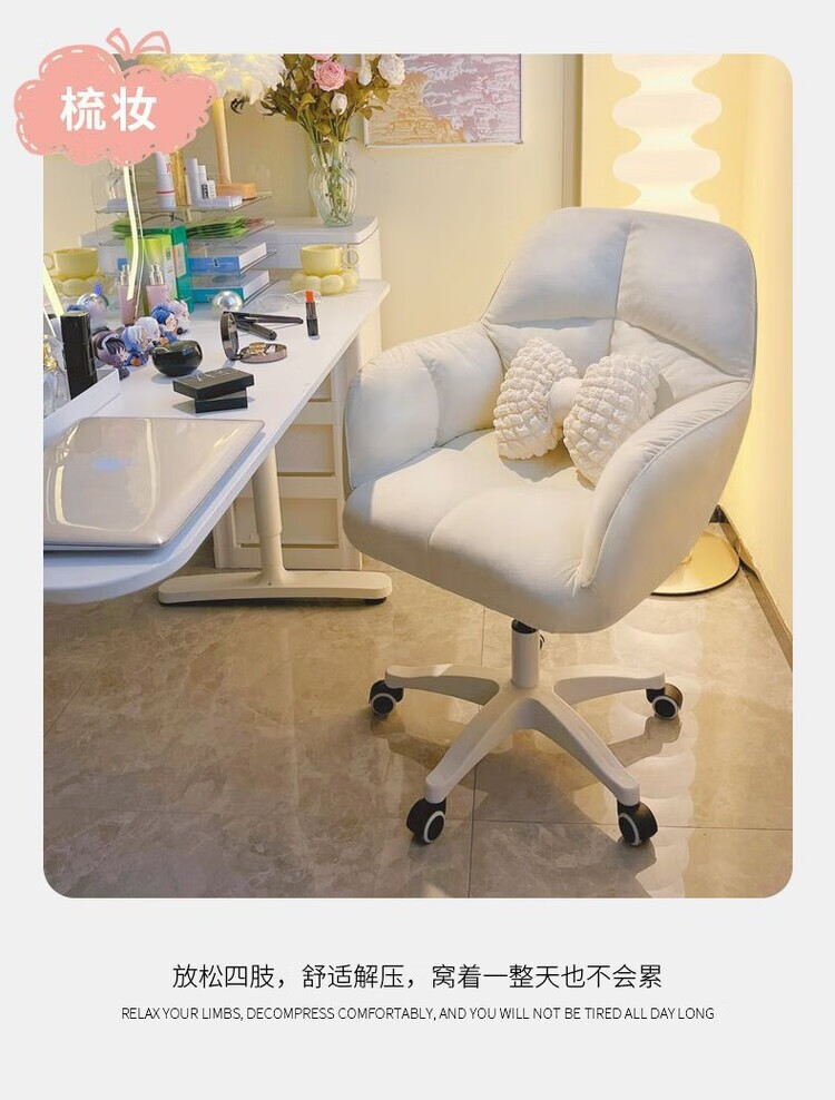 Fantasy Home Computer Chair Backrest Makeup Chair Girls Bedroom Chair Internet Celebrity Dressing Stool Simple Manicure Dressing Stool (Crown Chair) Pink-Free Waist Pillow