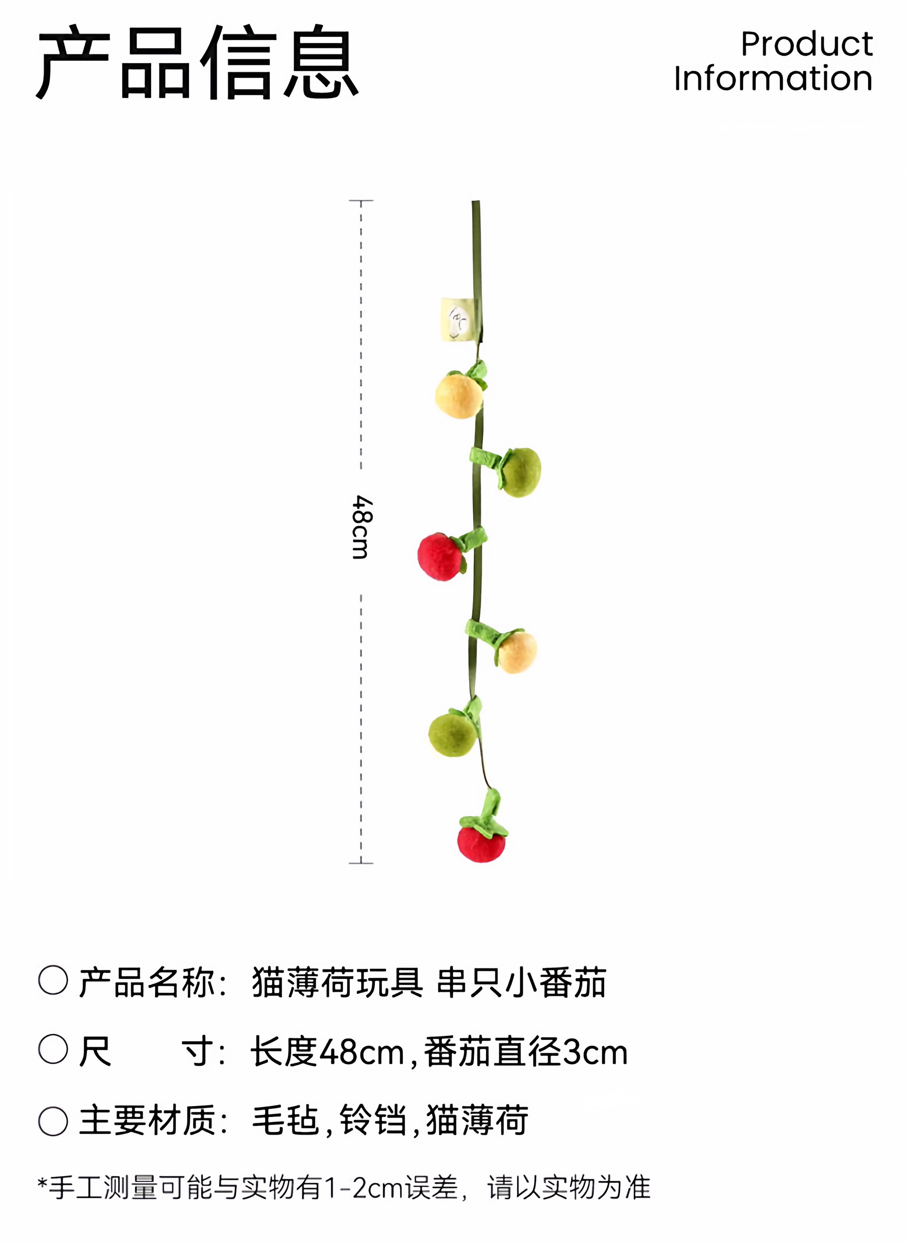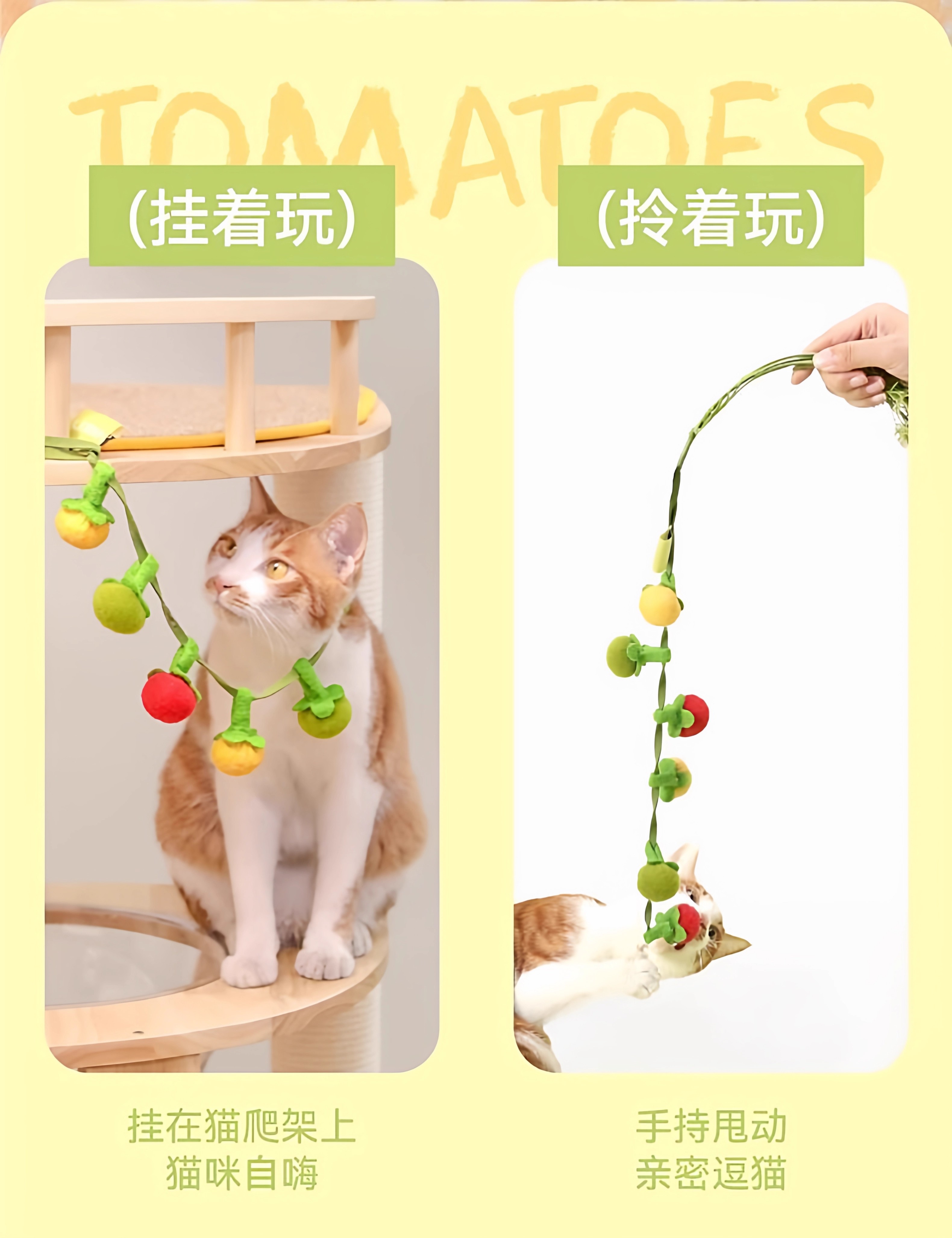 Guazhoumu cat toys, cat toys, cat sticks, self-stimulation and boredom relief artifacts, bite-resistant kittens and kittens, energy-consuming pet supplies, a bunch of 6 small tomatoes, with a bell + catnip, and a free sticky hook
