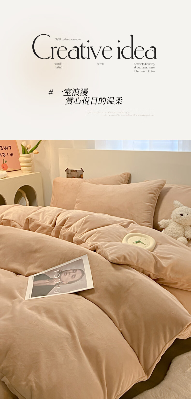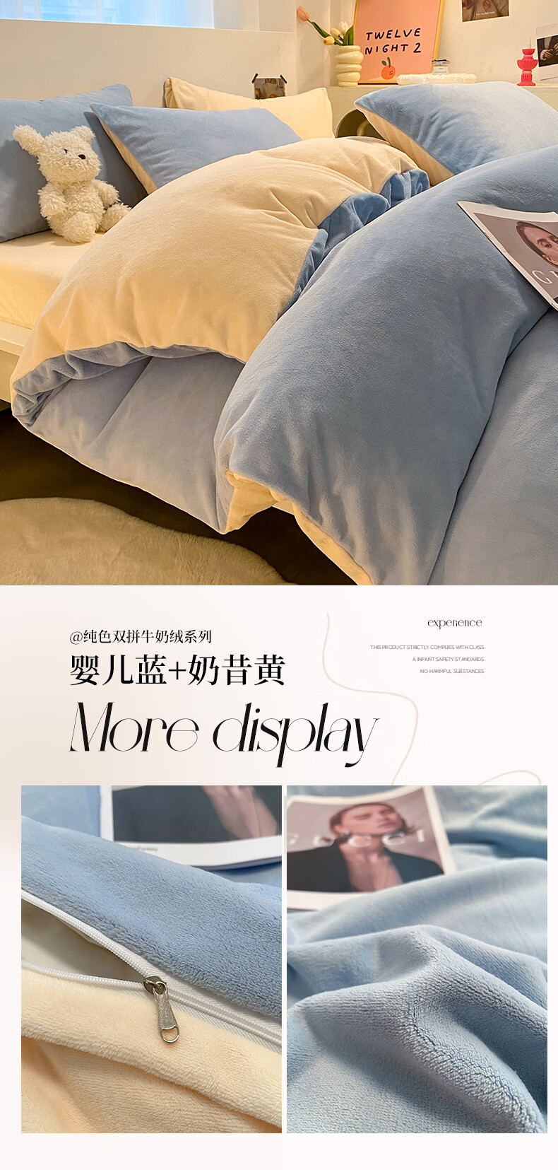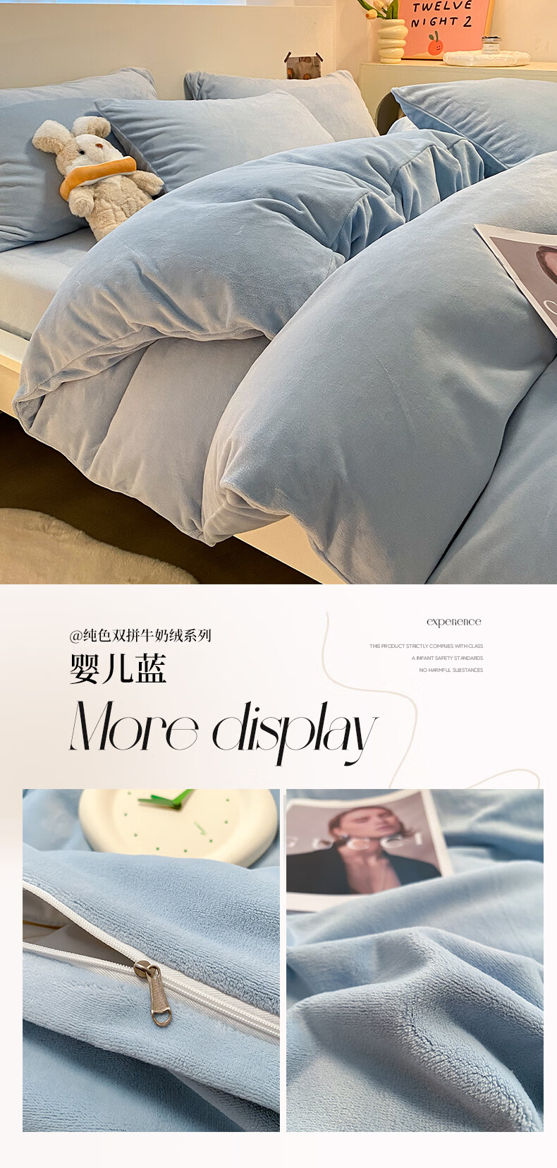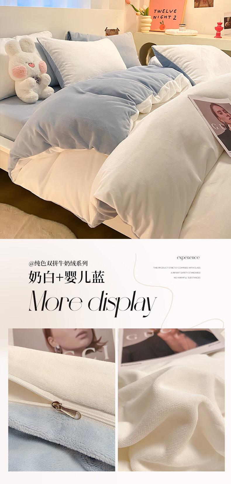 Fu丨Anna milk velvet four-piece set winter 2025 new coral velvet quilt cover bed sheet three-piece set milk white + baby blue bed sheet style 1.5m four-piece quilt cover 180*220