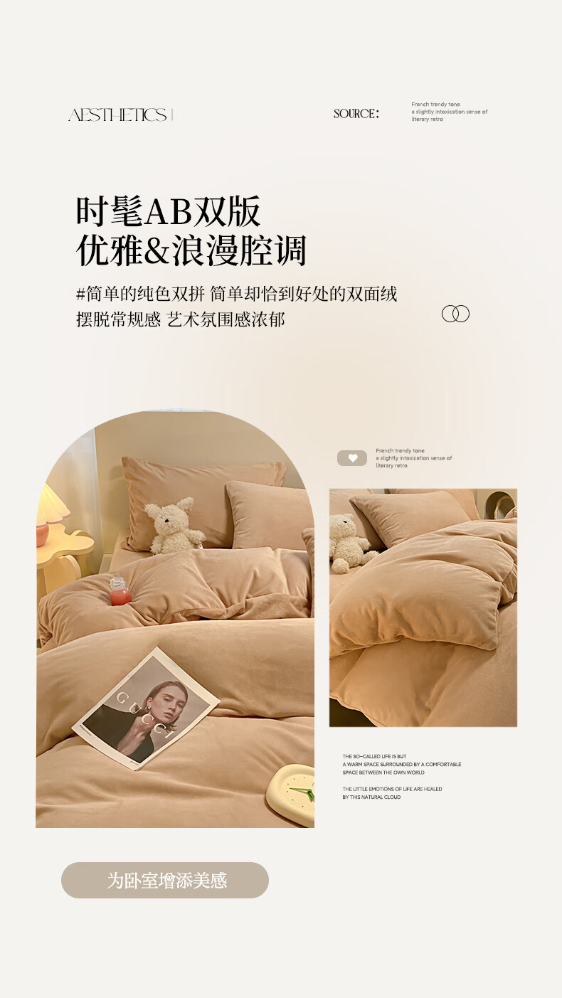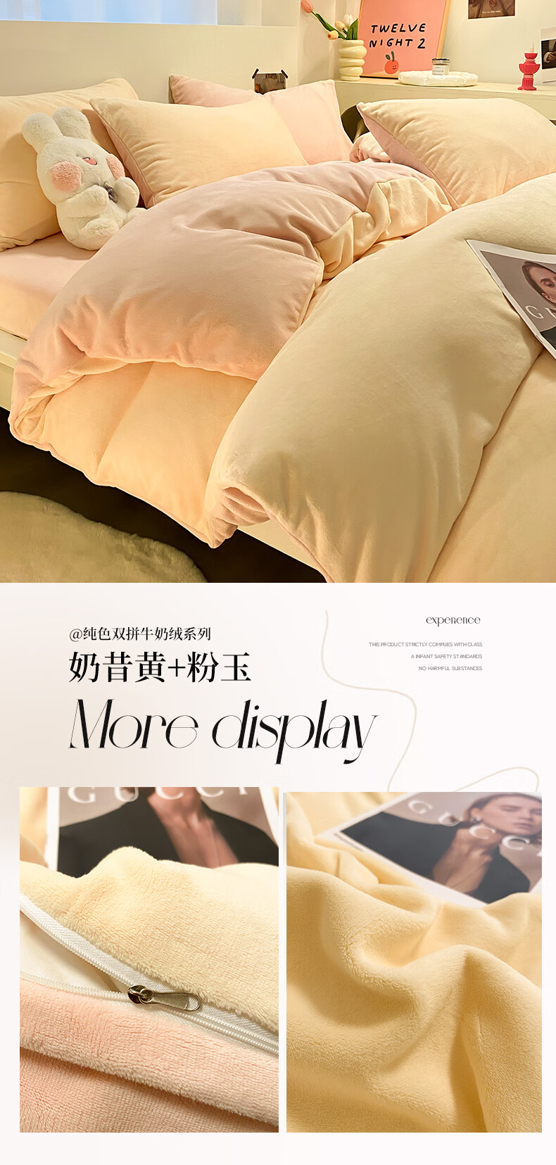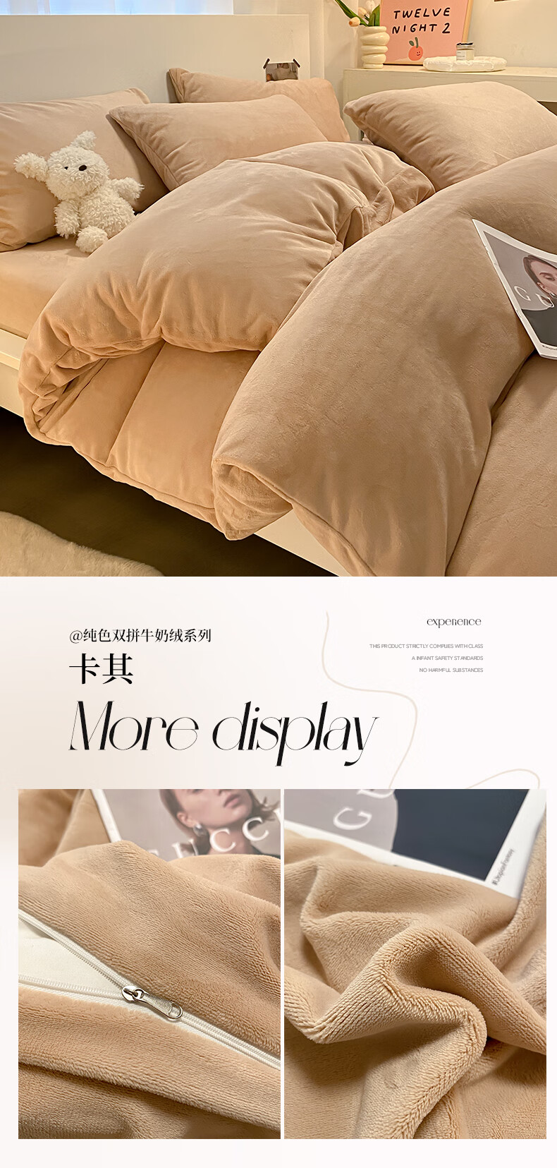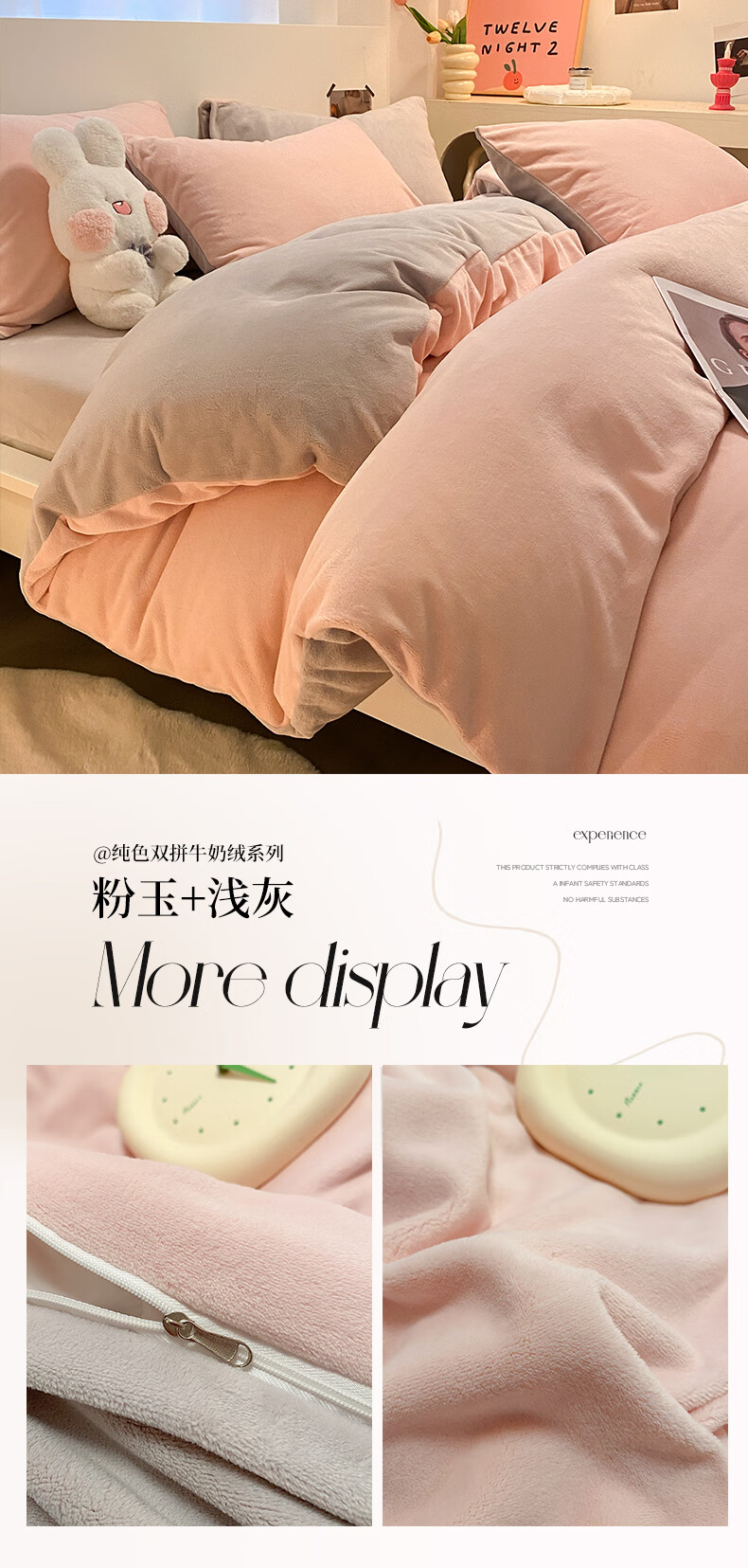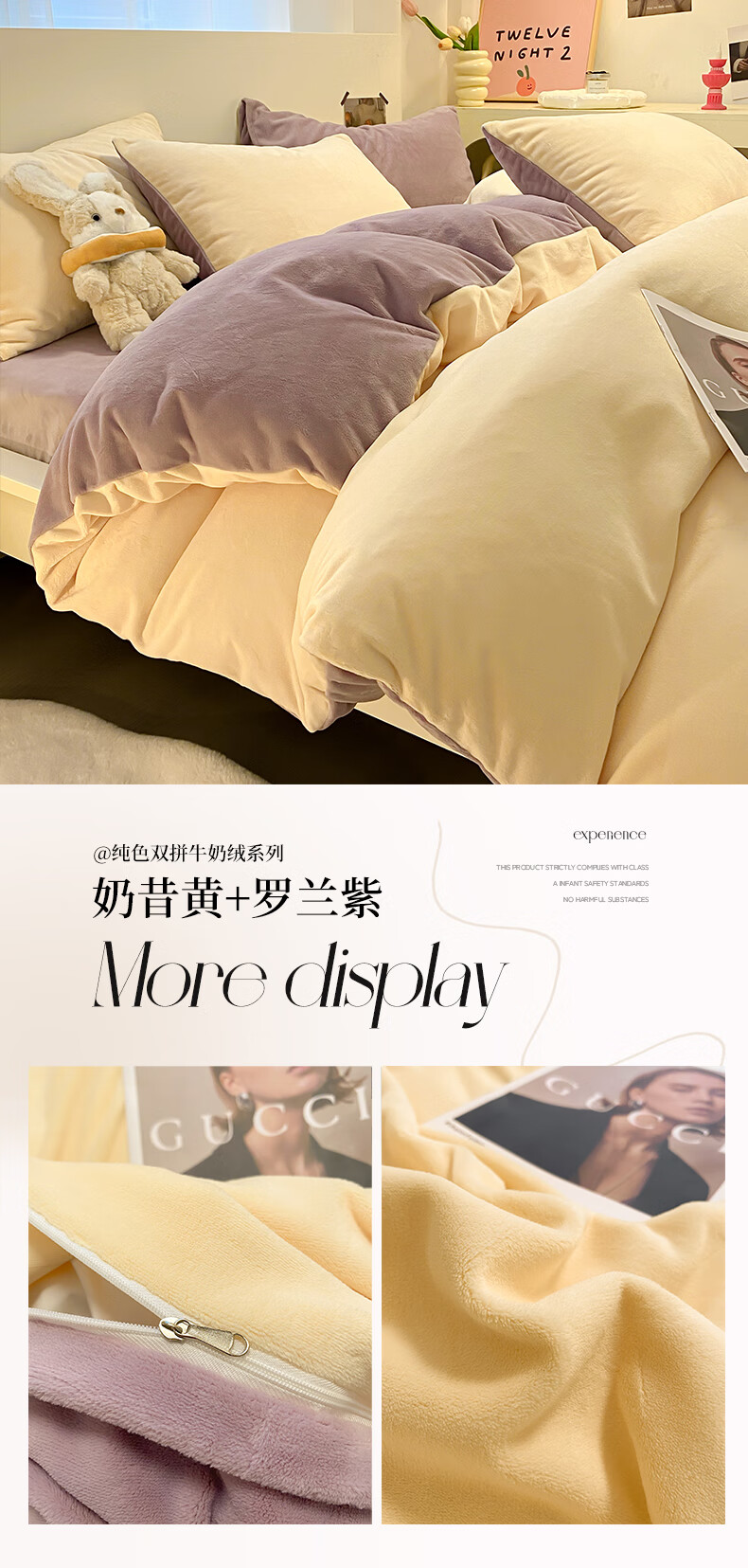 Fu丨Anna milk velvet four-piece set winter 2025 new coral velvet quilt cover bed sheet three-piece set milk white + baby blue bed sheet style 1.5m four-piece quilt cover 180*220