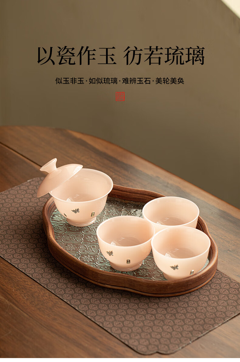 Tao Yu, raw jade, ice seed, jade porcelain, curium nails, tea bowl small set, home ceramics one bowl, two cups, Kung Fu tea set, raw jade, ice seed jade porcelain, curium nails, tea bowl small set