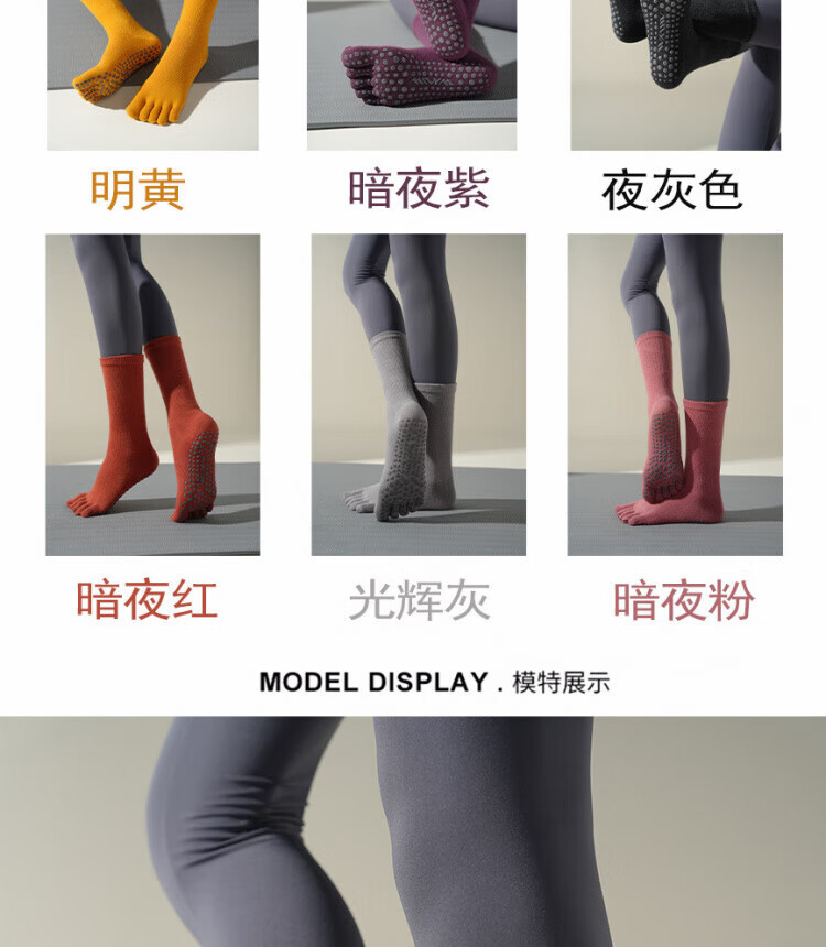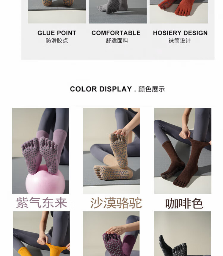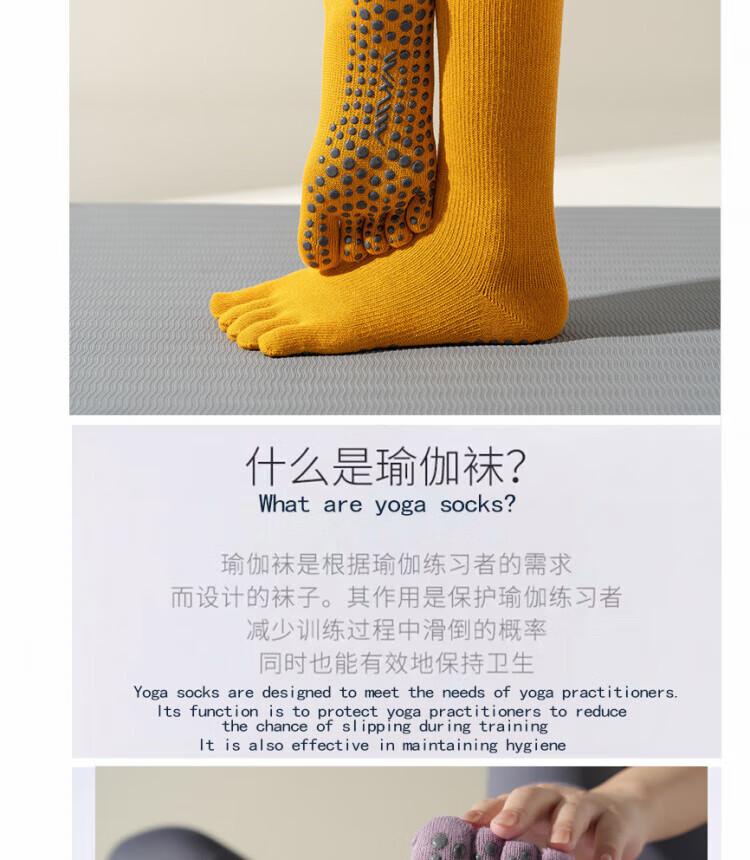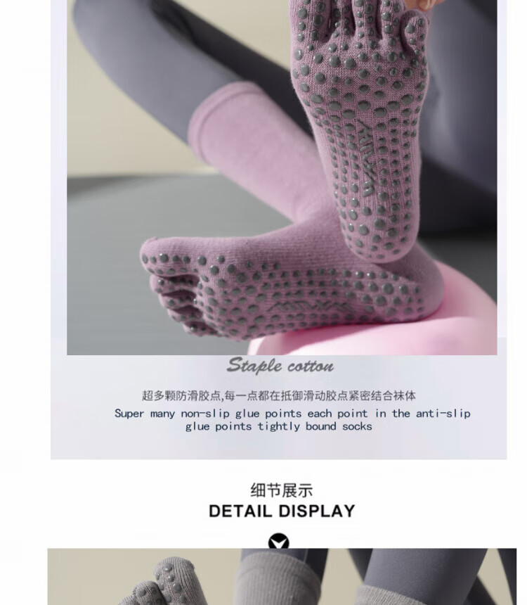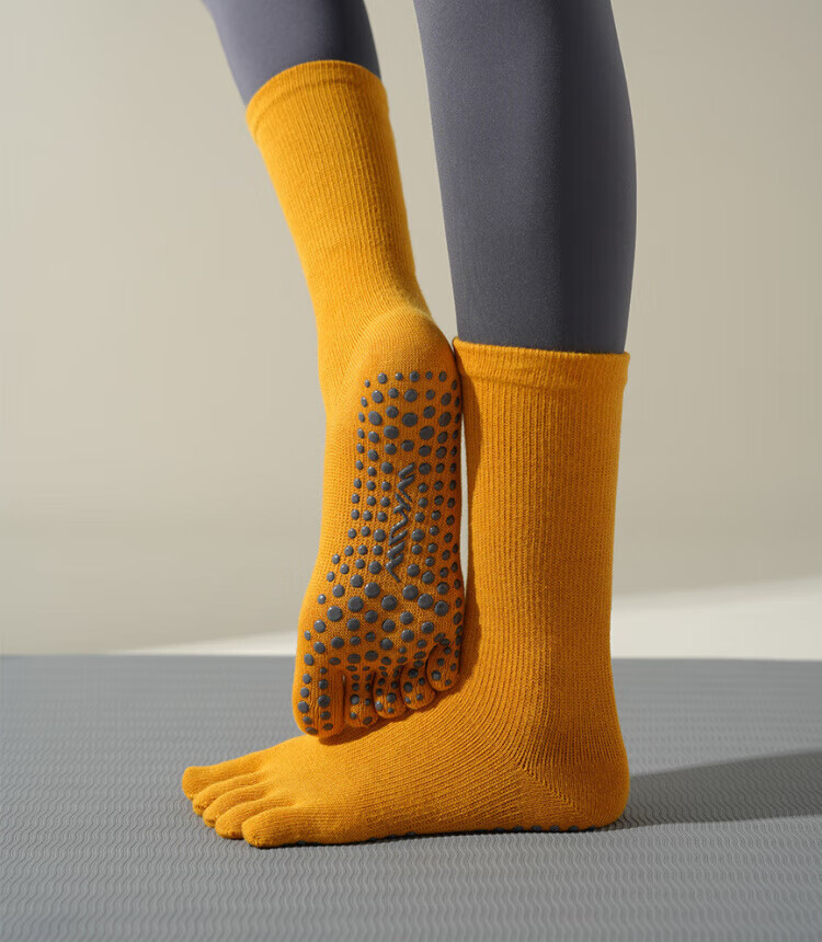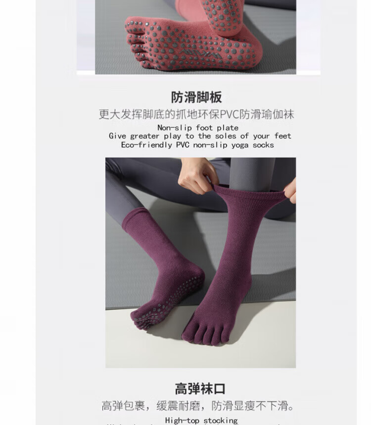 Autumn and winter size toe socks, yoga socks, non-slip socks, women's Pilates socks, sports fitness socks, pressure mid-tube, lavender purple small size 34-36.5 foot size