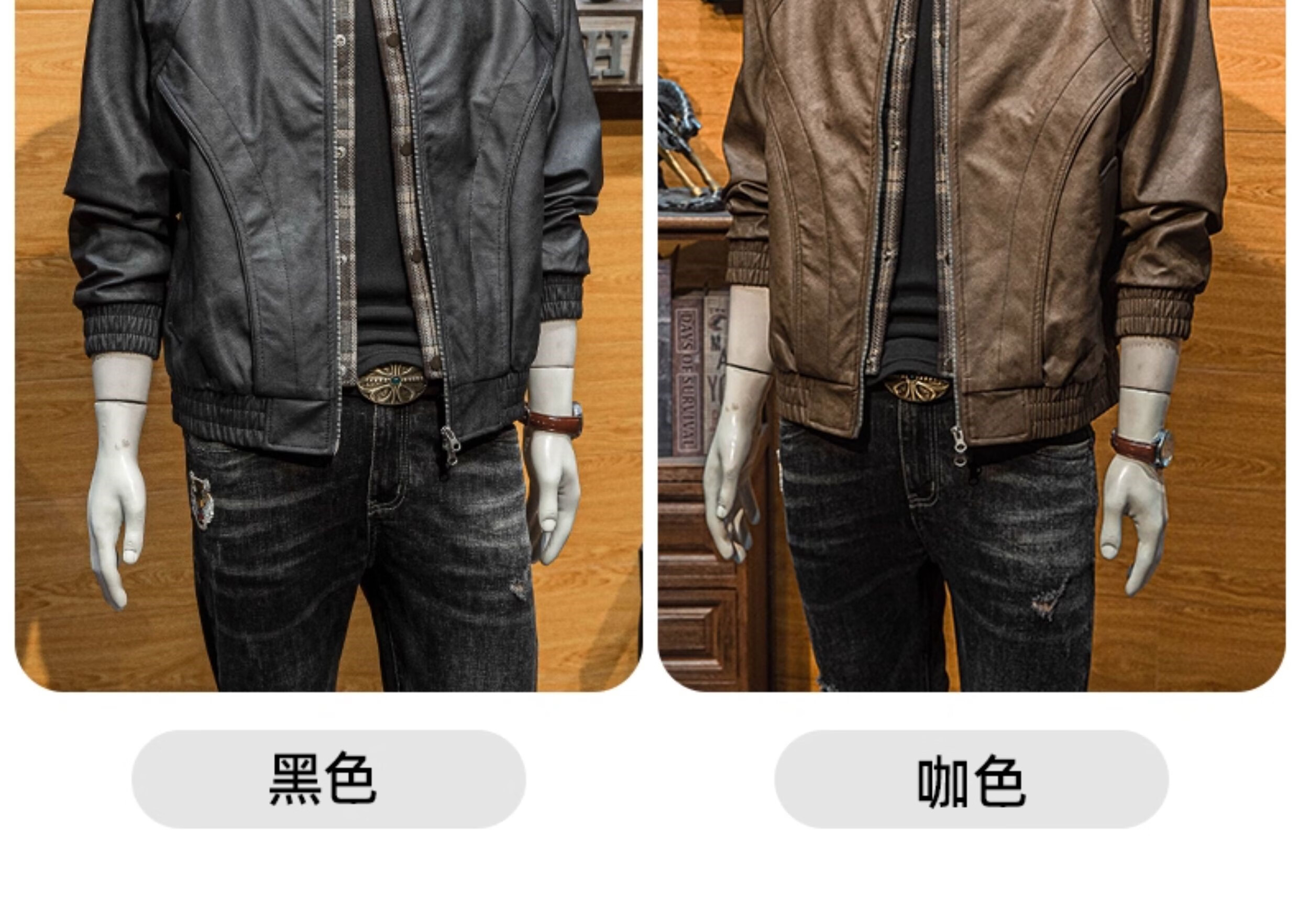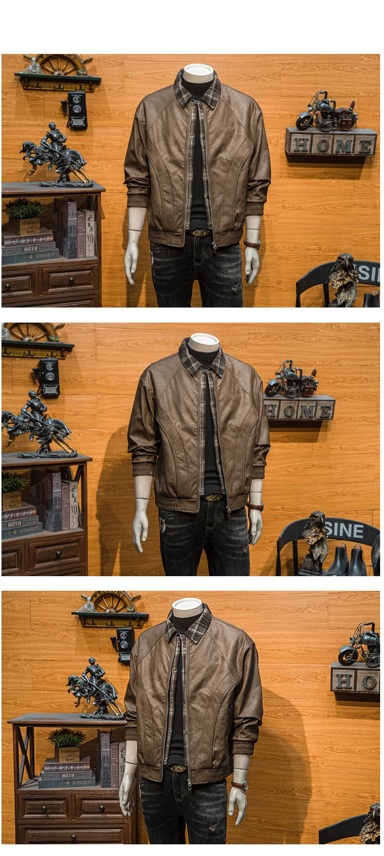 JAGR trendy brand leather men's jacket fake two-piece spring and autumn trendy casual leather jacket top men's trendy men's leather jacket black black M
