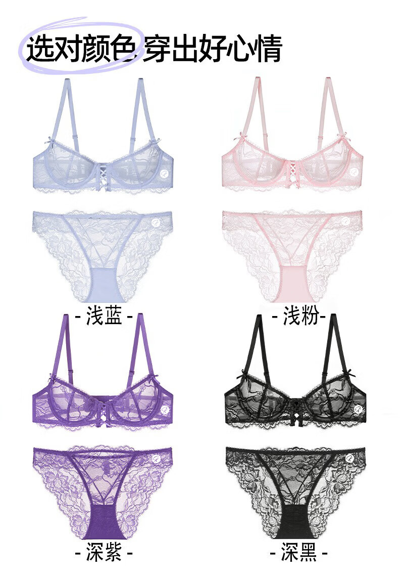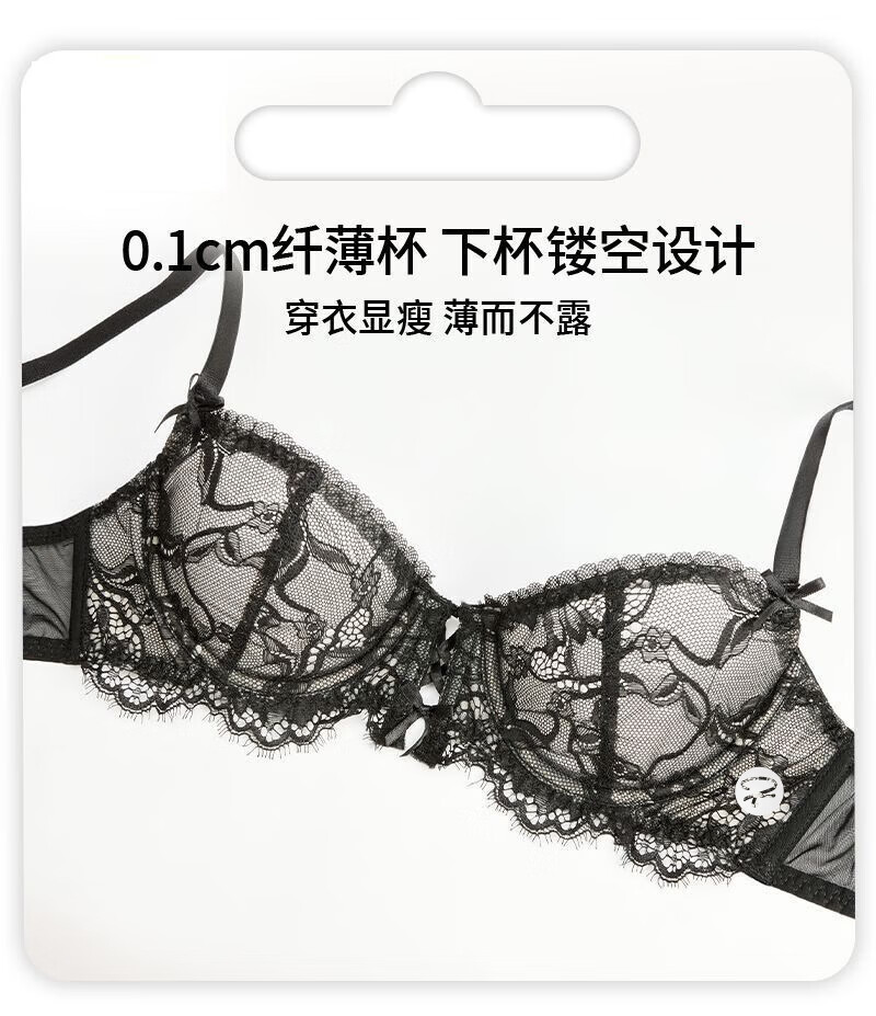 KING WINNER brand 2026 new sexy bra French ultra-thin big breasts showing small underwear lace anti-sagging bra set light blue 70B one size