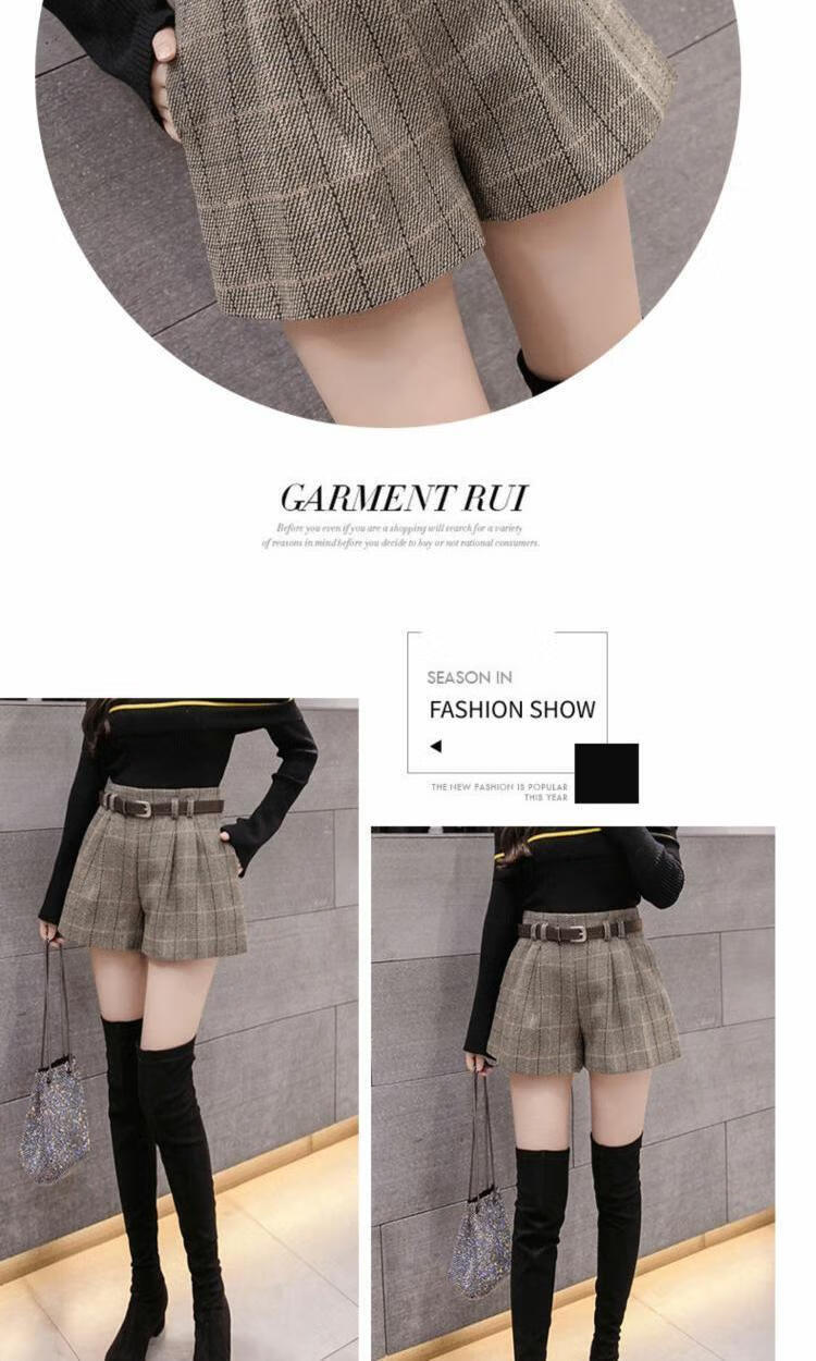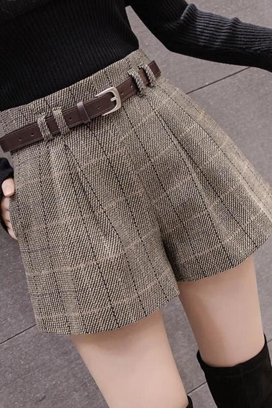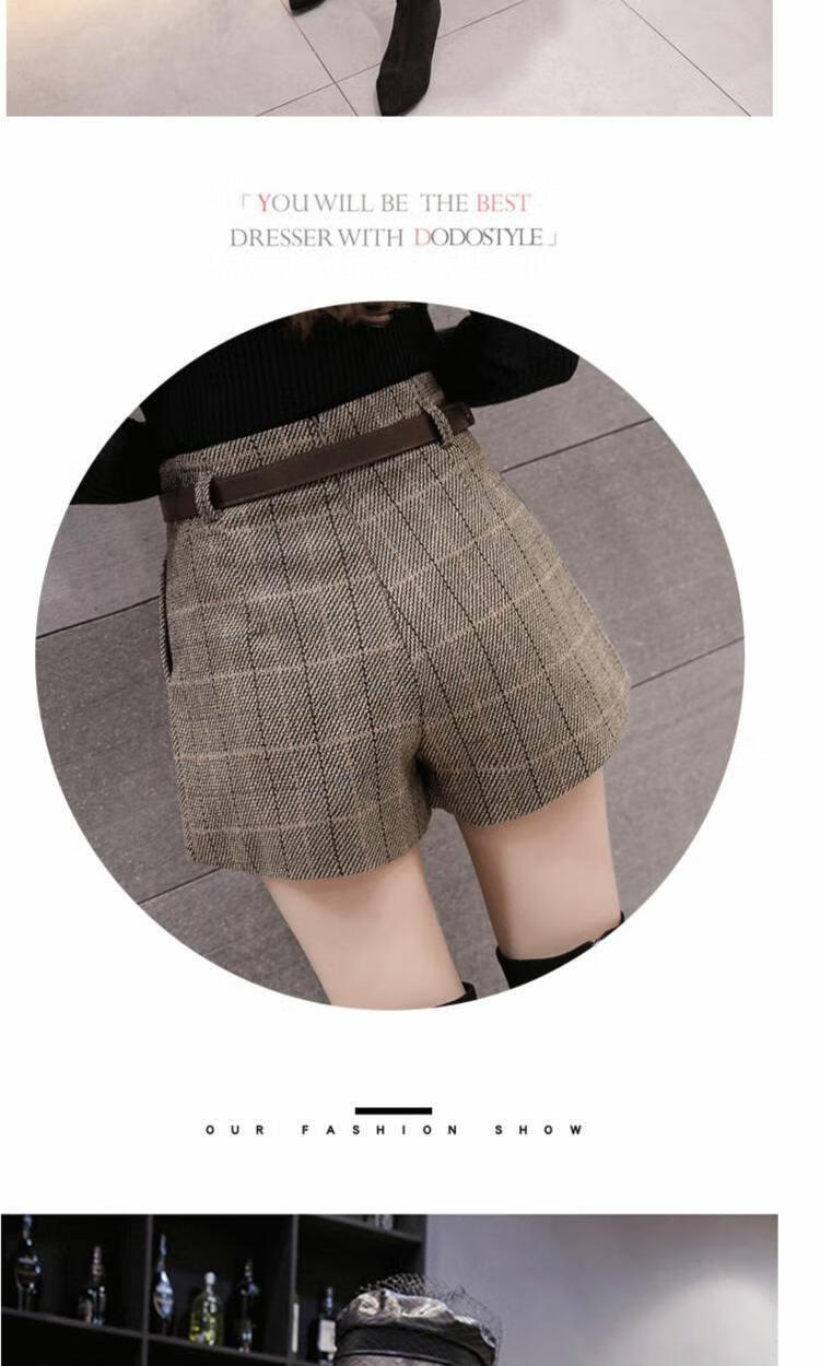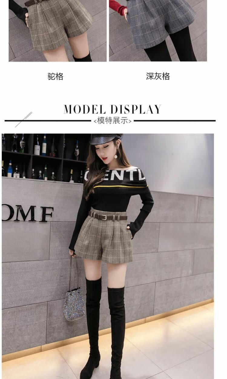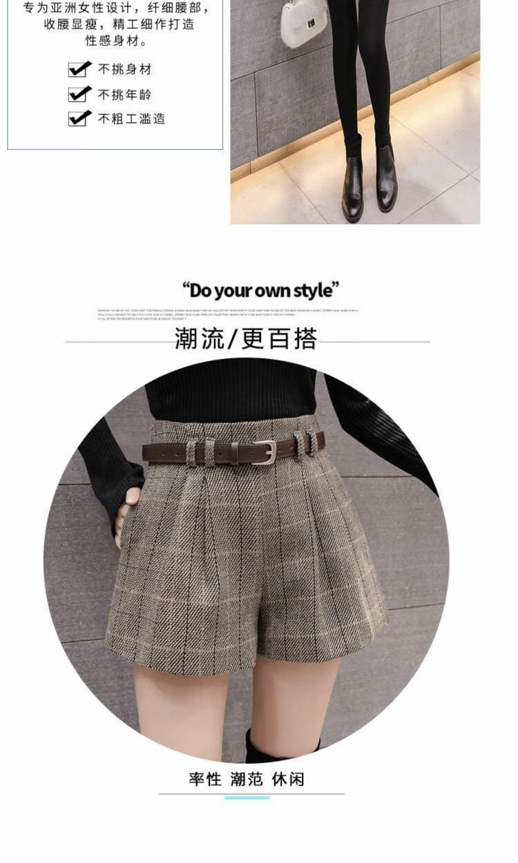 Pierre Cardin (Pierre Cardin) new autumn and winter high-waisted shorts women's woolen fashion belt versatile outer wear slim boots pants fashion plaid khaki 2XL 125Jin Jin equals 0.5 kg -135Jin Jin equals 0.5 kg