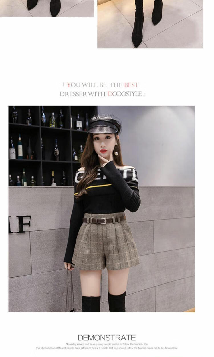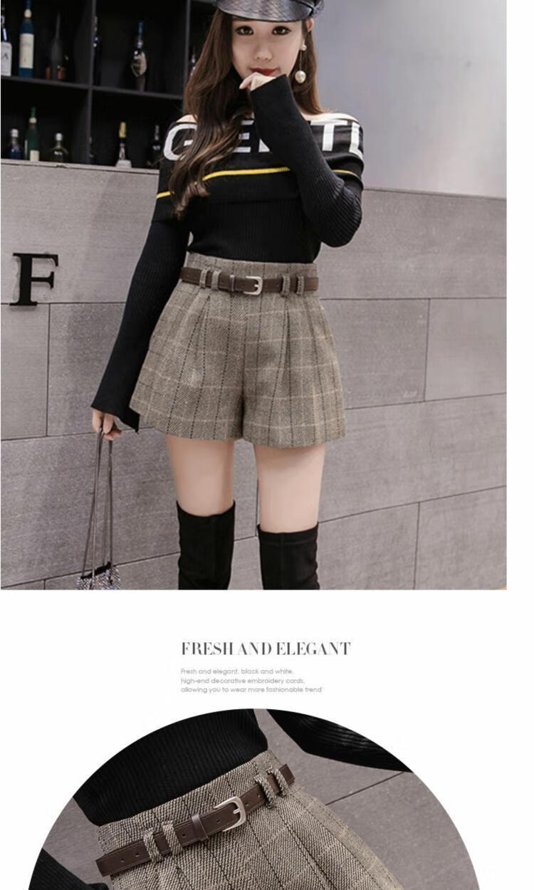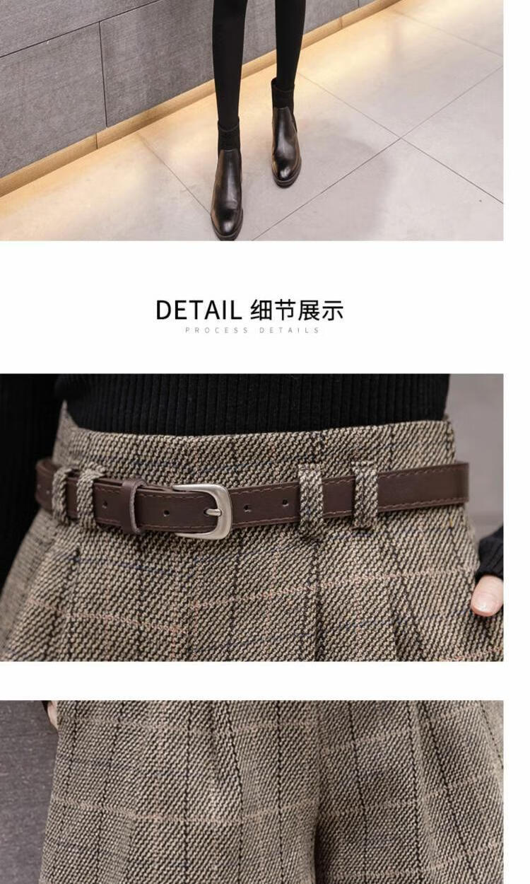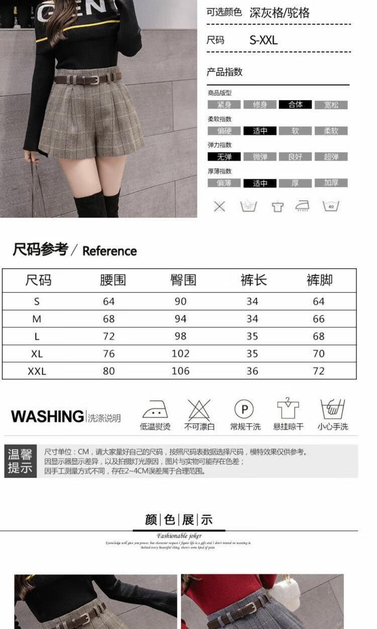 Pierre Cardin (Pierre Cardin) new autumn and winter high-waisted shorts women's woolen fashion belt versatile outer wear slim boots pants fashion plaid khaki 2XL 125Jin Jin equals 0.5 kg -135Jin Jin equals 0.5 kg