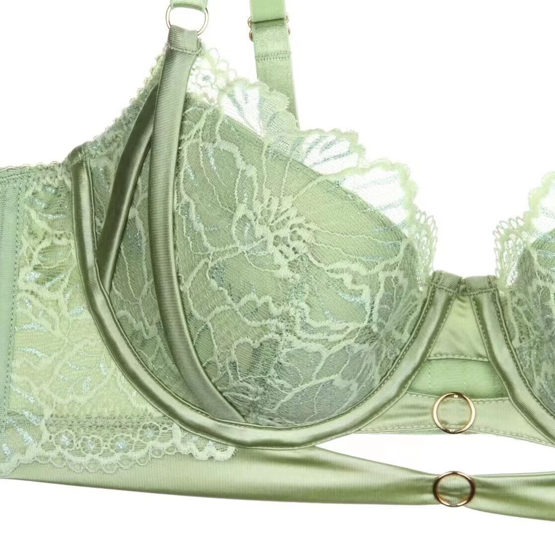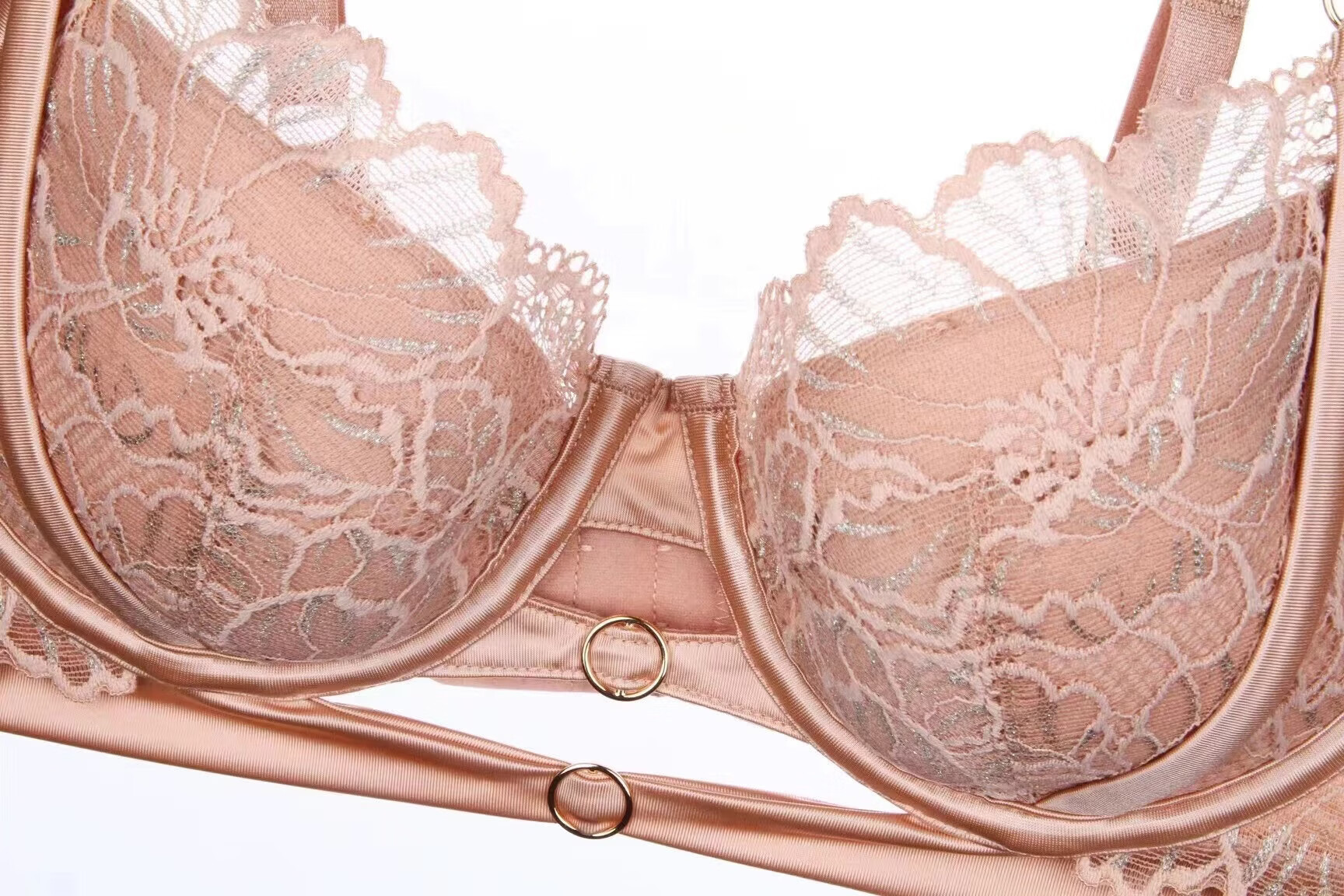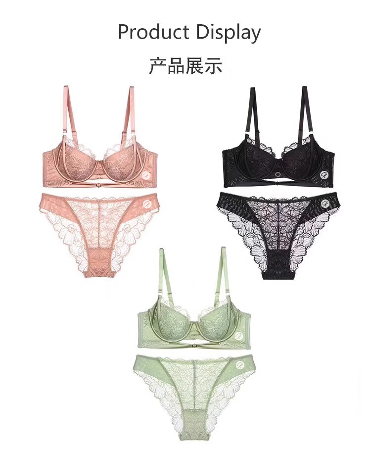 KING WINNER Pure Desire Sexy Underwear Women's Thin Large Breast Revealing Small Comfortable Breathable Lace Hollow Large Size Anti-Sagging Bra Set Pink 75B One Size