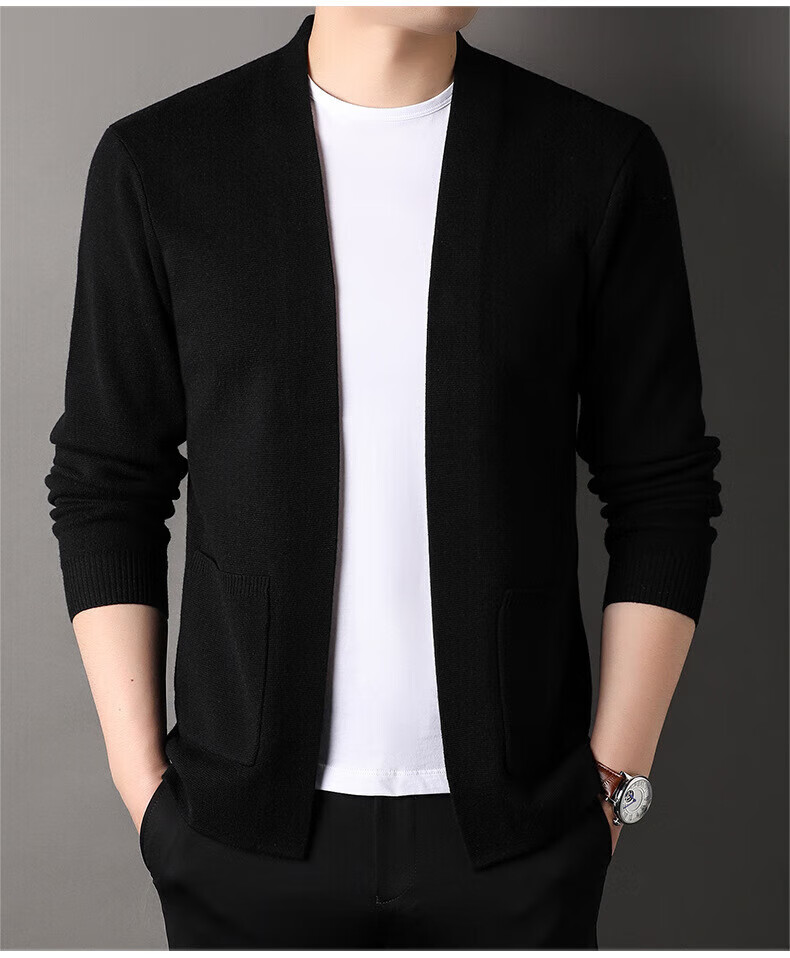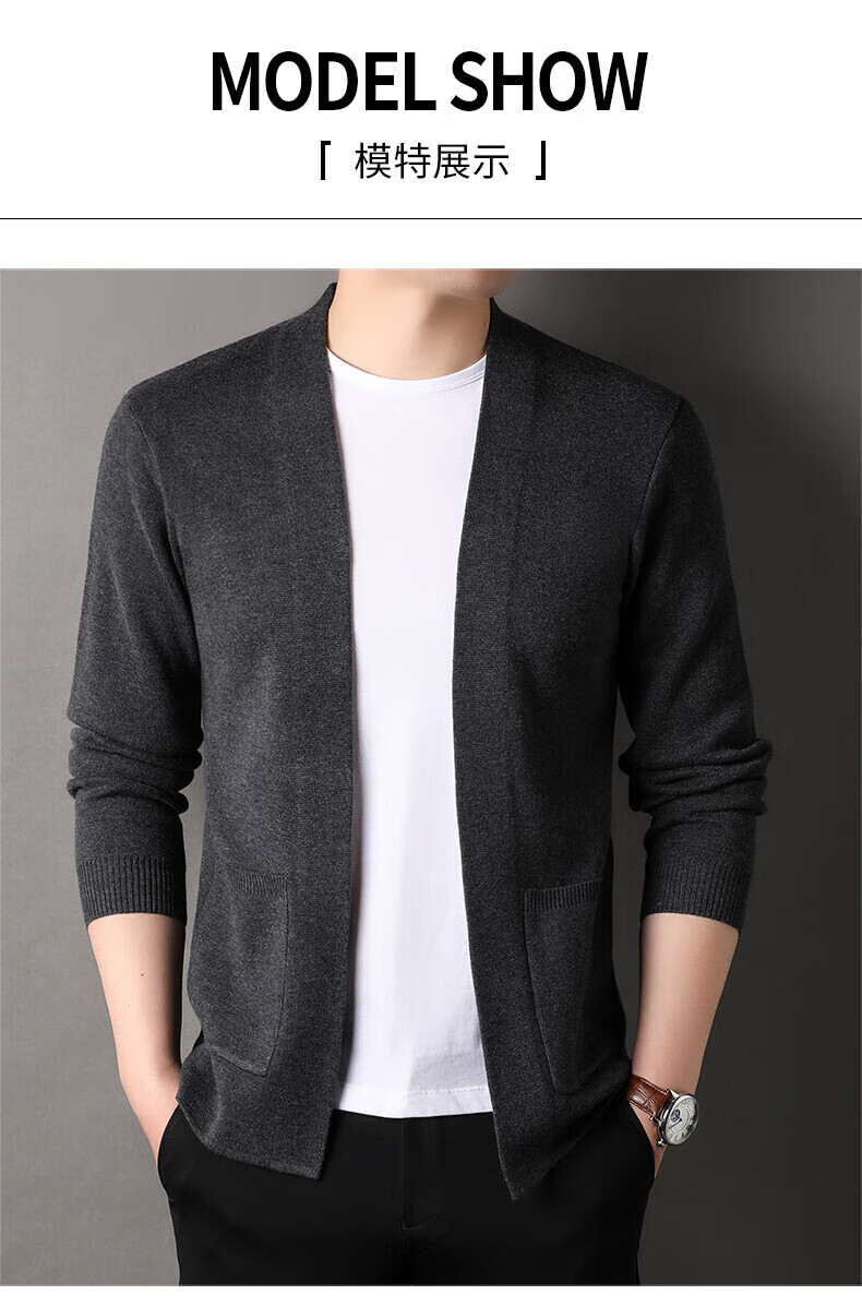 ROMON high-end wool sweater men's knitted cardigan spring and autumn new solid color fashion versatile casual black sweater jacket black XL recommended 130-150Jin Jin equals 0.5 kg