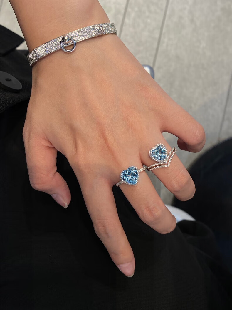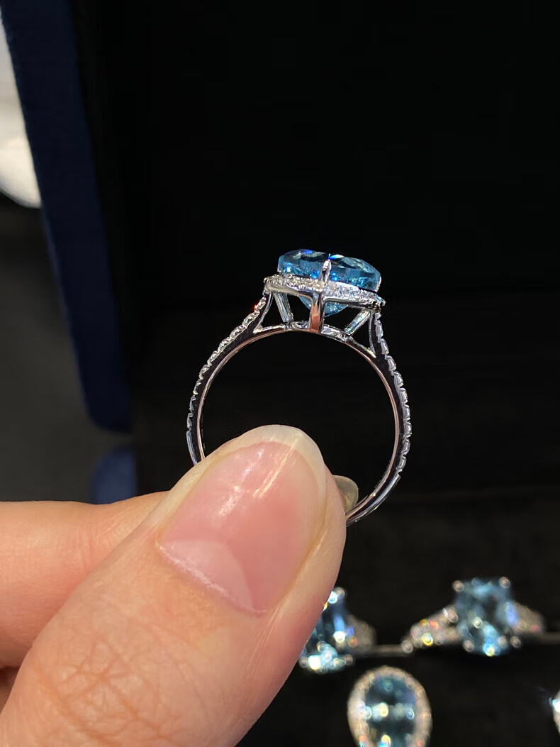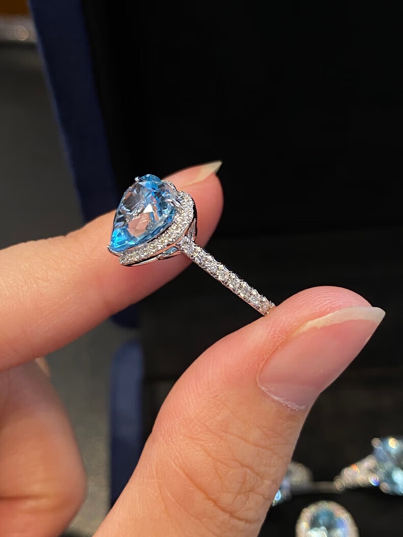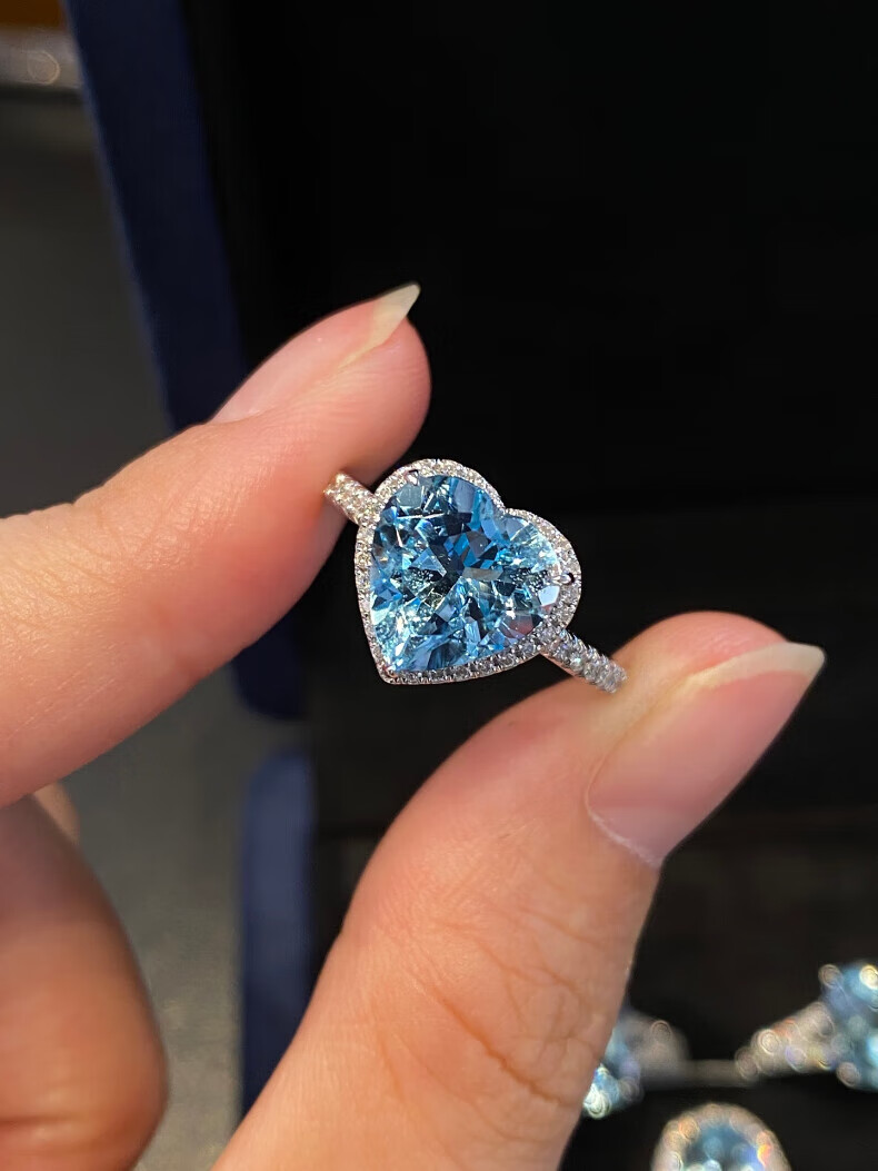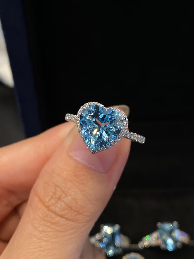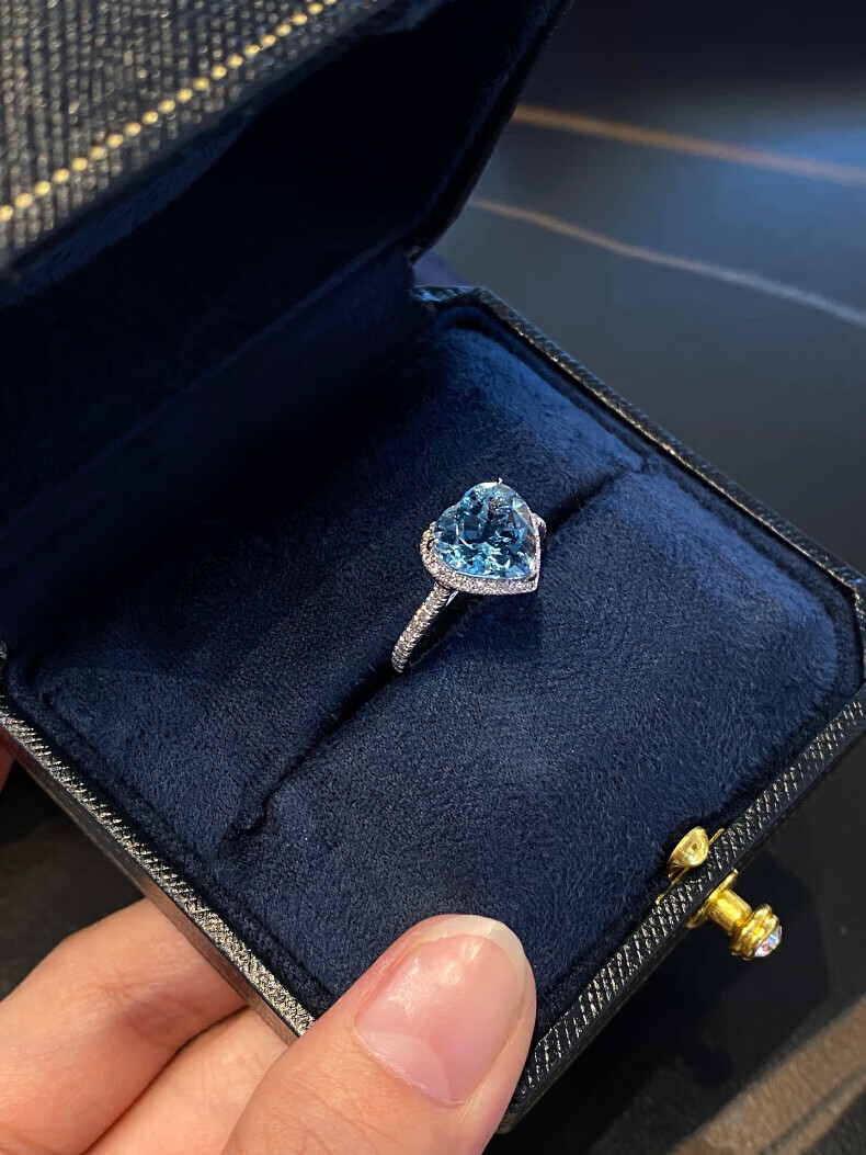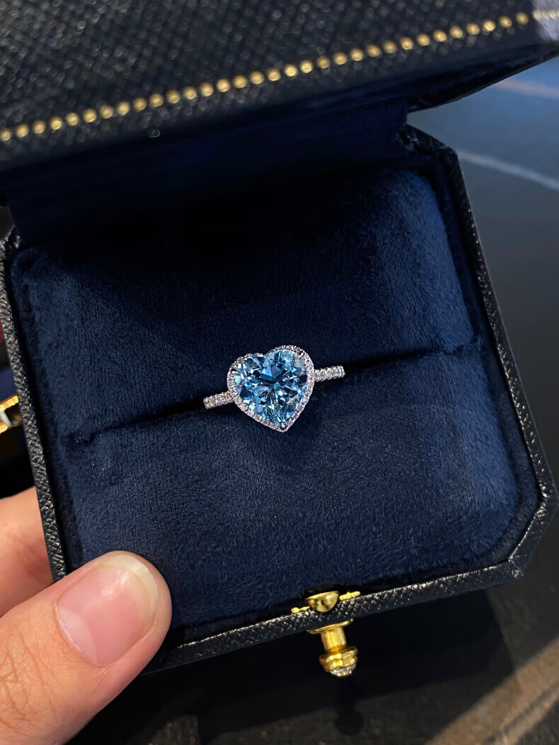 HEEKAIYI Santa Maria Aquamarine Ring Women's 18k Gold Diamond Ring Chinese Valentine's Day Birthday Gift for Wife Customized 3.1 carat/Santa Maria Ring Number Contact Customer Service