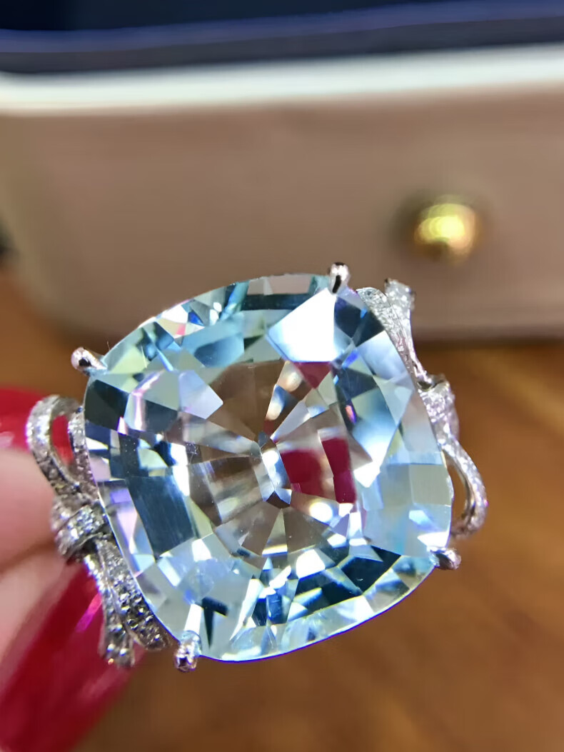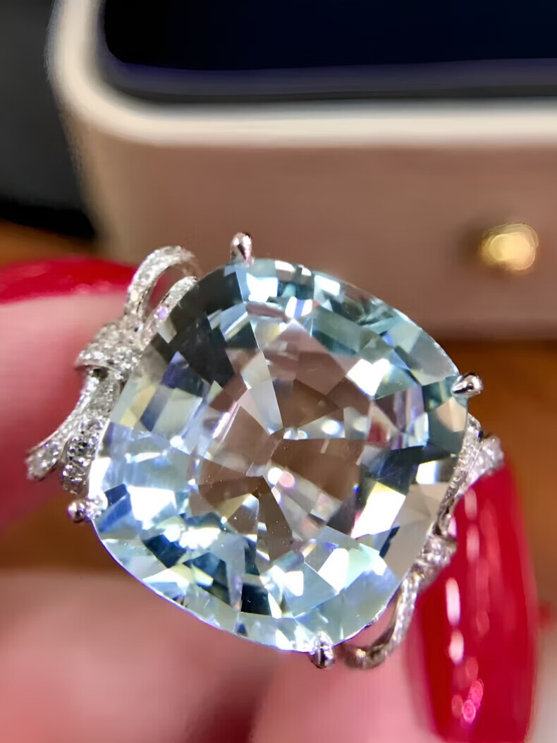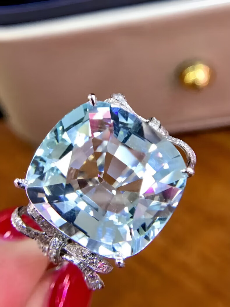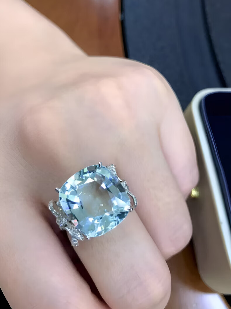HEEKAIYI Santa Maria aquamarine ring for women 18k gold diamond ring Chinese Valentine's Day birthday gift for wife Selected 10 carats/Santa Maria