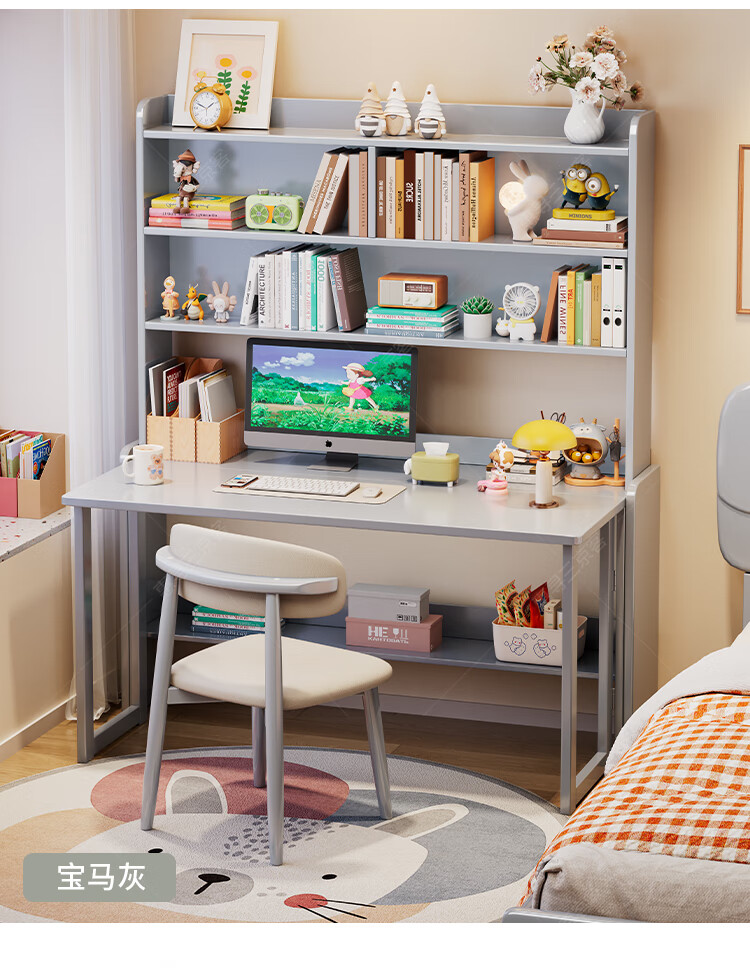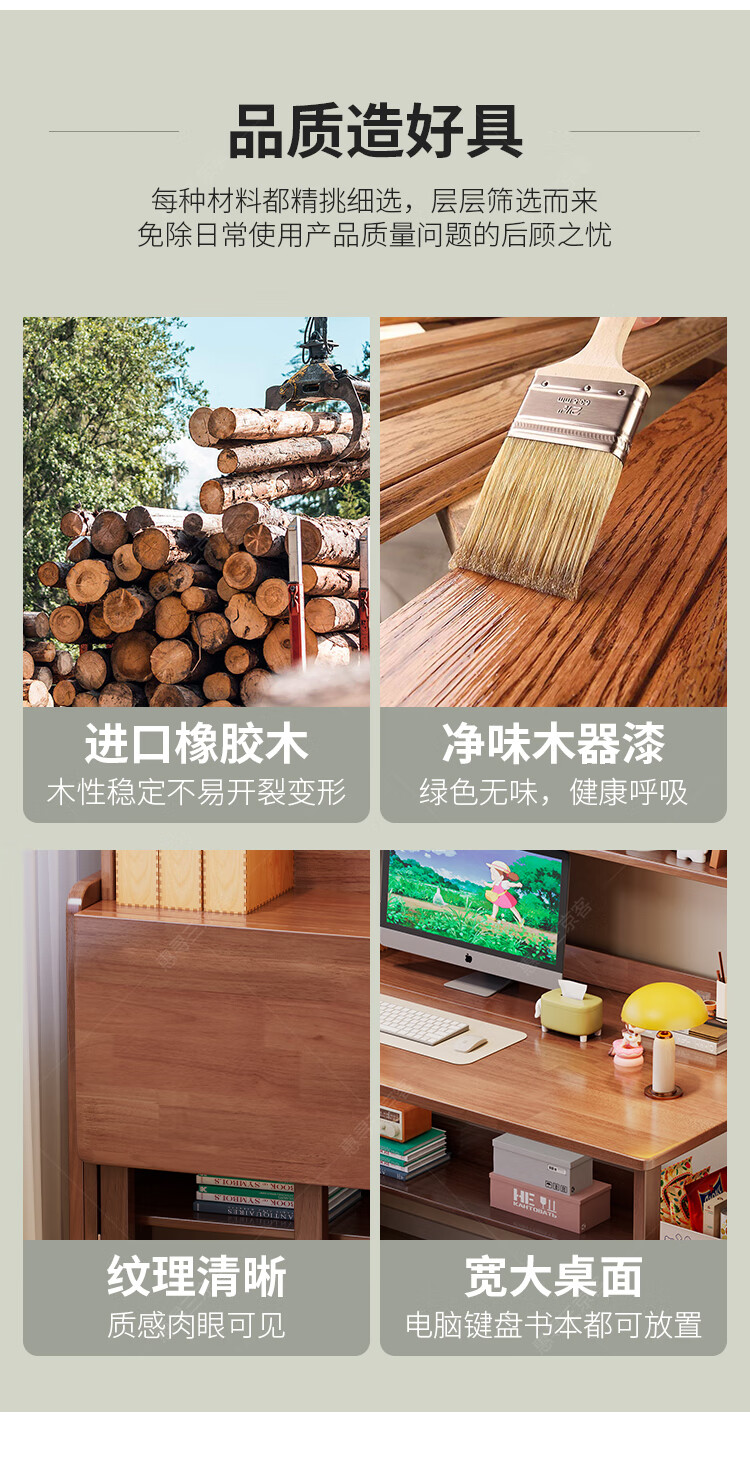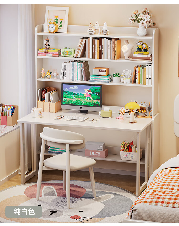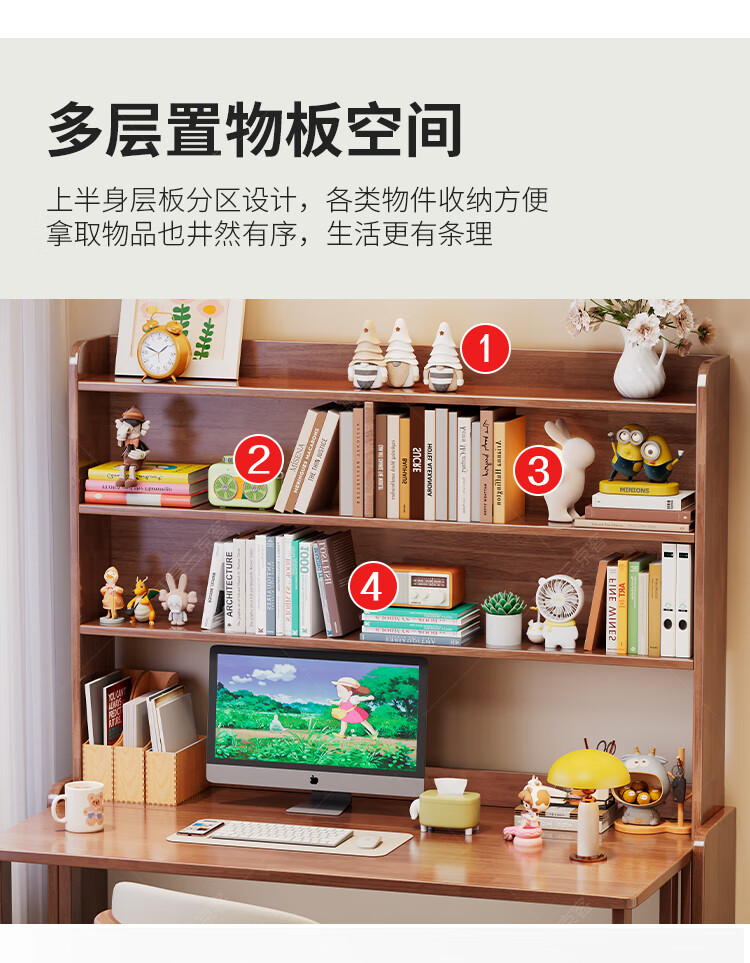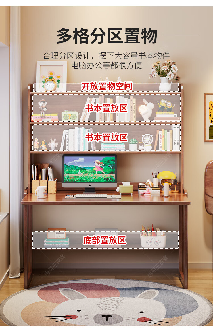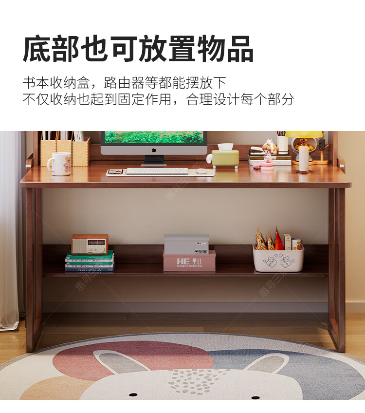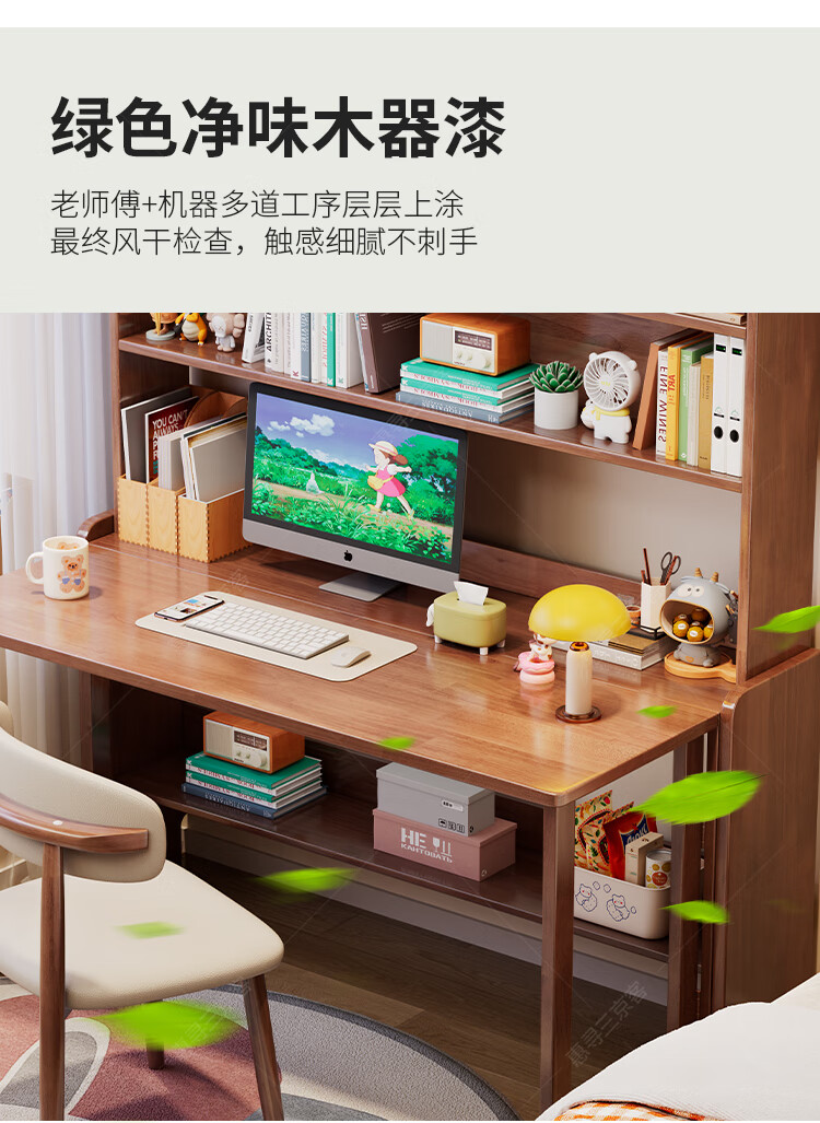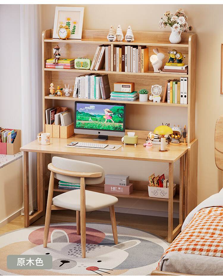 Huixun folding desk solid wood student home computer desk bedroom bedside study table with bookshelf small retractable desk walnut color #desk + bookshelf 80cm*60cm*75cm total height 190cm