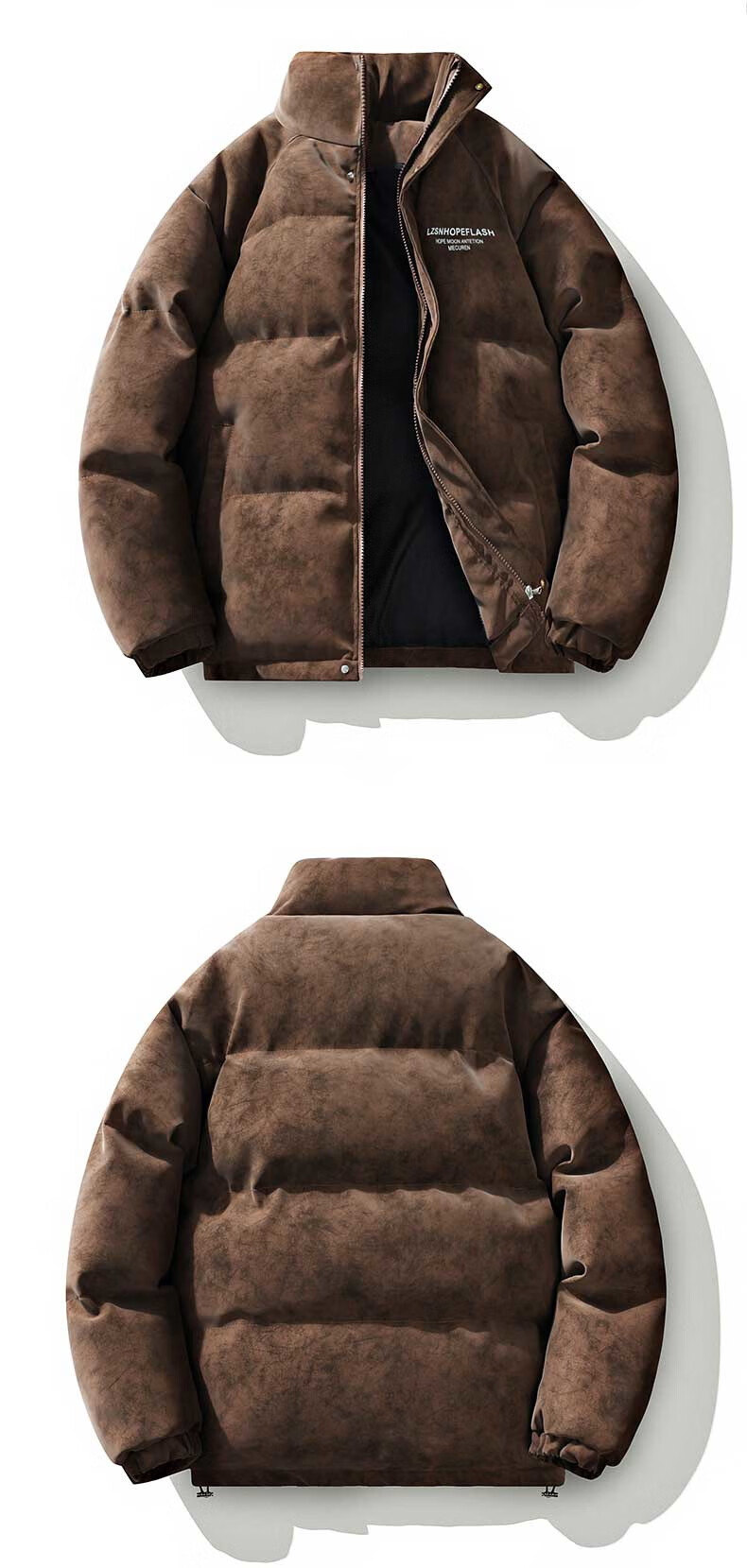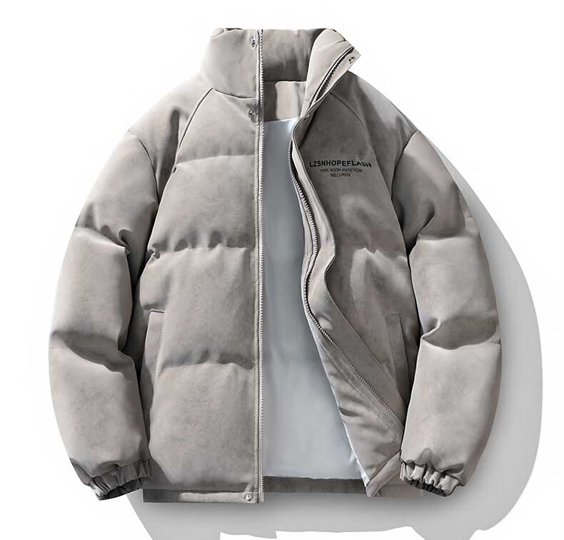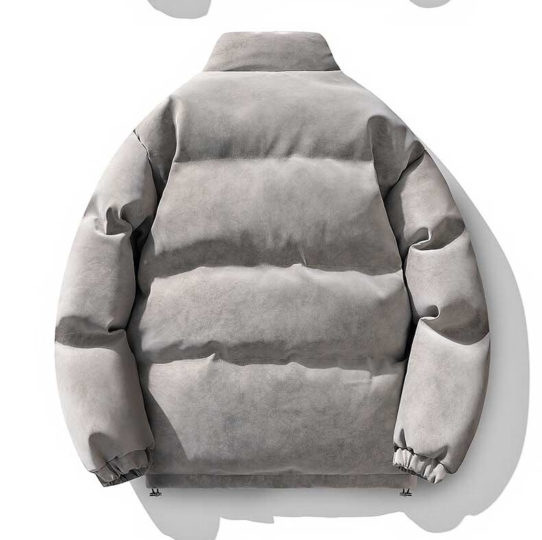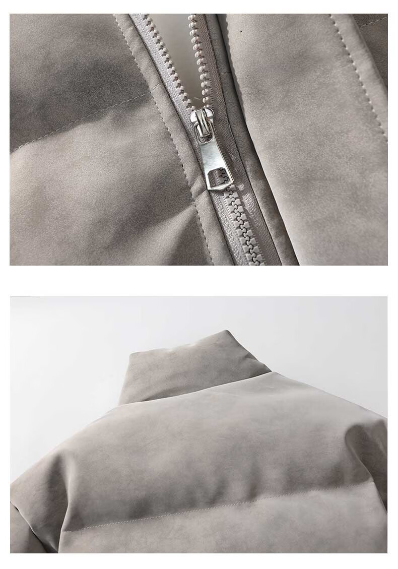 NASALIKE Official American Matte PU Leather Stand Collar Cotton Jacket Men's Winter High-Quality Handsome Cotton Clothes Loose Warm Casual Jacket Gray XL (Recommended 130-150Jin Jin equals 0.5kg)