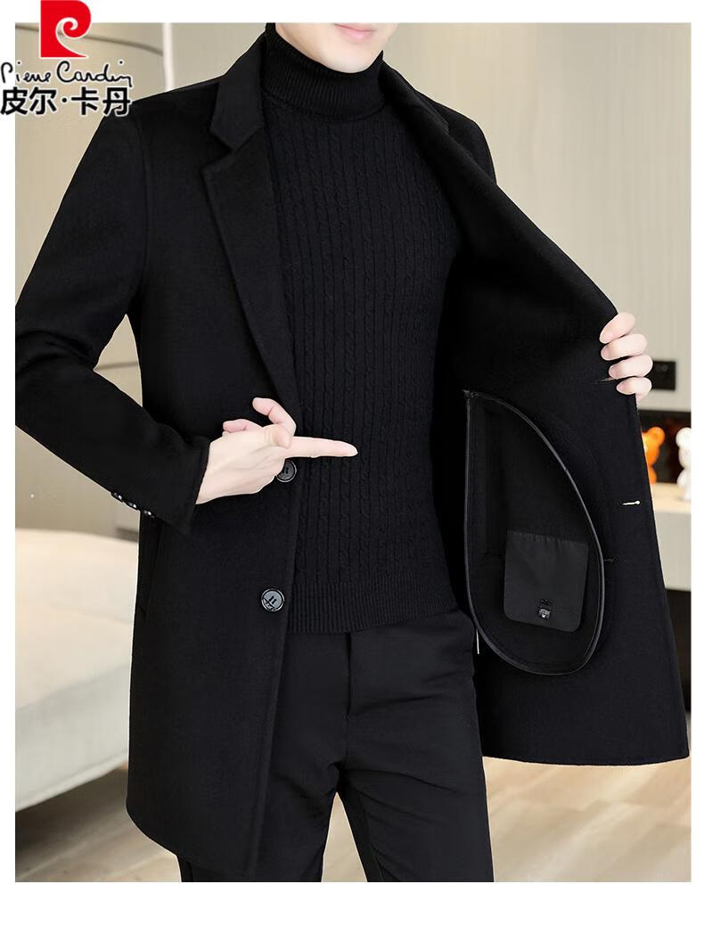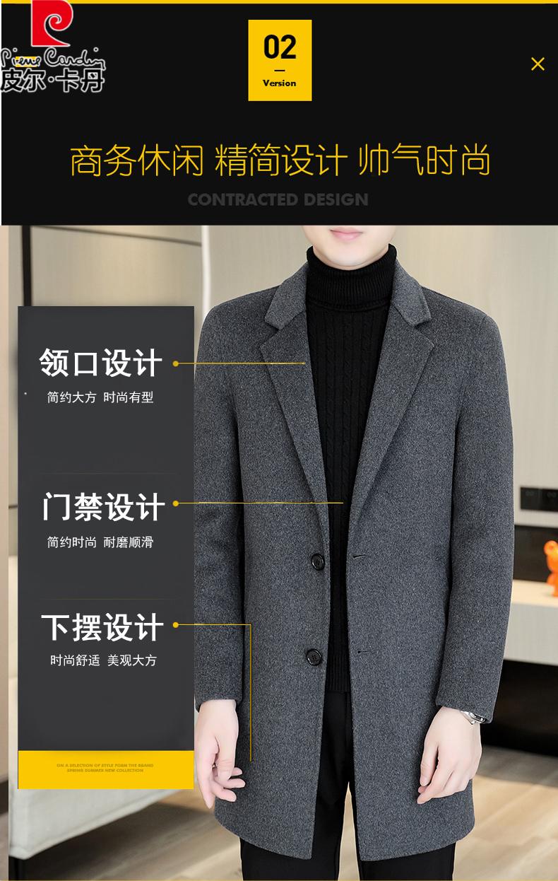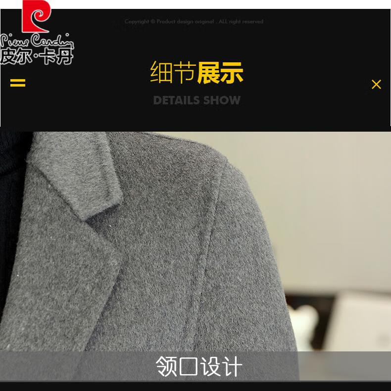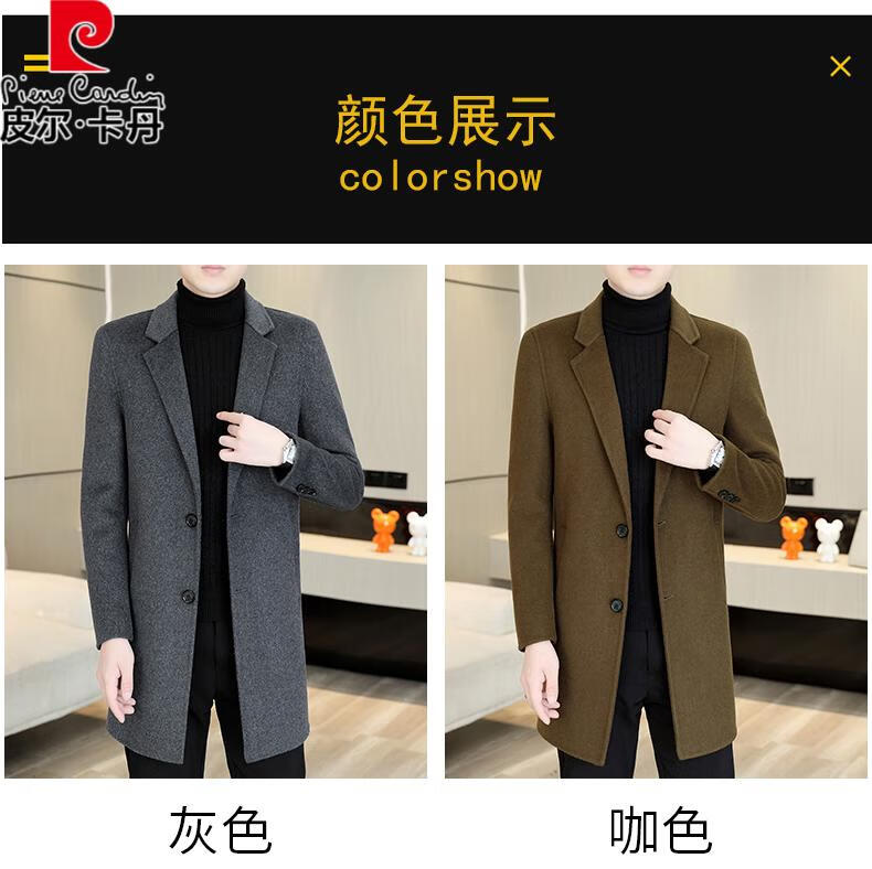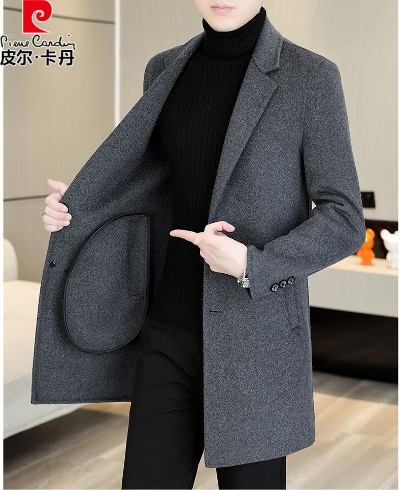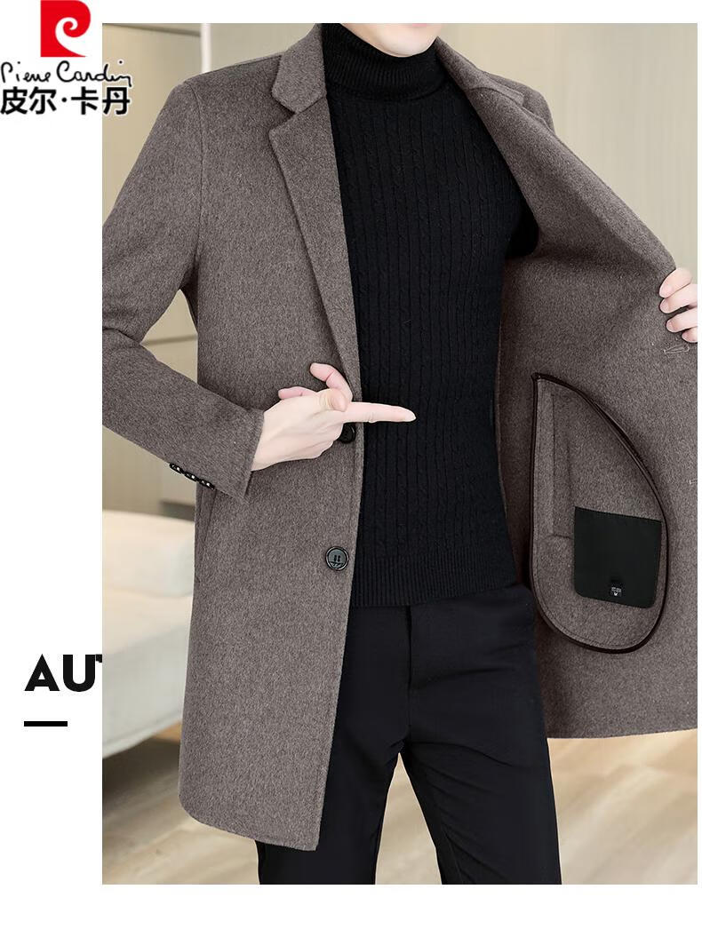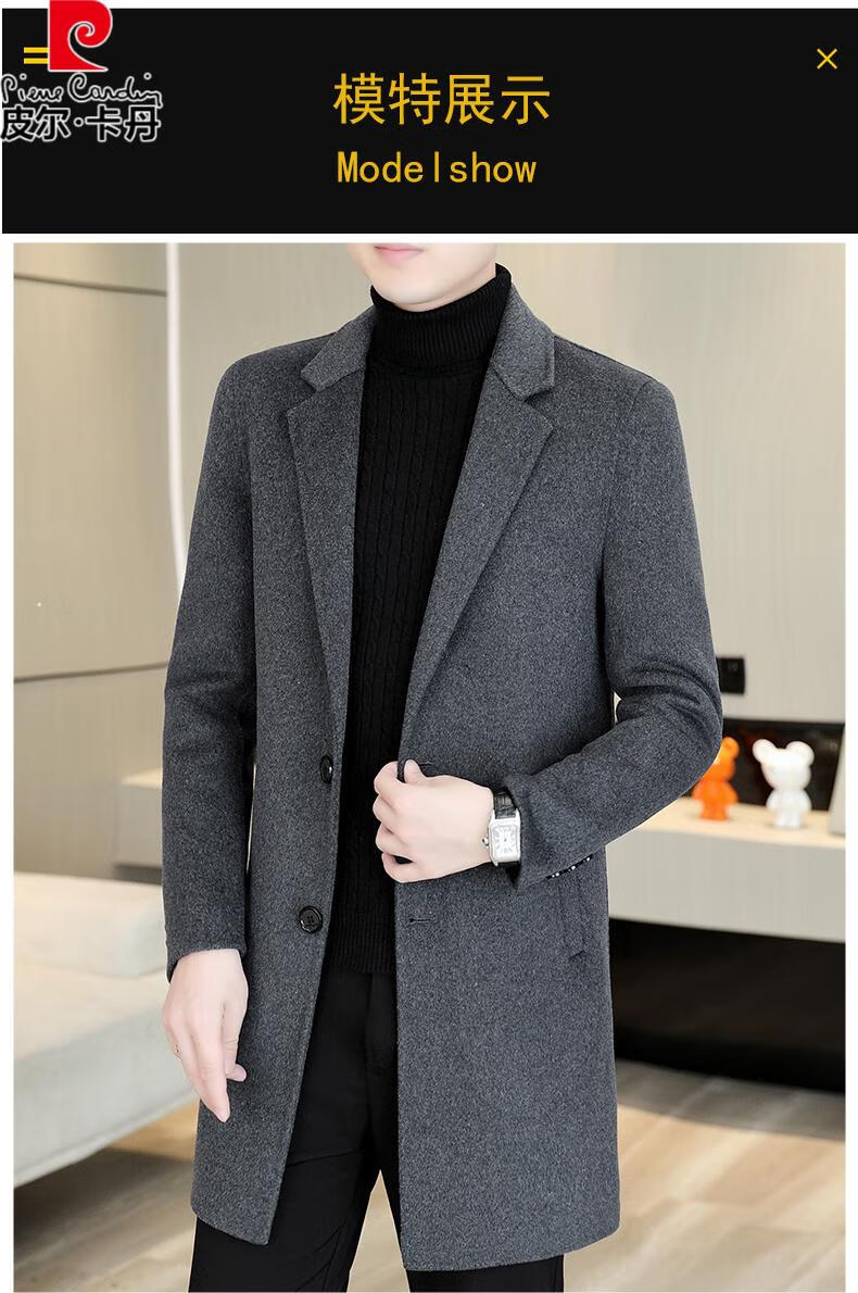 Pierre Cardin high-end double-sided woolen coat men's medium-length down gallbladder wool suit jacket casual sheep | plush woolen style 15X05 dark gray double-sided woolen coat XL suitable for 130-150Jin Jin equals 0.5 kg