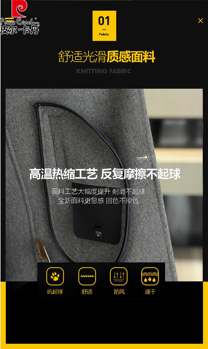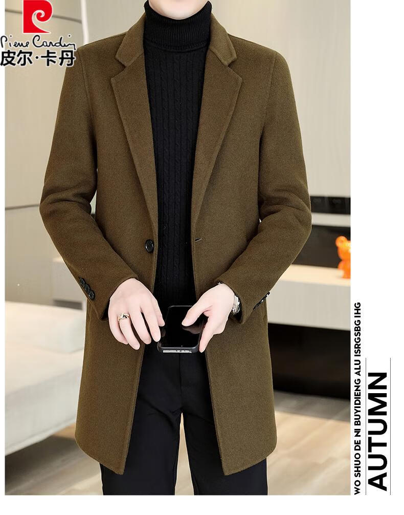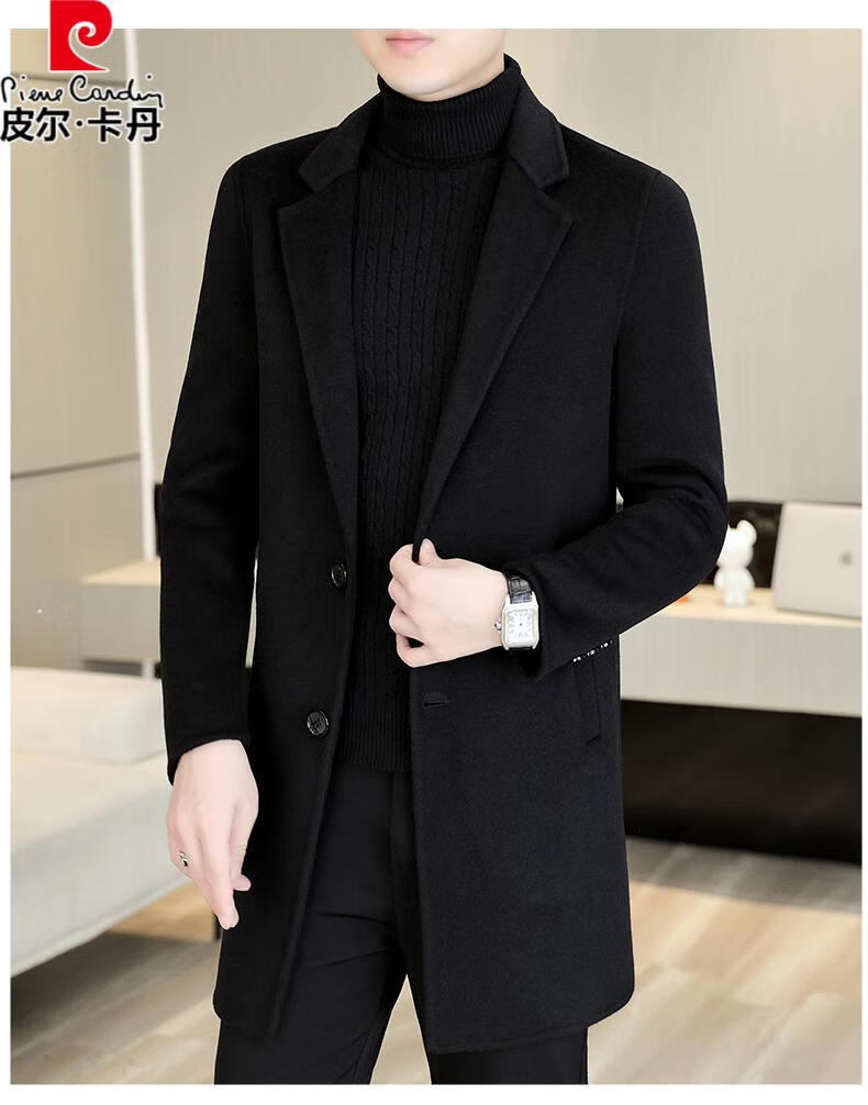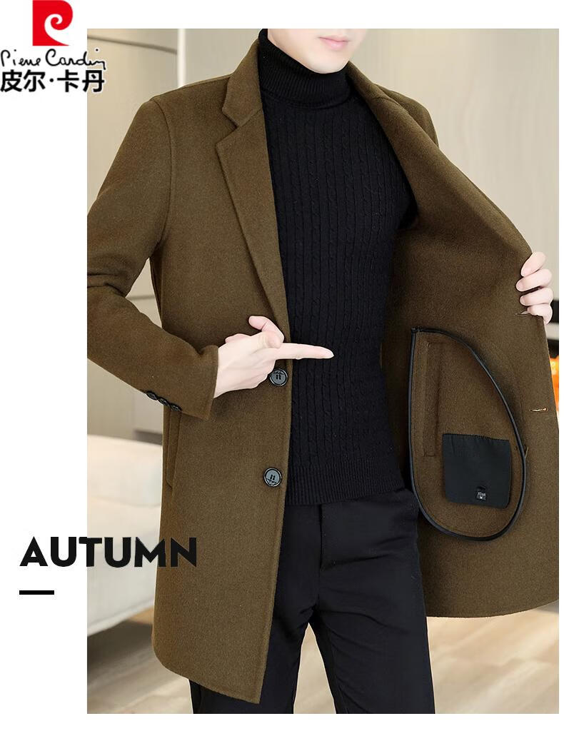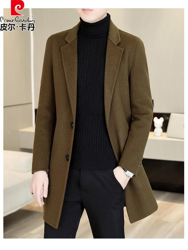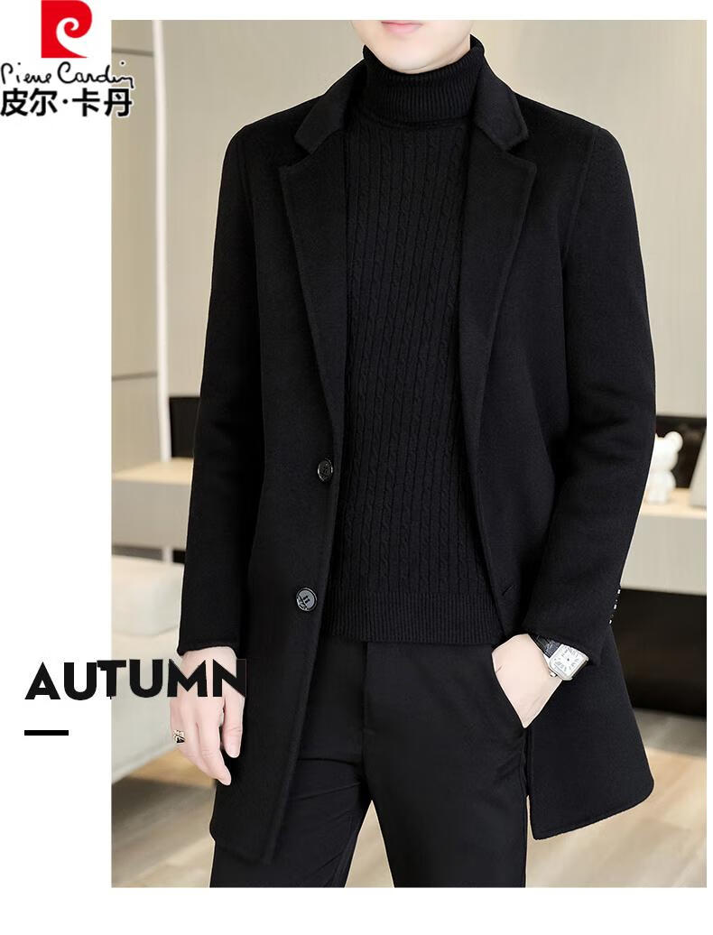 Pierre Cardin high-end double-sided woolen coat men's medium-length down gallbladder wool suit jacket casual sheep | plush woolen style 15X05 dark gray double-sided woolen coat XL suitable for 130-150Jin Jin equals 0.5 kg