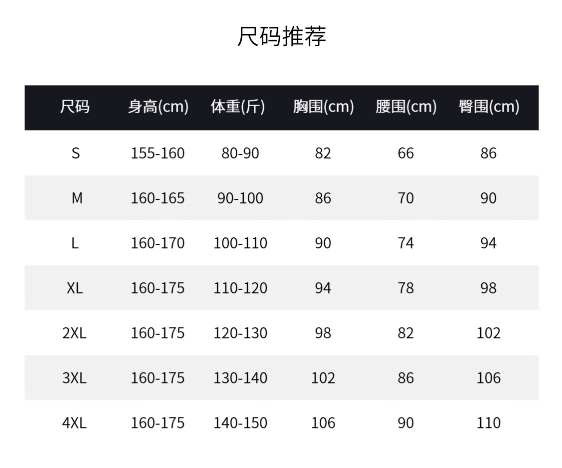 China (cm) 160-165/84-86 165-170 / 88-90 167-172 / 92-96 168-173 / 98-102 170-176 / 106-110