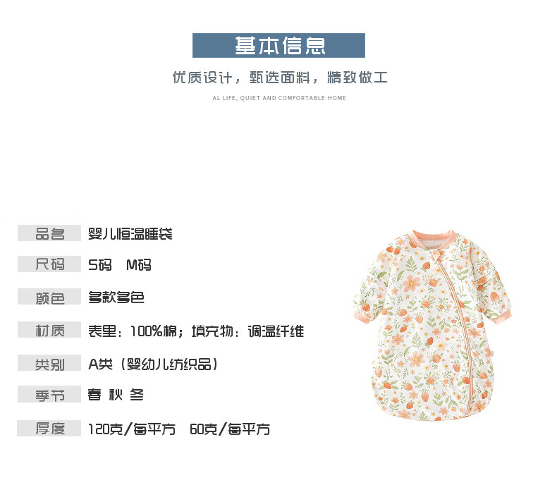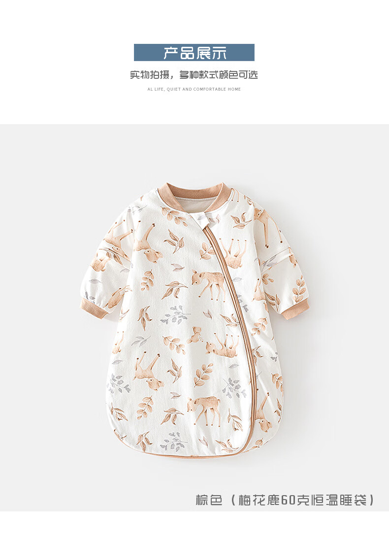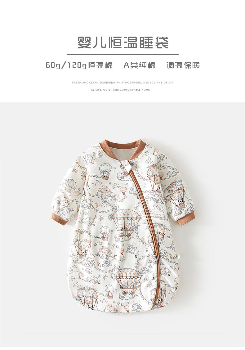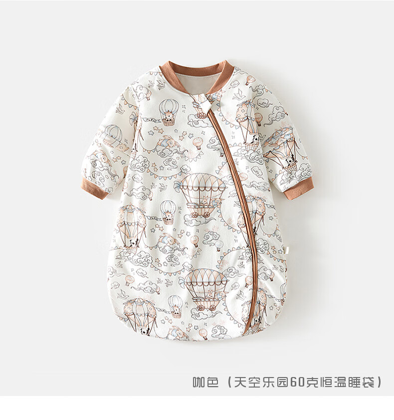 Baby constant temperature sleeping bag U-shaped 60g/120g quilted baby pajamas newborn zipper type multi-functional anti-kicking quilt coffee color (Sky Paradise 120g constant temperature sleeping bag) S (0-1 years old)