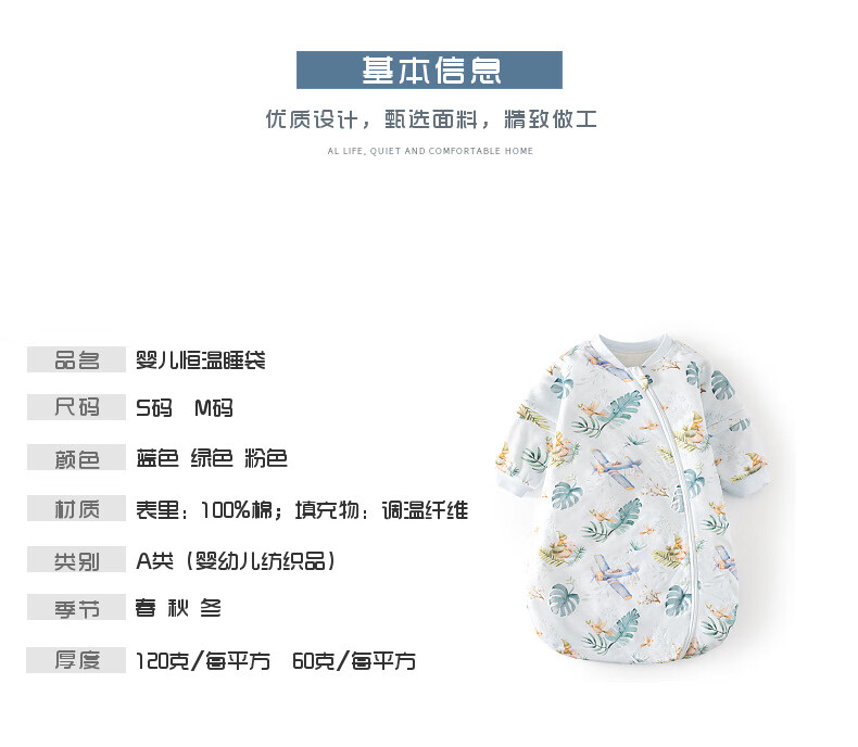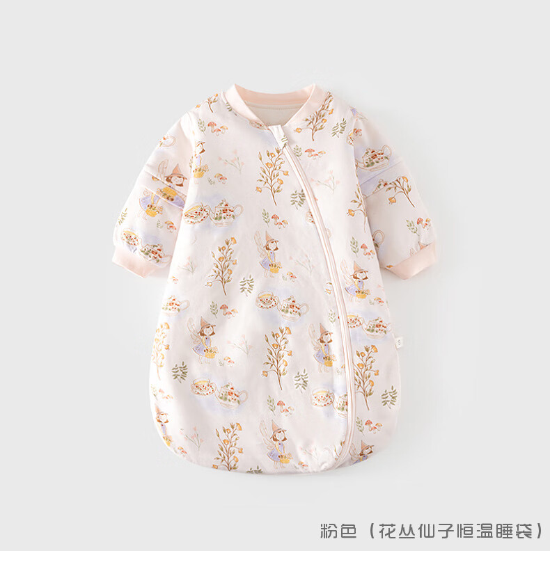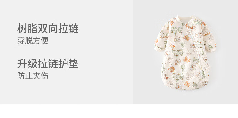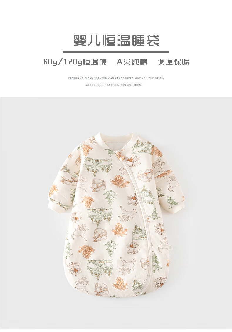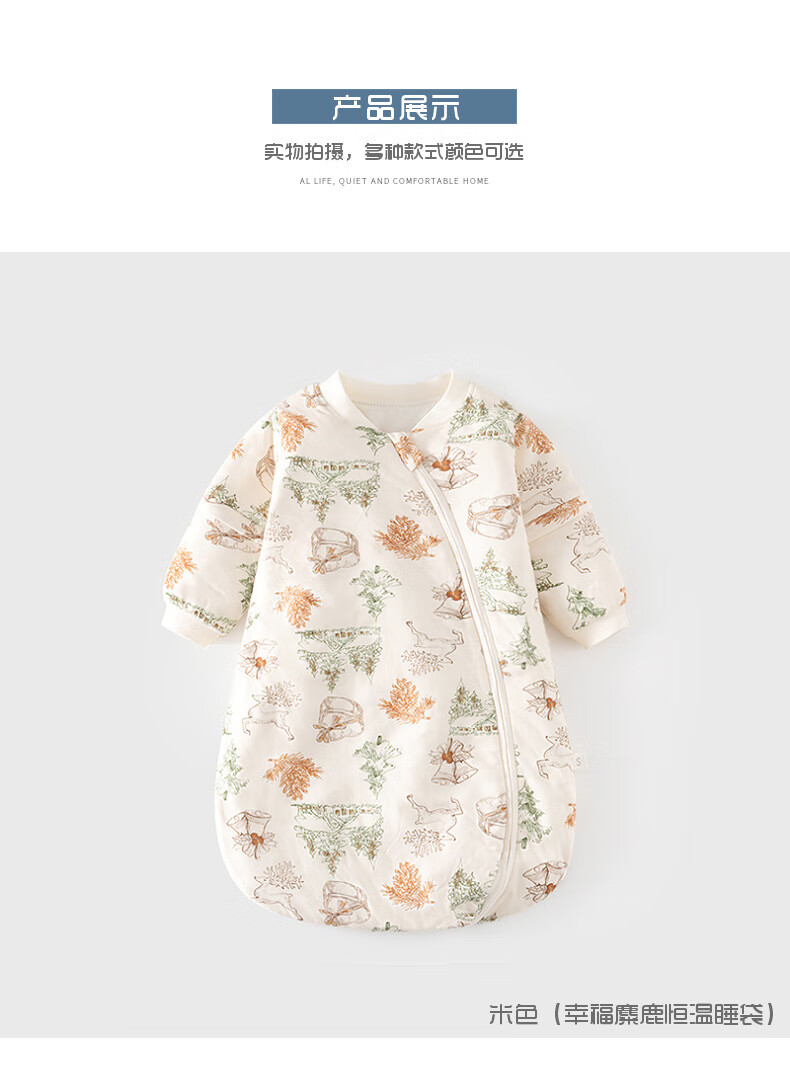Baby constant temperature sleeping bag spring and autumn quilted baby U-shaped thickened pajamas newborn zipper type multi-functional anti-kick quilt beige (Happy Elk 60g constant temperature sleeping bag) S (0-1 years old)
